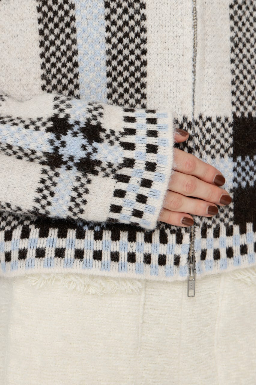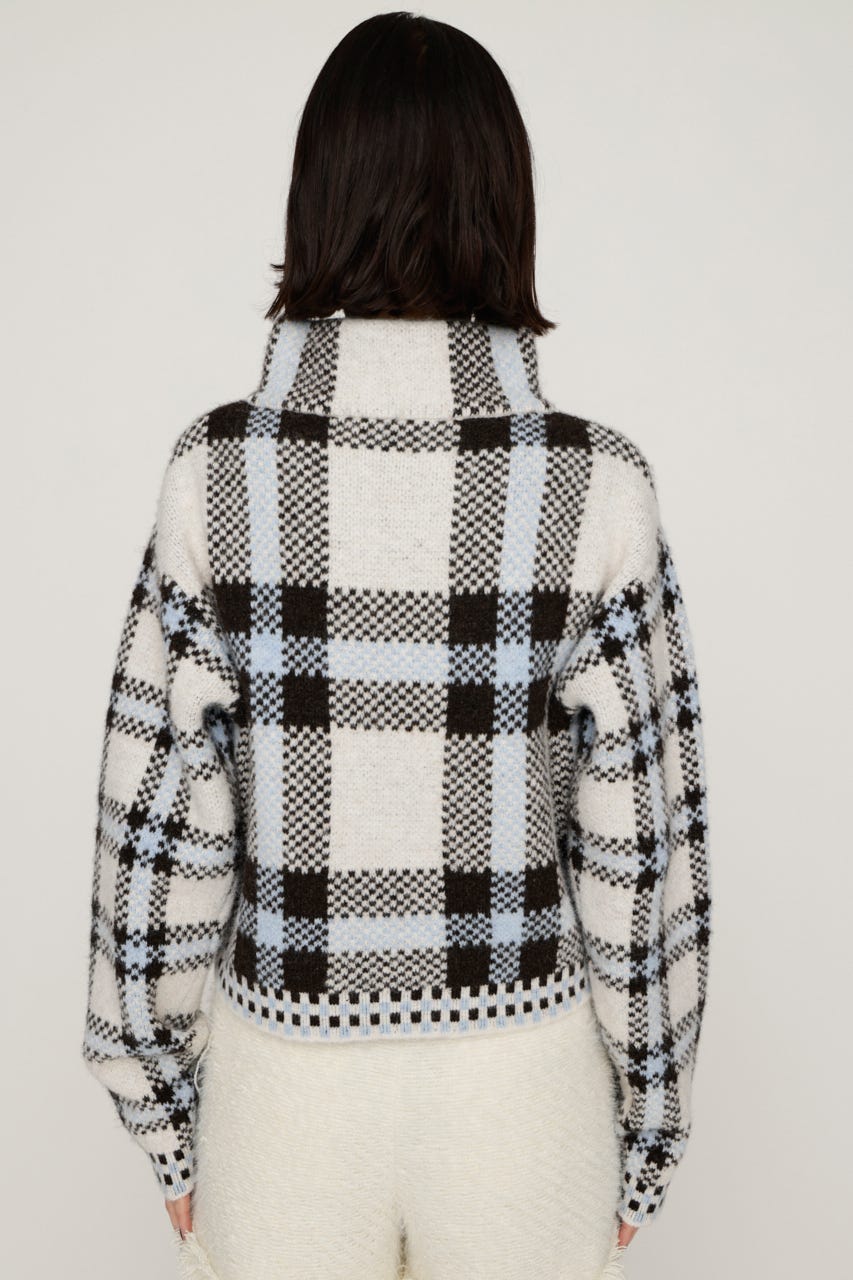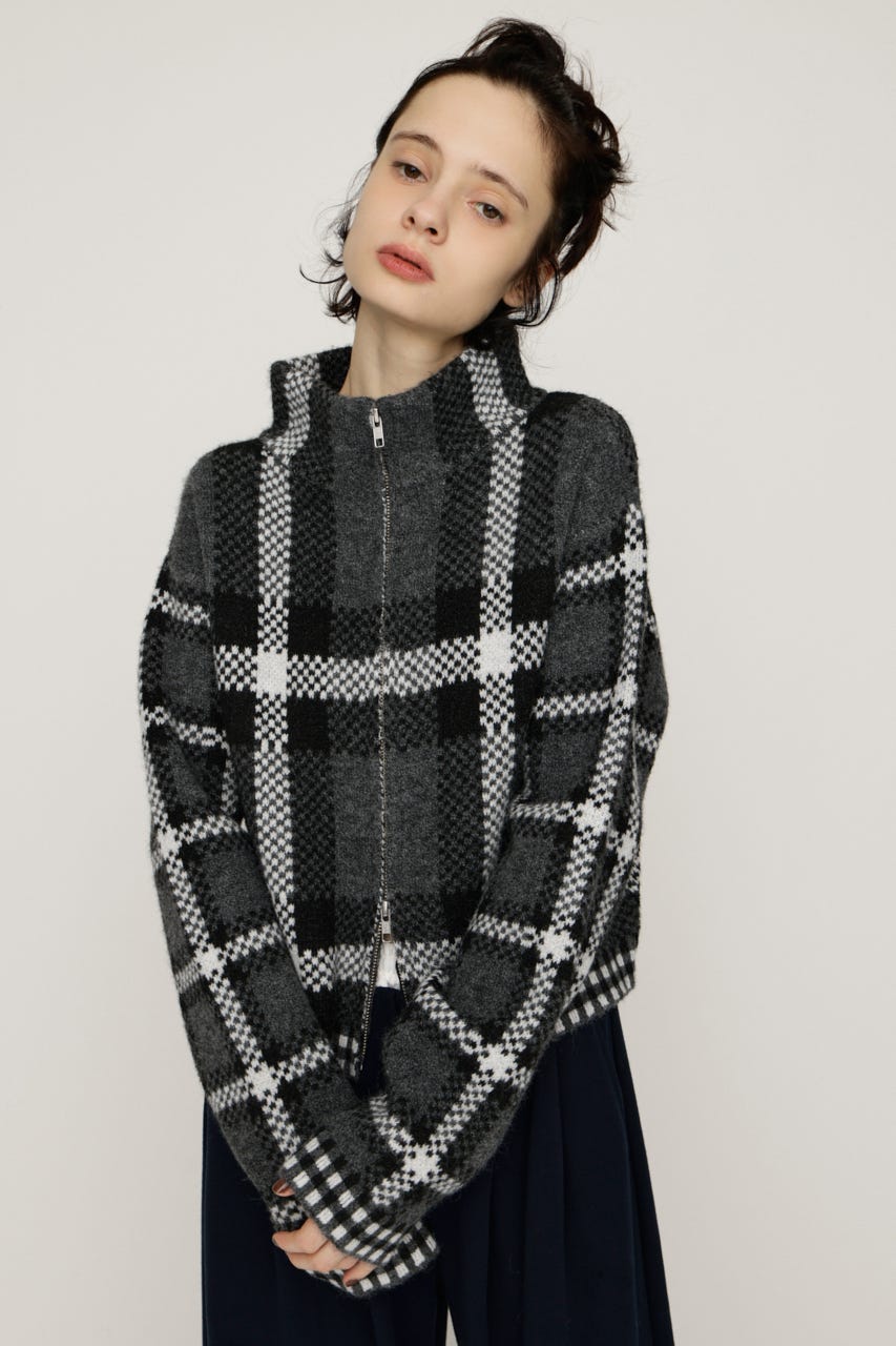 SLYオリジナルで作成したチェック柄が目を惹く、シーズンムードたっぷりのジャガードニットトップス。