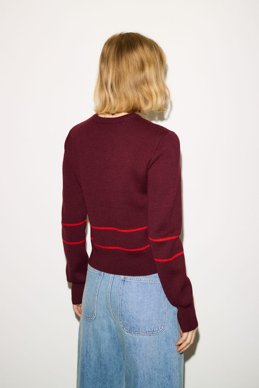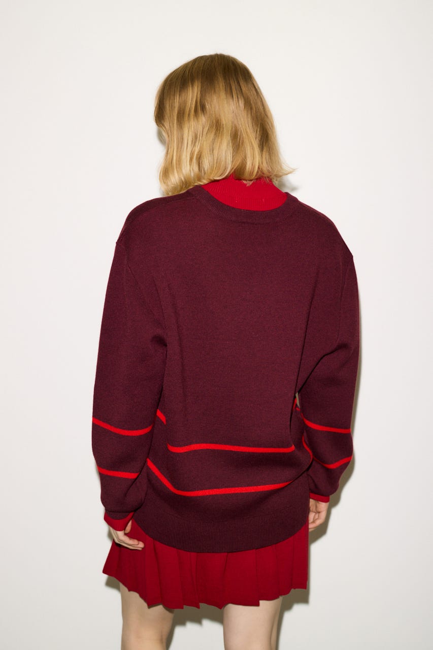身体のラインを拾わない程よい厚みのあるニット素材を使用し、着用するだけでフロントのジャガードが目をひき、スタイリングのアクセントになるアイテムです。