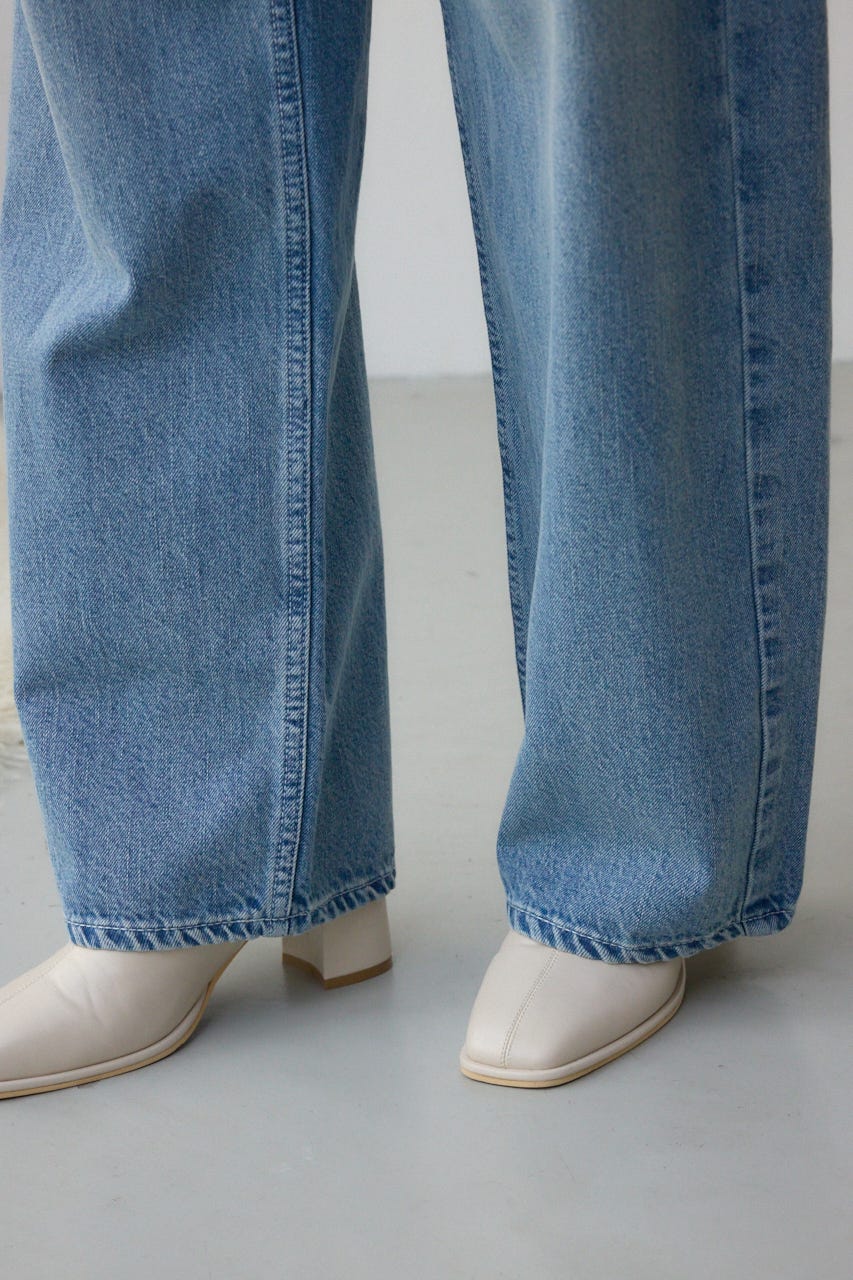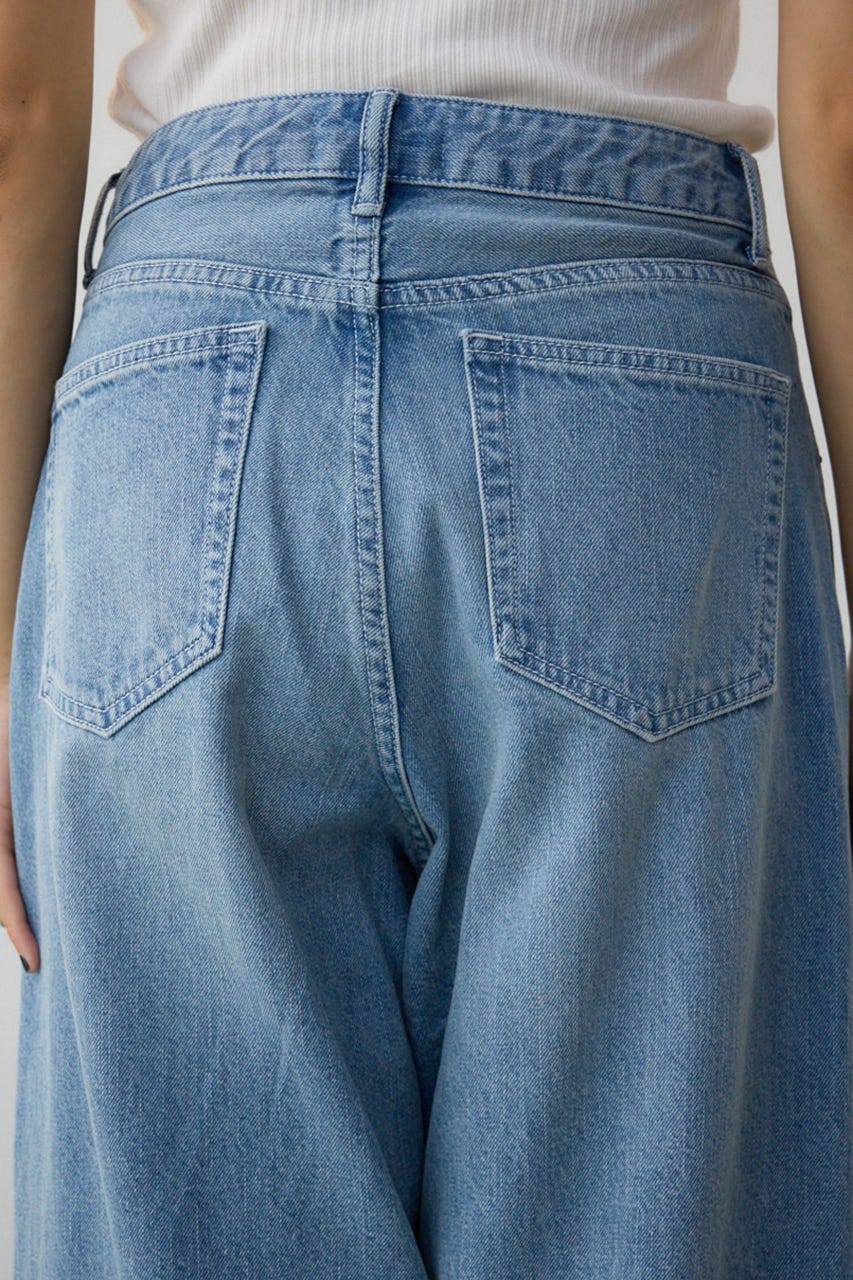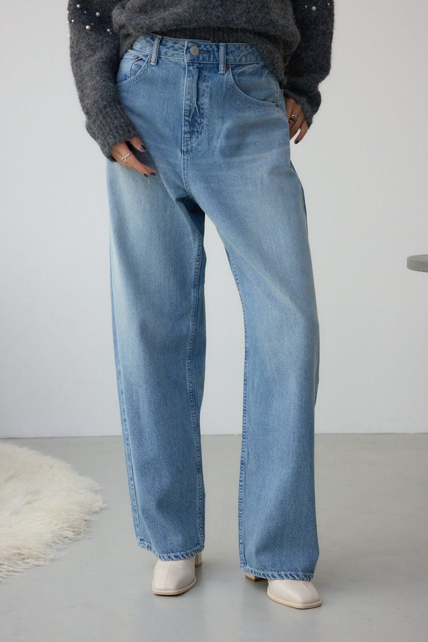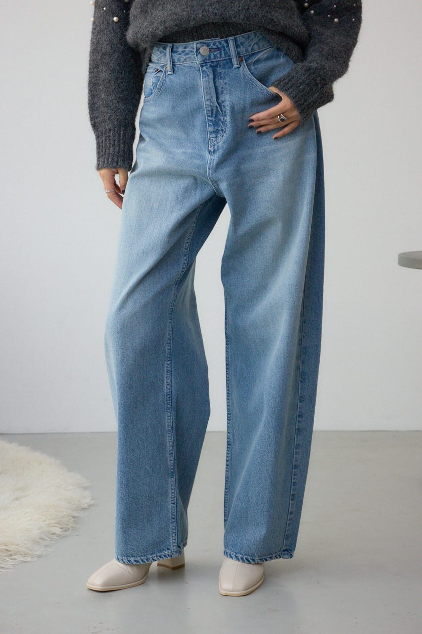 柔らかく落ち感のあるライトオンス素材で、トレンド感のあるカーブシルエットが美しいハイウエストデニム。