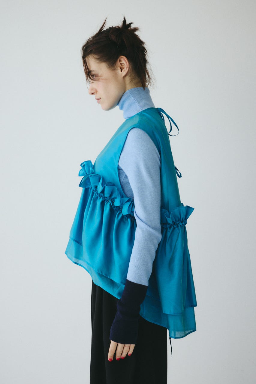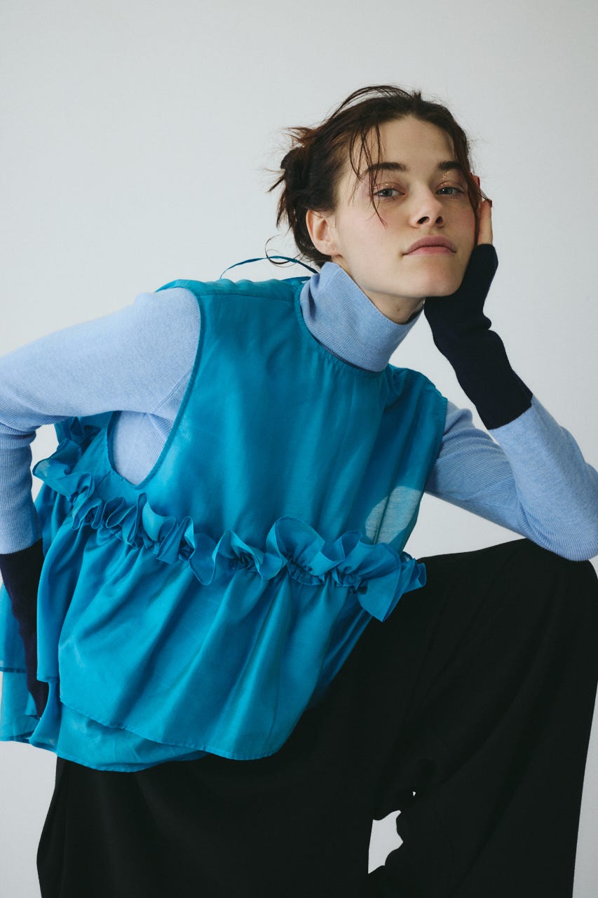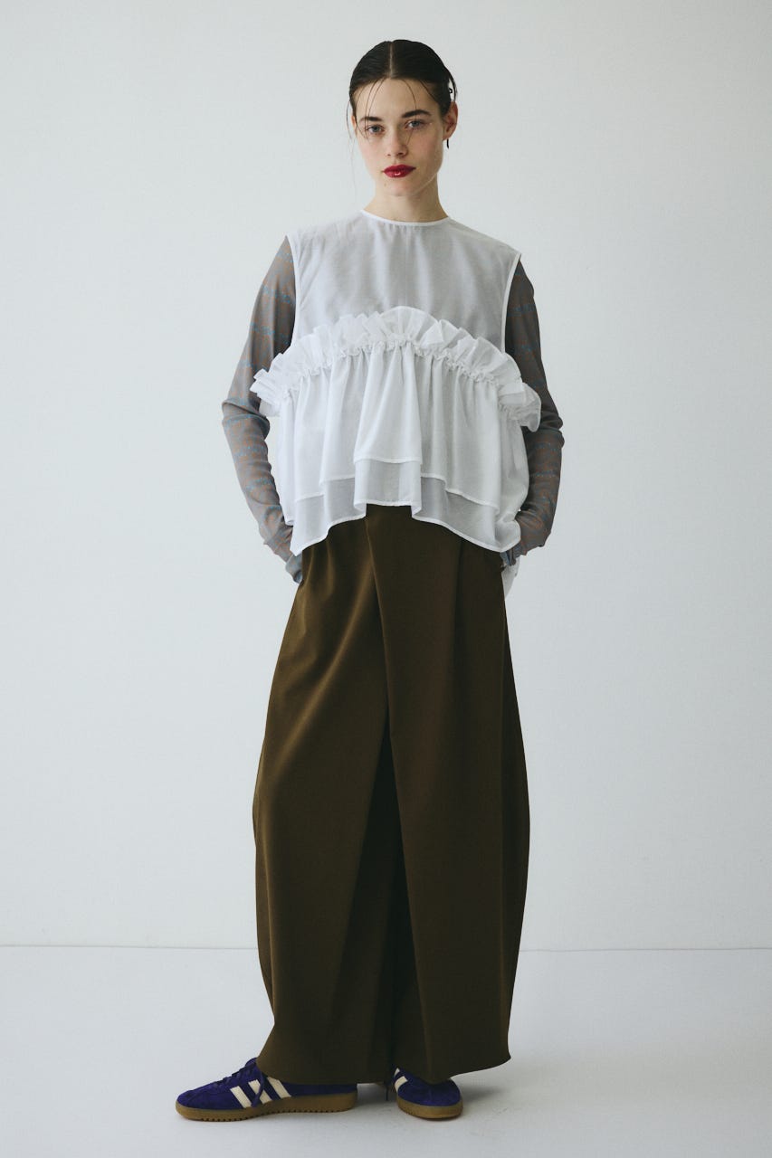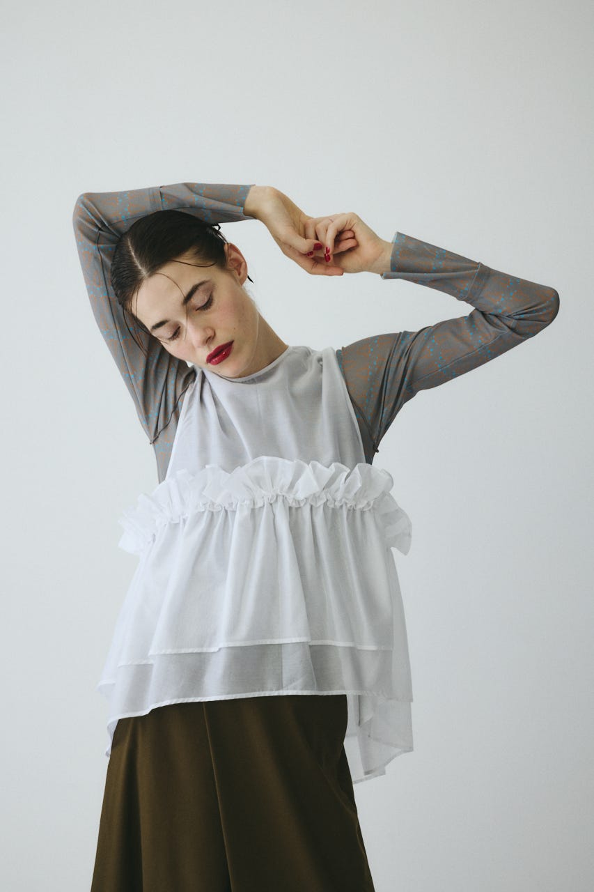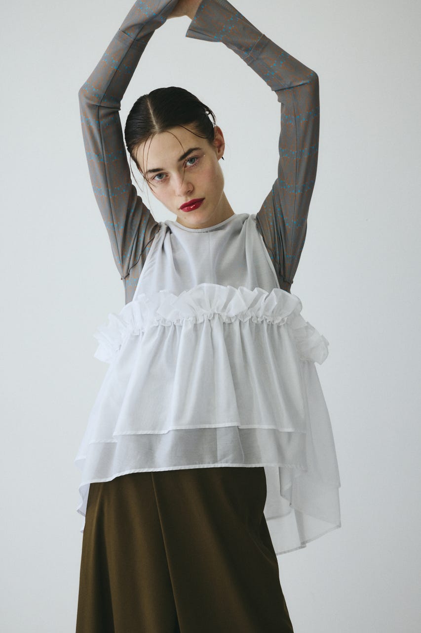 ※お届け時期:2025年12月下旬以降 透け感のあるフリルのブラウス