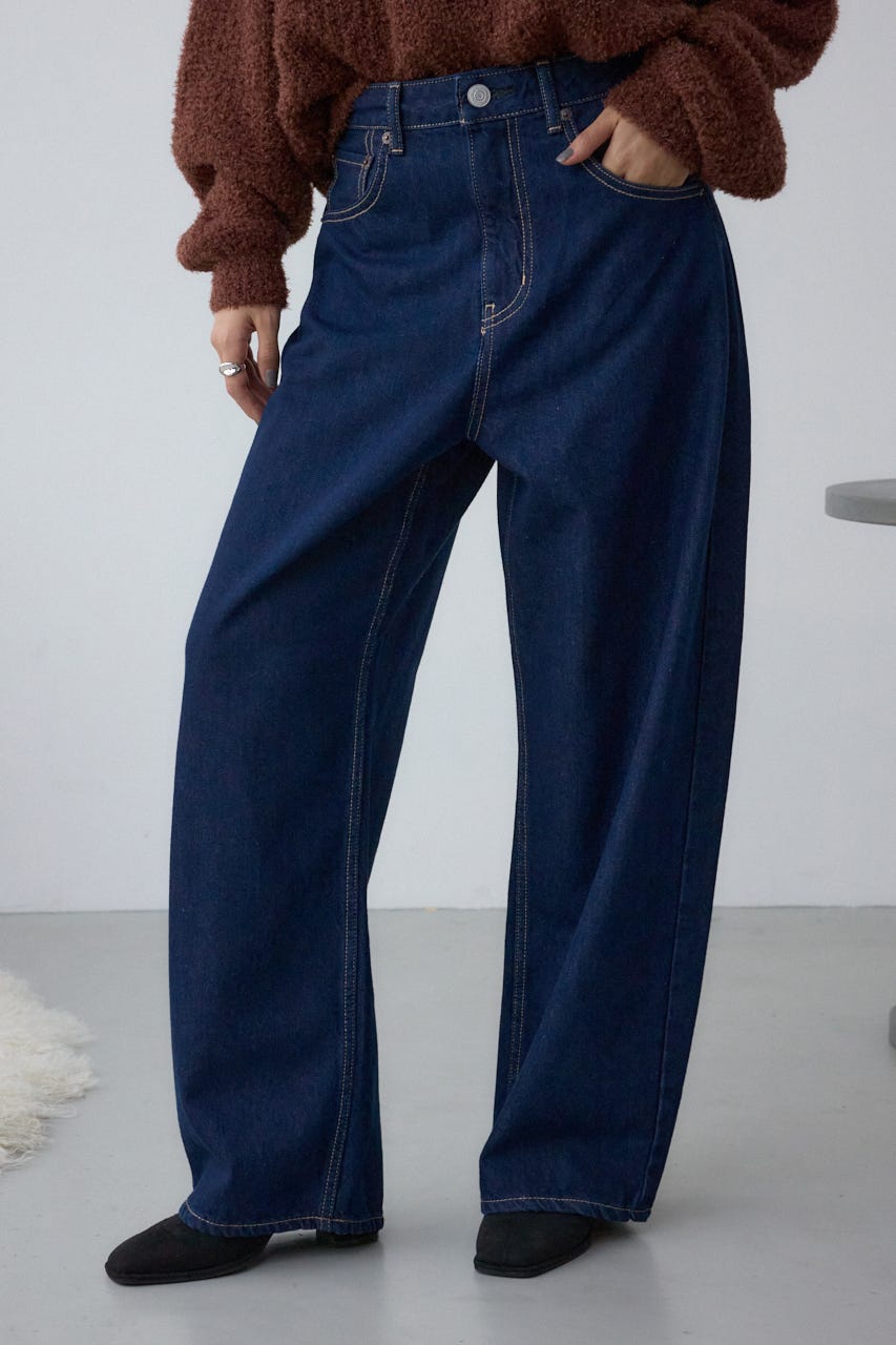 柔らかく落ち感のあるライトオンス素材で、トレンド感のあるカーブシルエットが美しいハイウエストデニム。