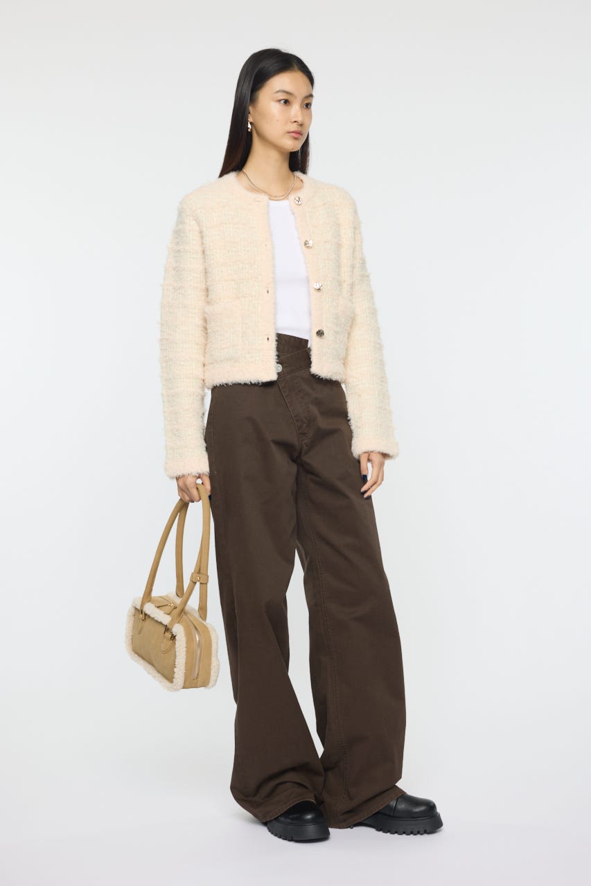 シンプルで洗練された美しさが漂うボアショルダーバッグ。