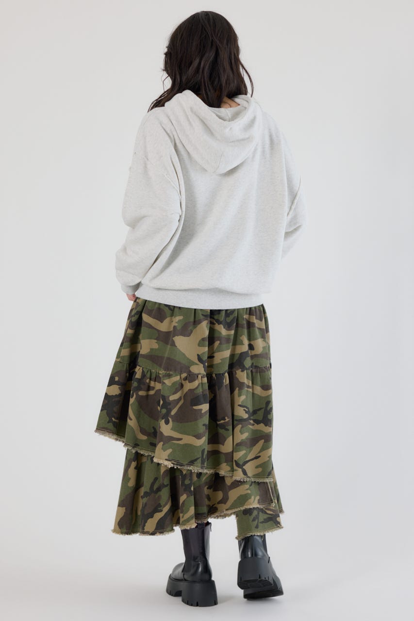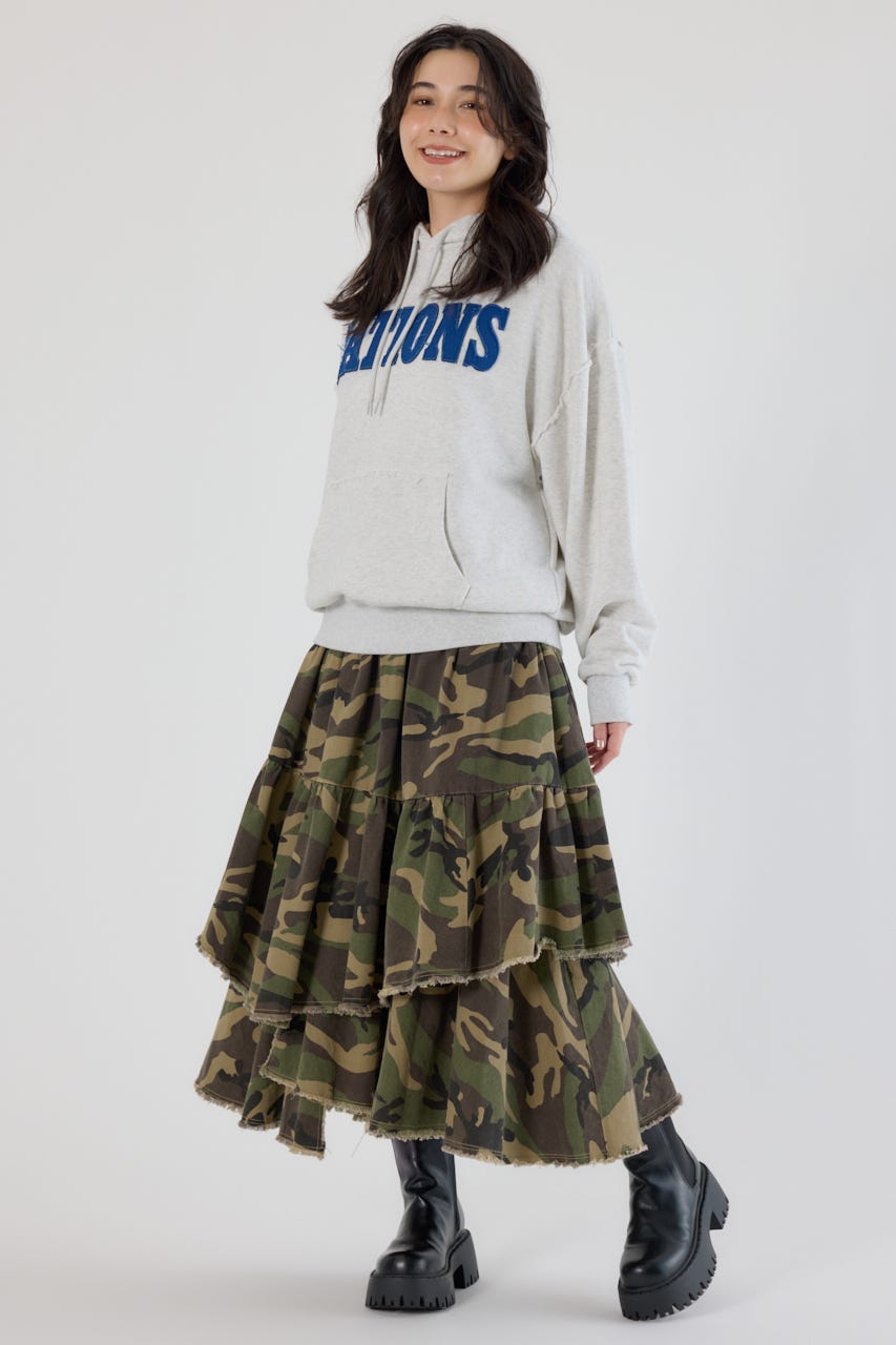 ランダムな裾ラインが、動きのあるシルエットを作り出し、軽やかな印象を与えます。