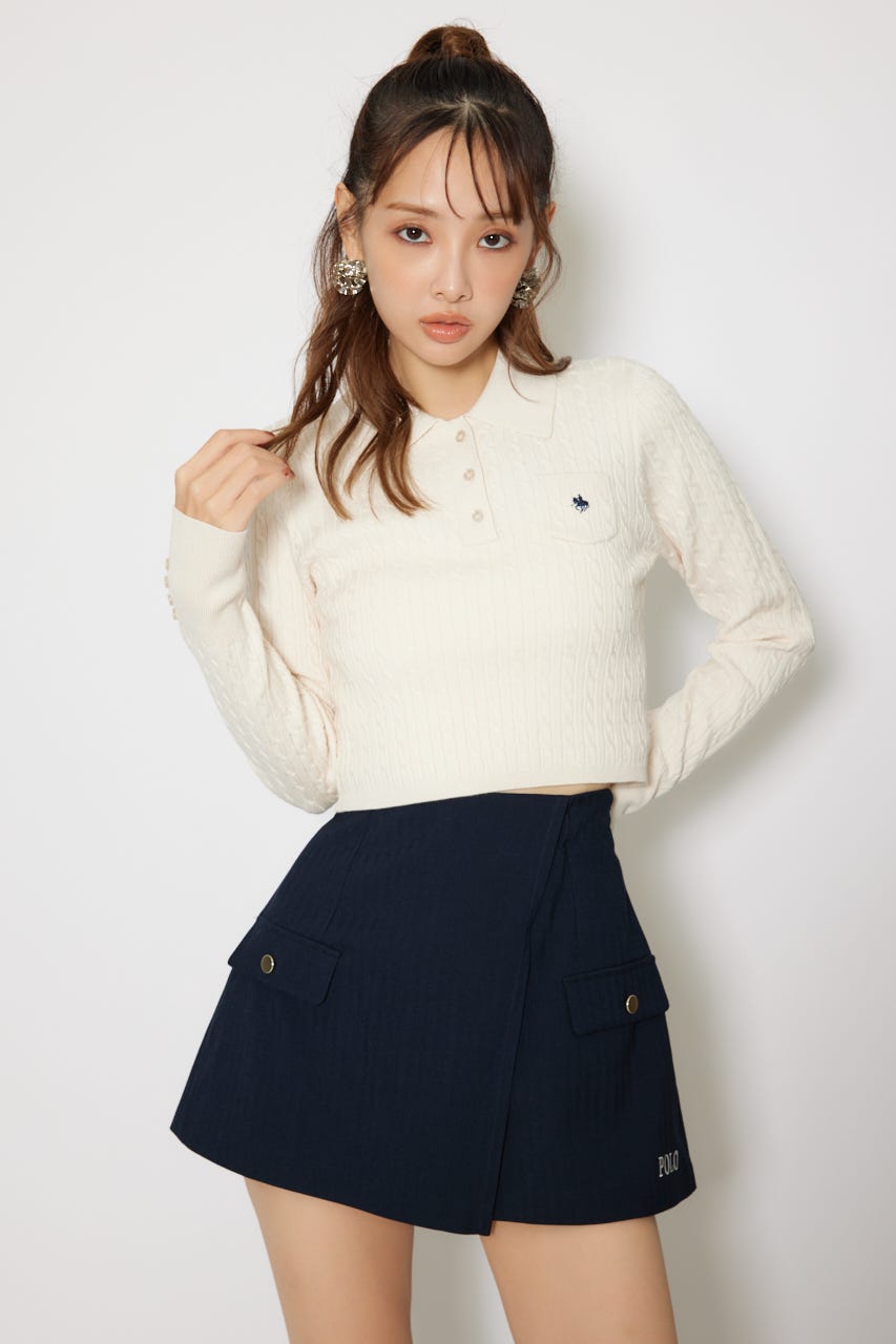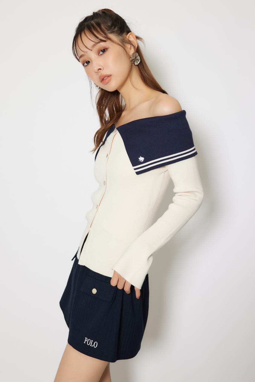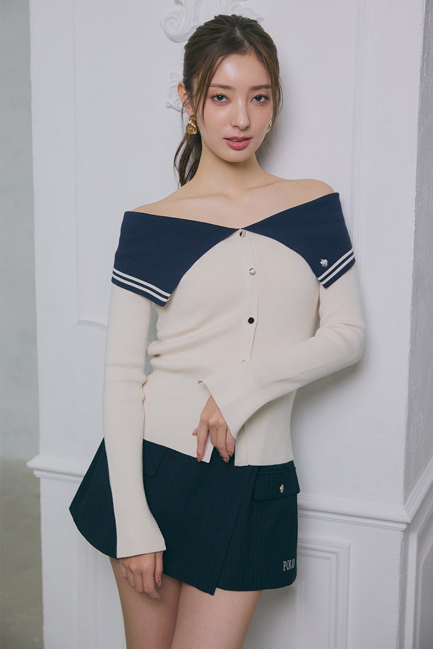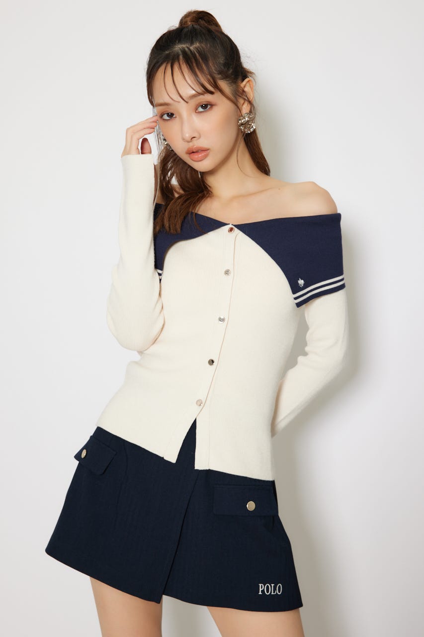 同じくPOLOコラボの110IA370-2651【POLO BCS】バイカラーオフショルKnit TOPや110IA370-3021【POLO BCS】ケーブルニットTOPSの着合わせがおすすめです。