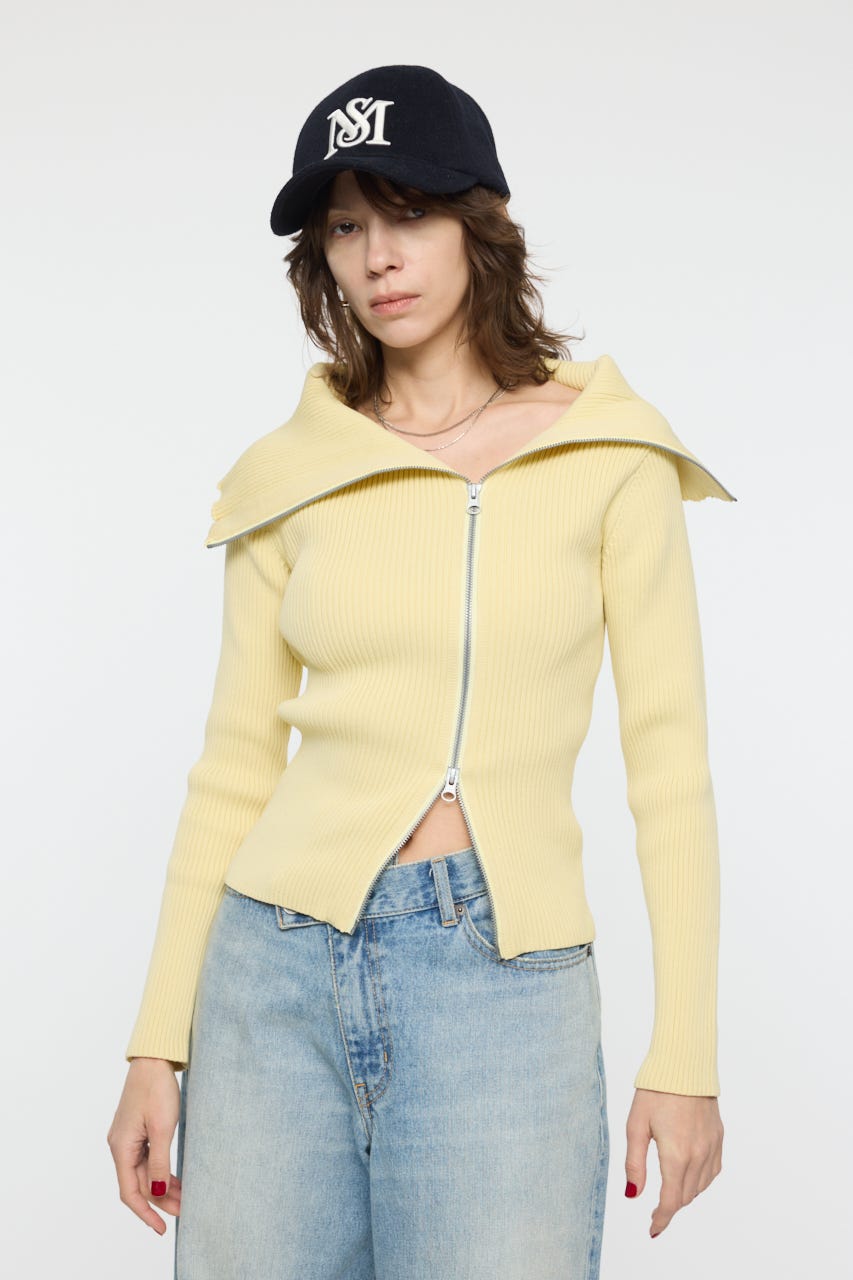 BIG COLLAR ZIP UP ニットトップス