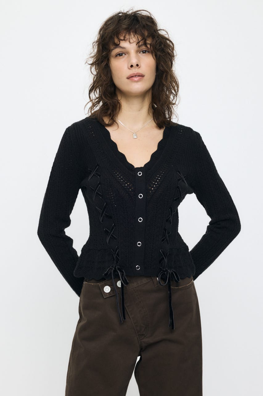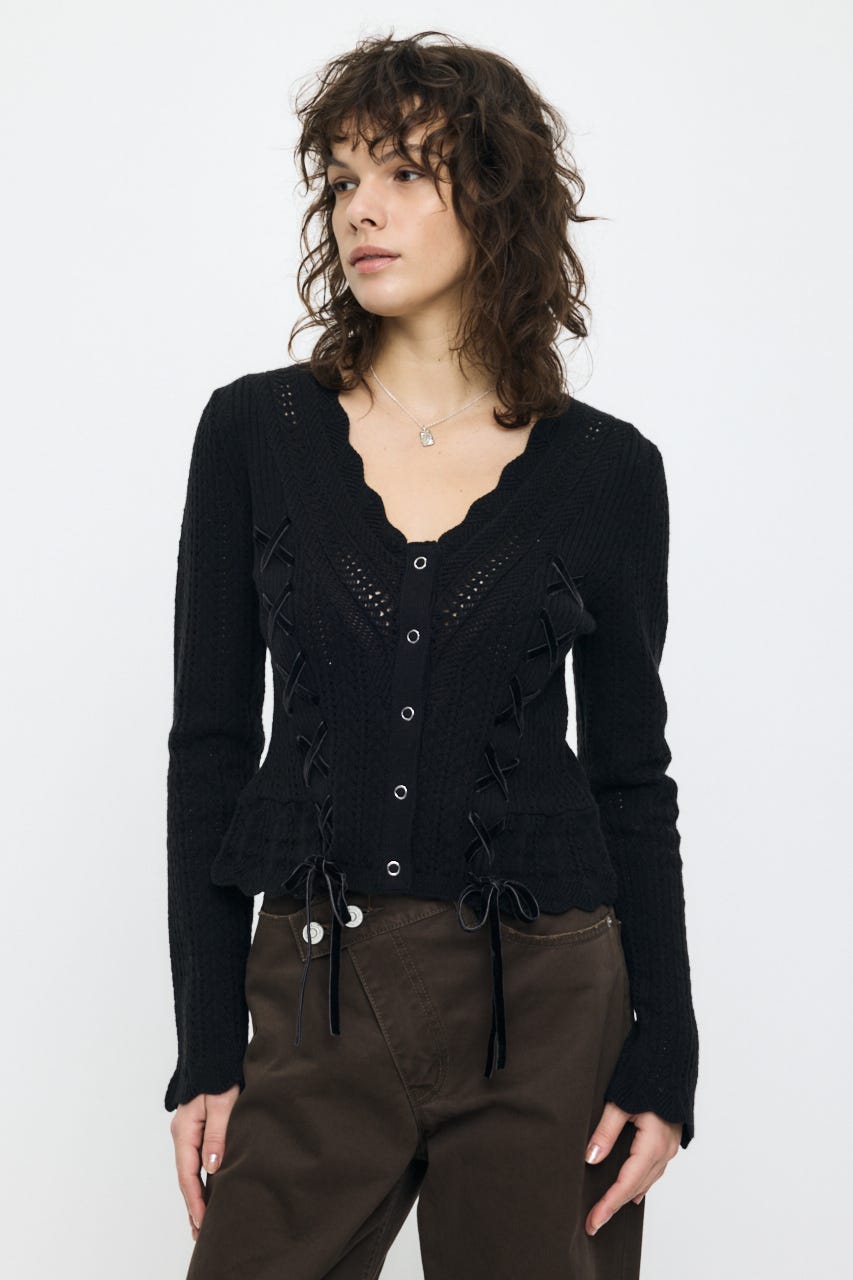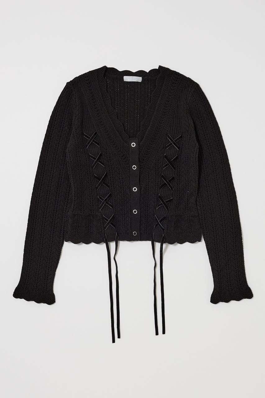 <入荷リクエスト受付中> 【LACE UP RIBBON CARDIGAN/レース アップ リボン カーディガン】