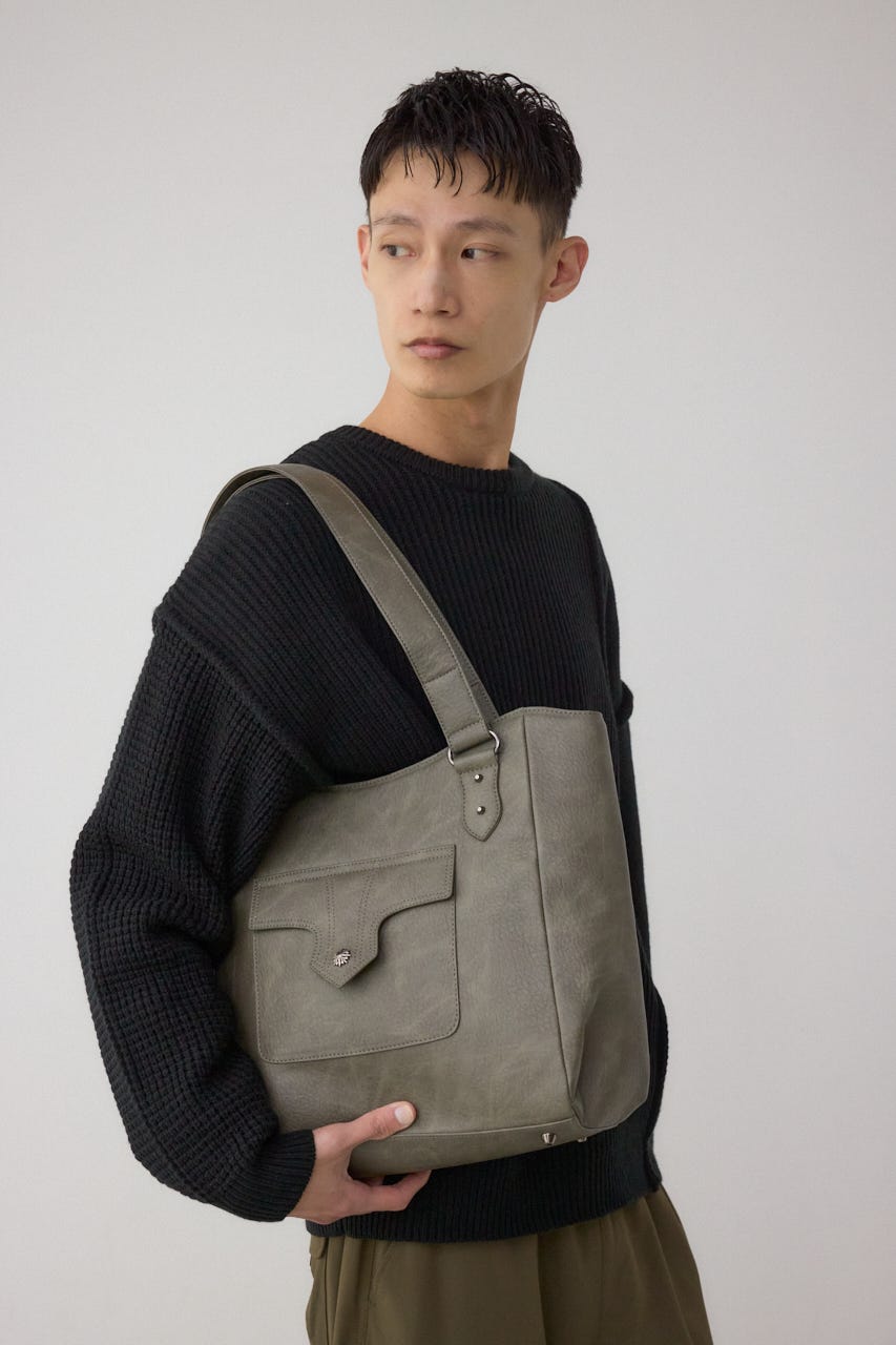 合成皮革のマットな質感にコンチョを配し、クラシックで男らしいアクセントを効かせたデザイン。