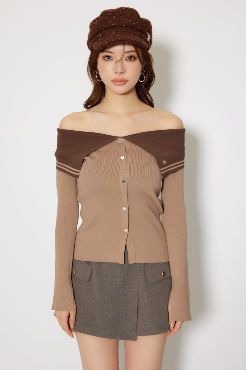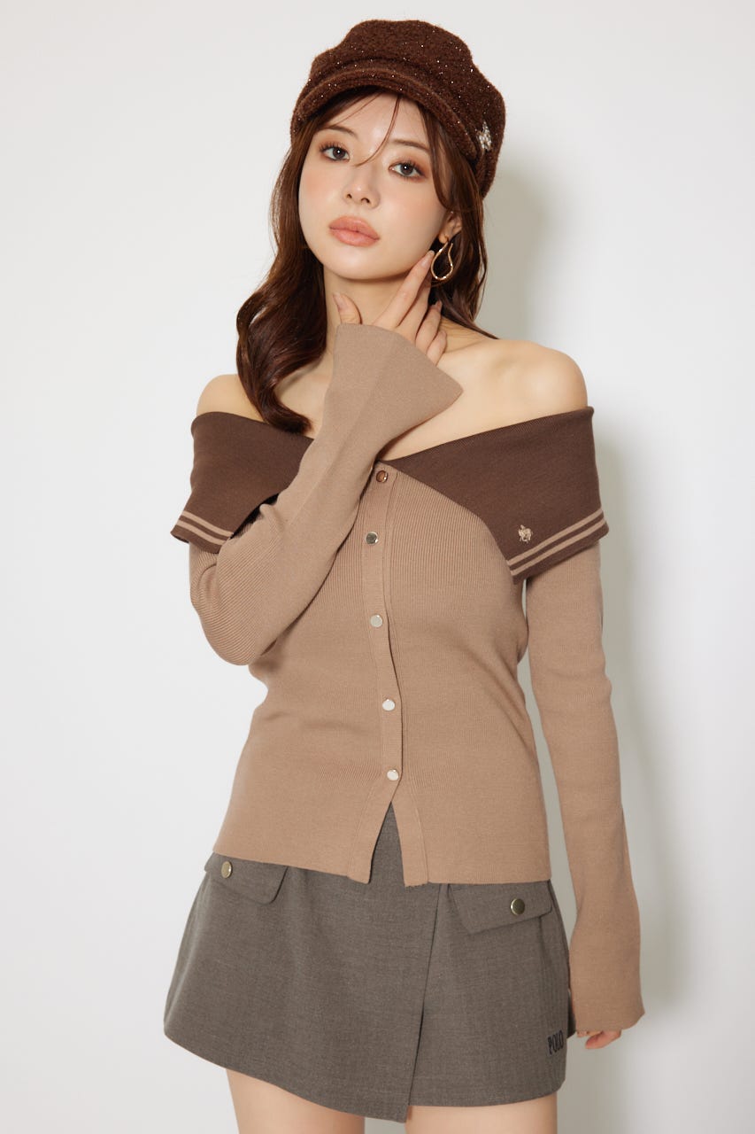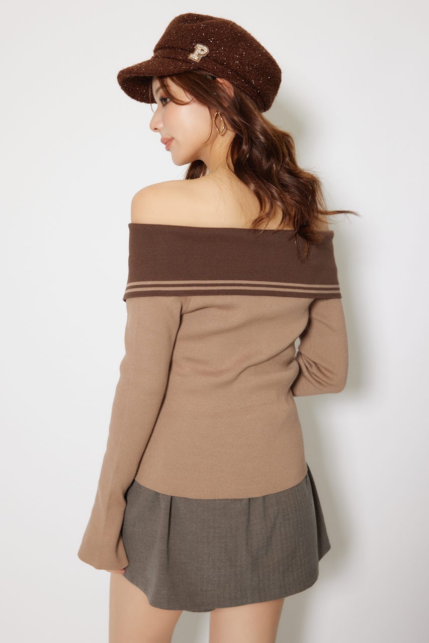 オフショルデザインでデコルテラインをきれいに魅せてくれて、抜け感ある女性らしいアイテムに仕上げました。