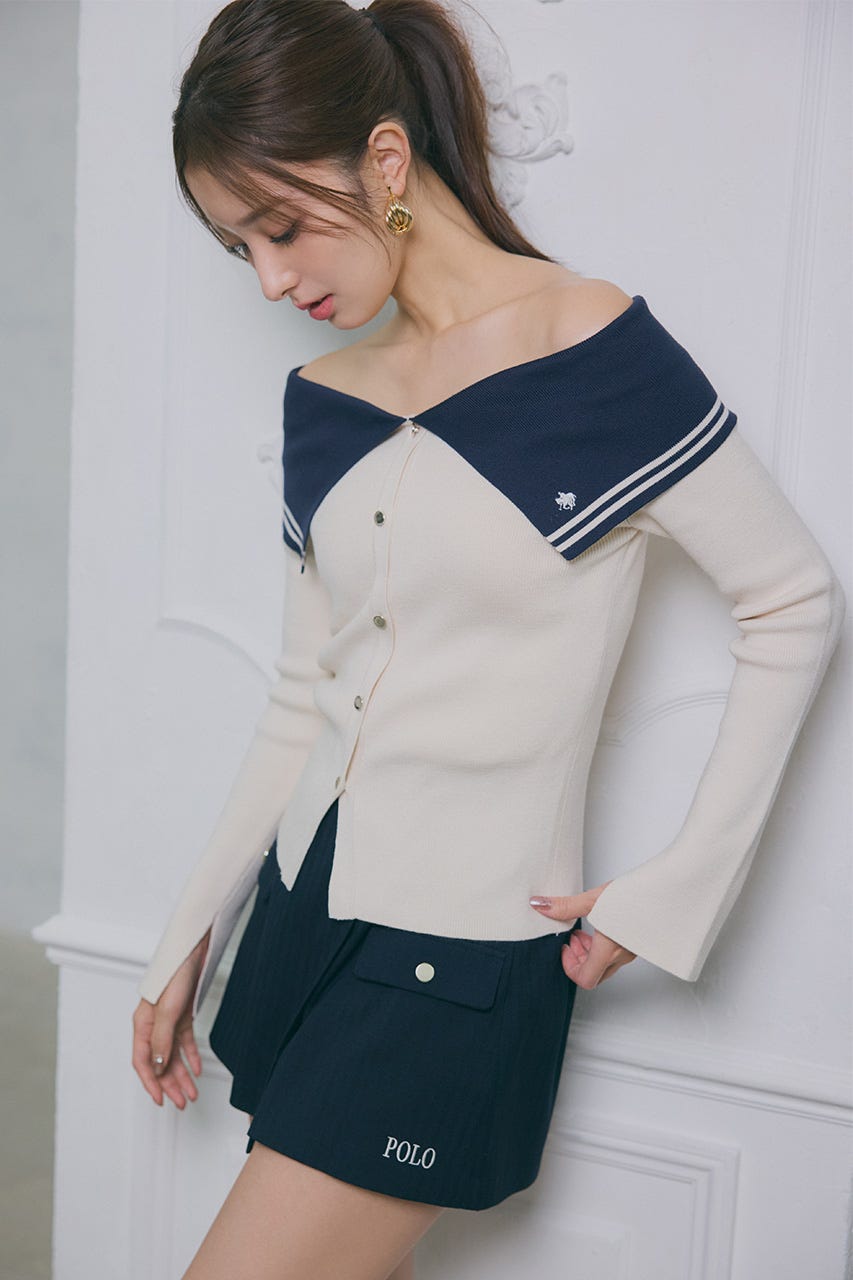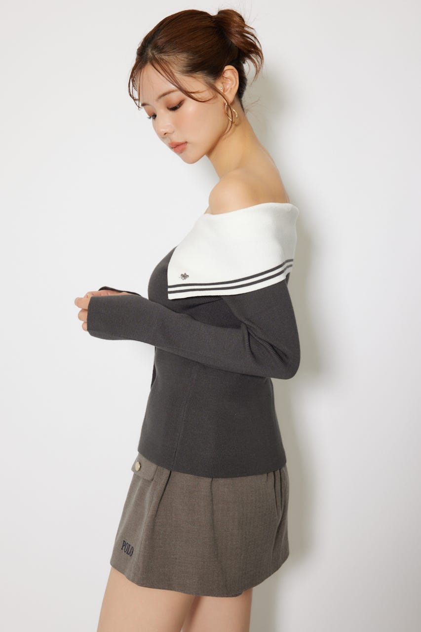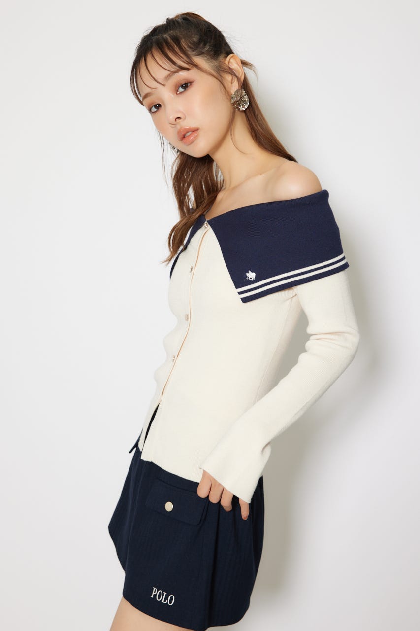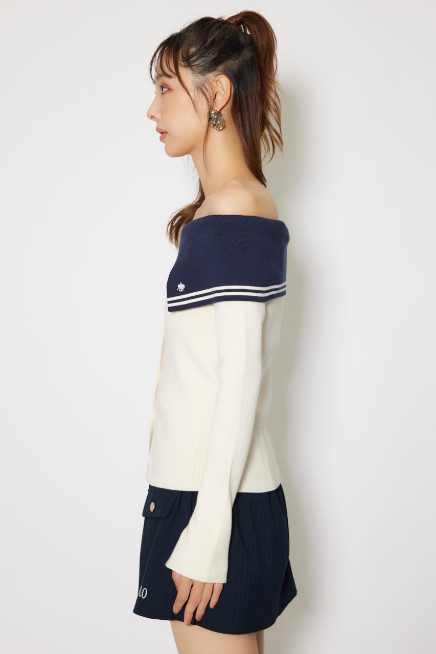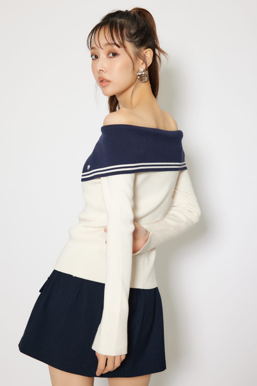 今季トレンドのセーラーカラーのディテールを施したニットトップス。