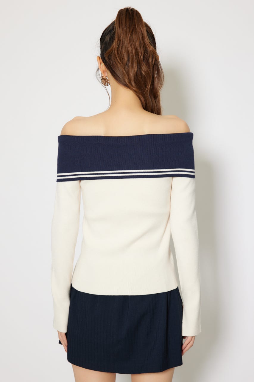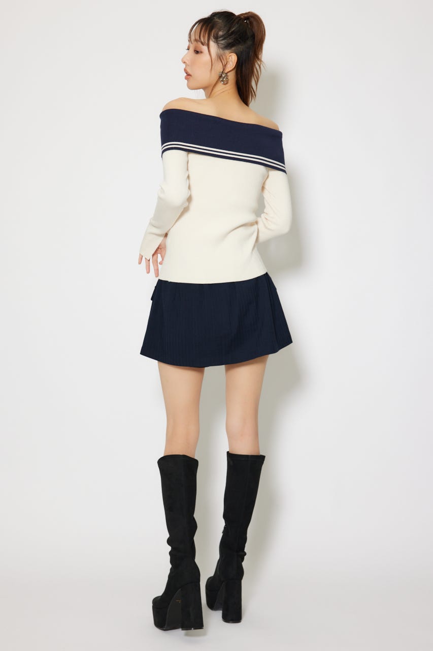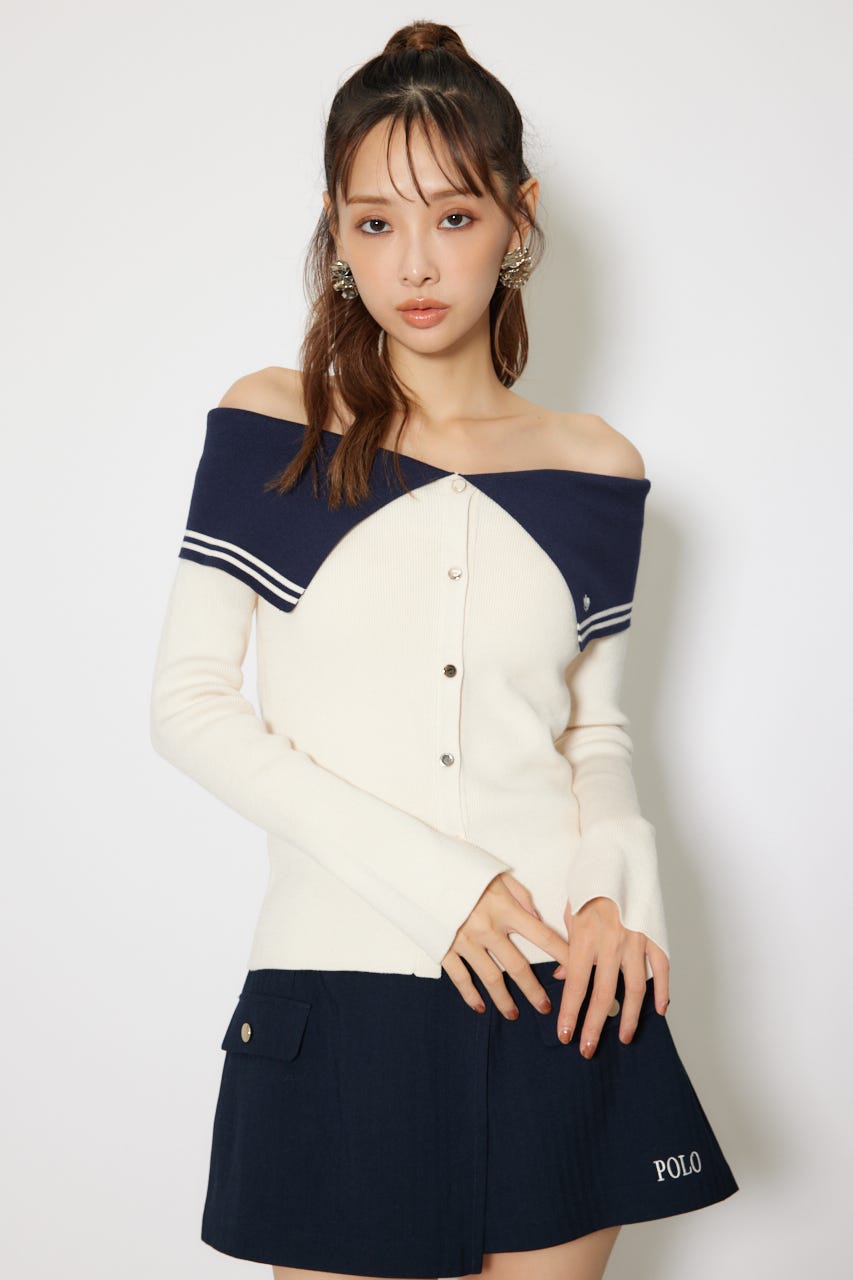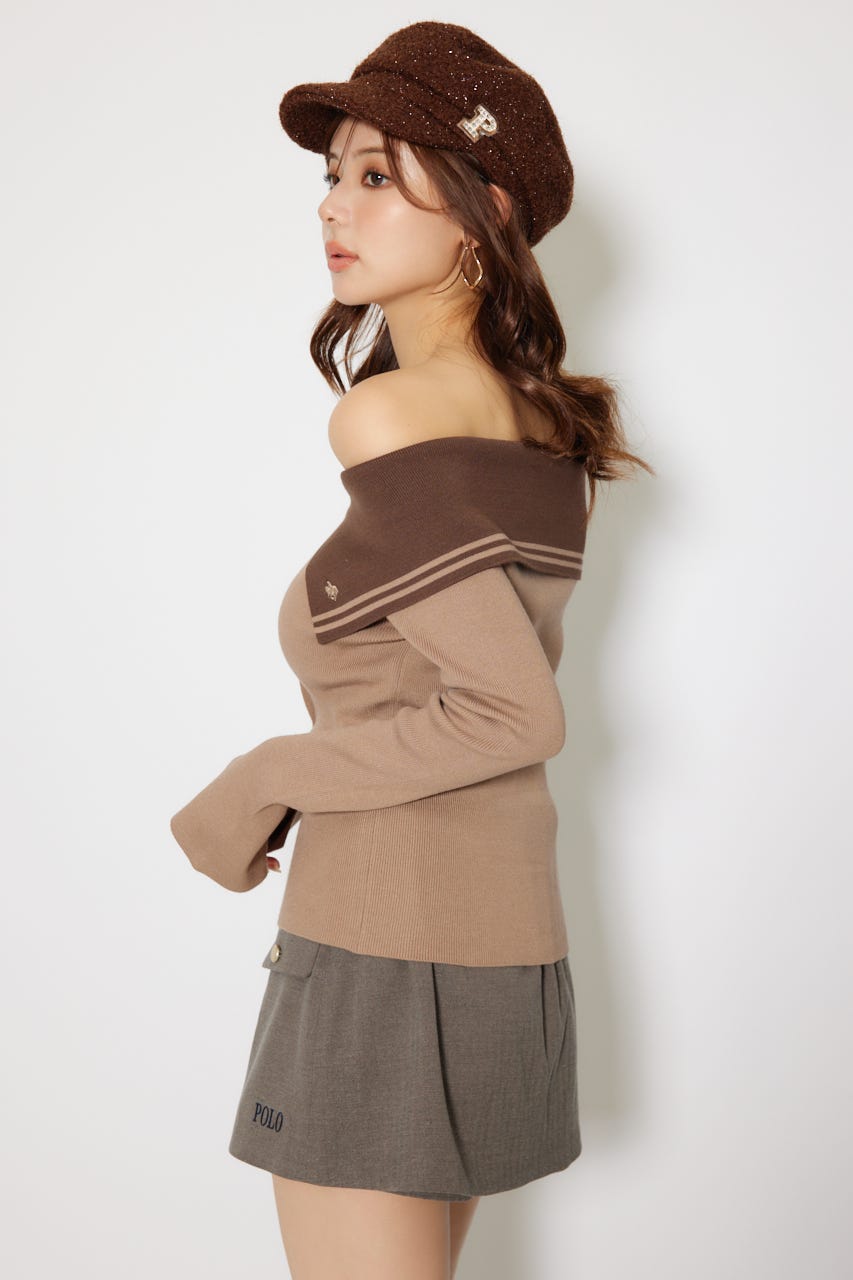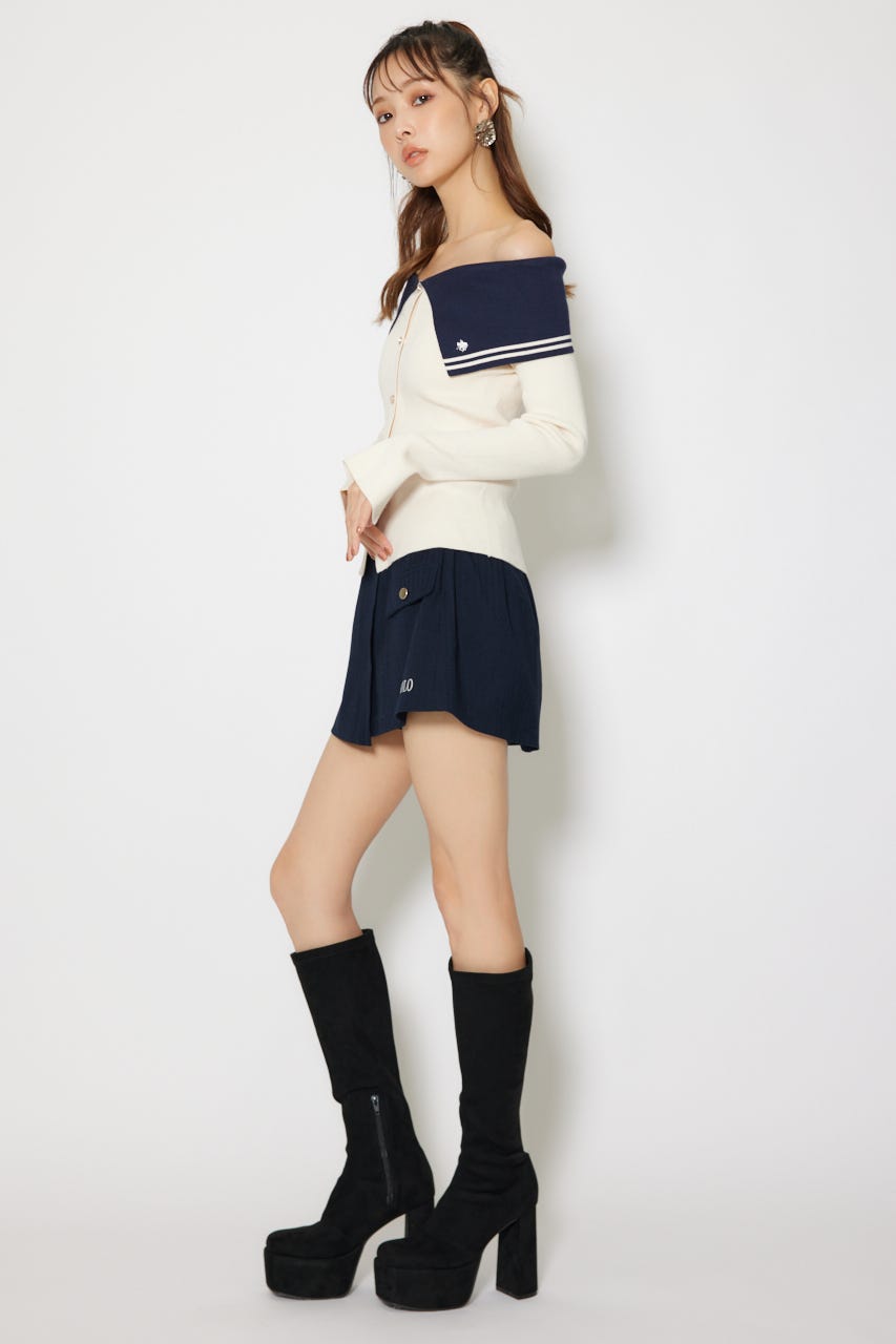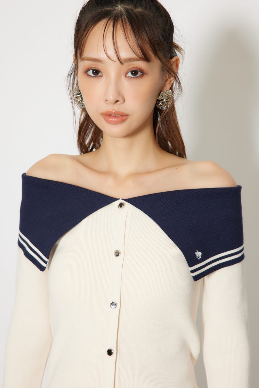 今季トレンドのセーラーカラーのディテールを施したニットトップス。