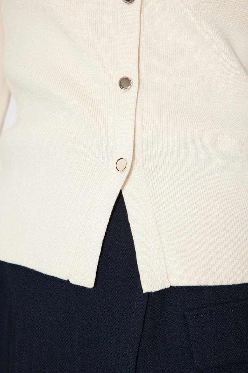 身頃と袖はボディラインをきれいに魅せてくれるリブ編みで仕立て、袖口にはスリットを入れてさりげない肌見せが叶うデザインになっています。