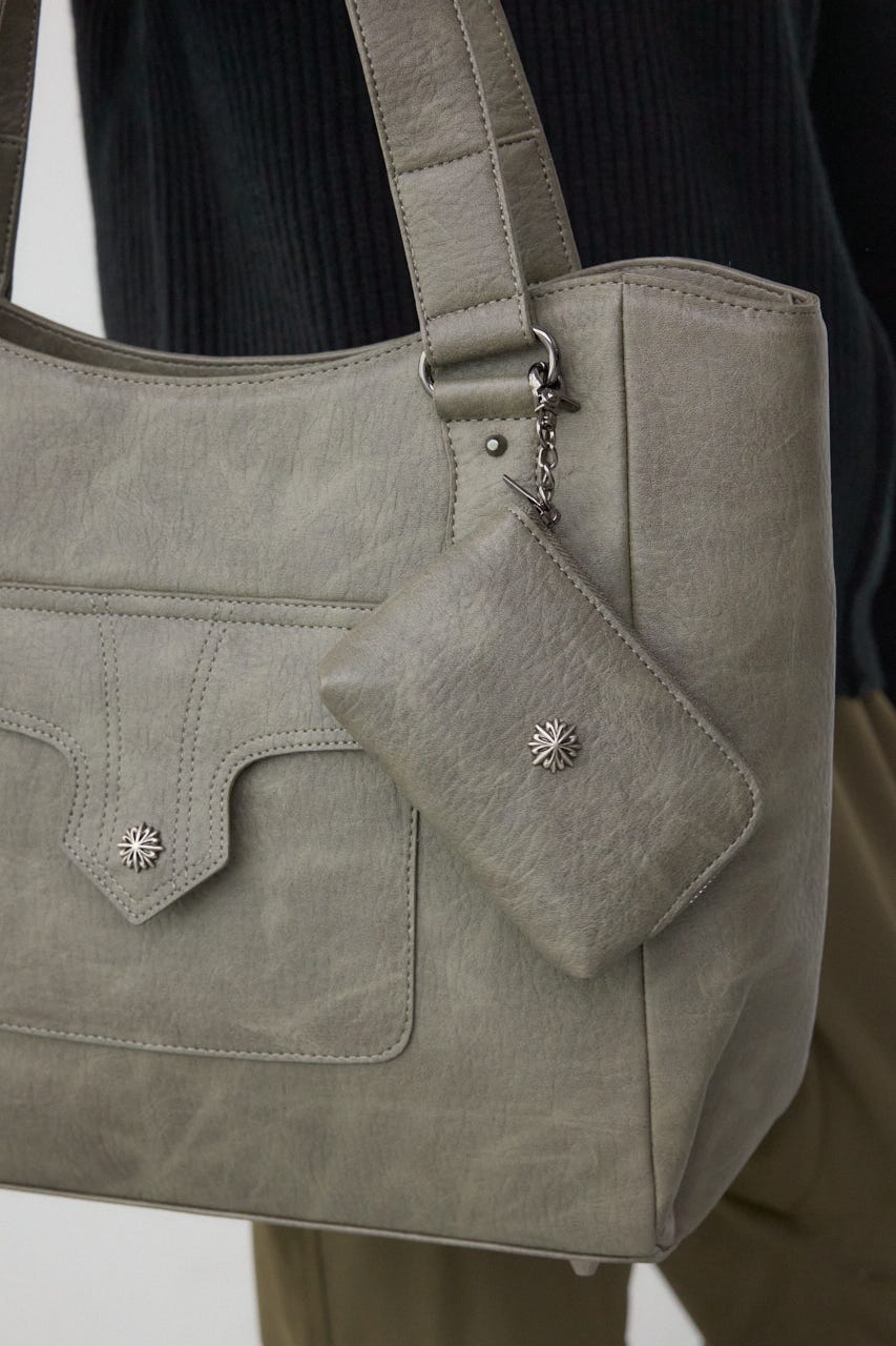 合成皮革を使用し、フロントにはコンチョ装飾ボタンをあしらったクラシックなデザイン。