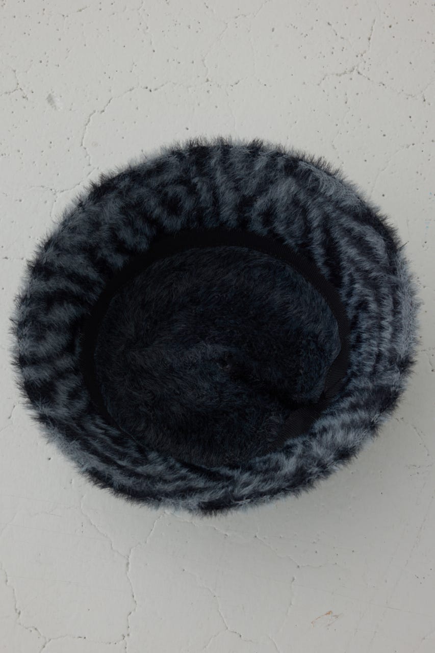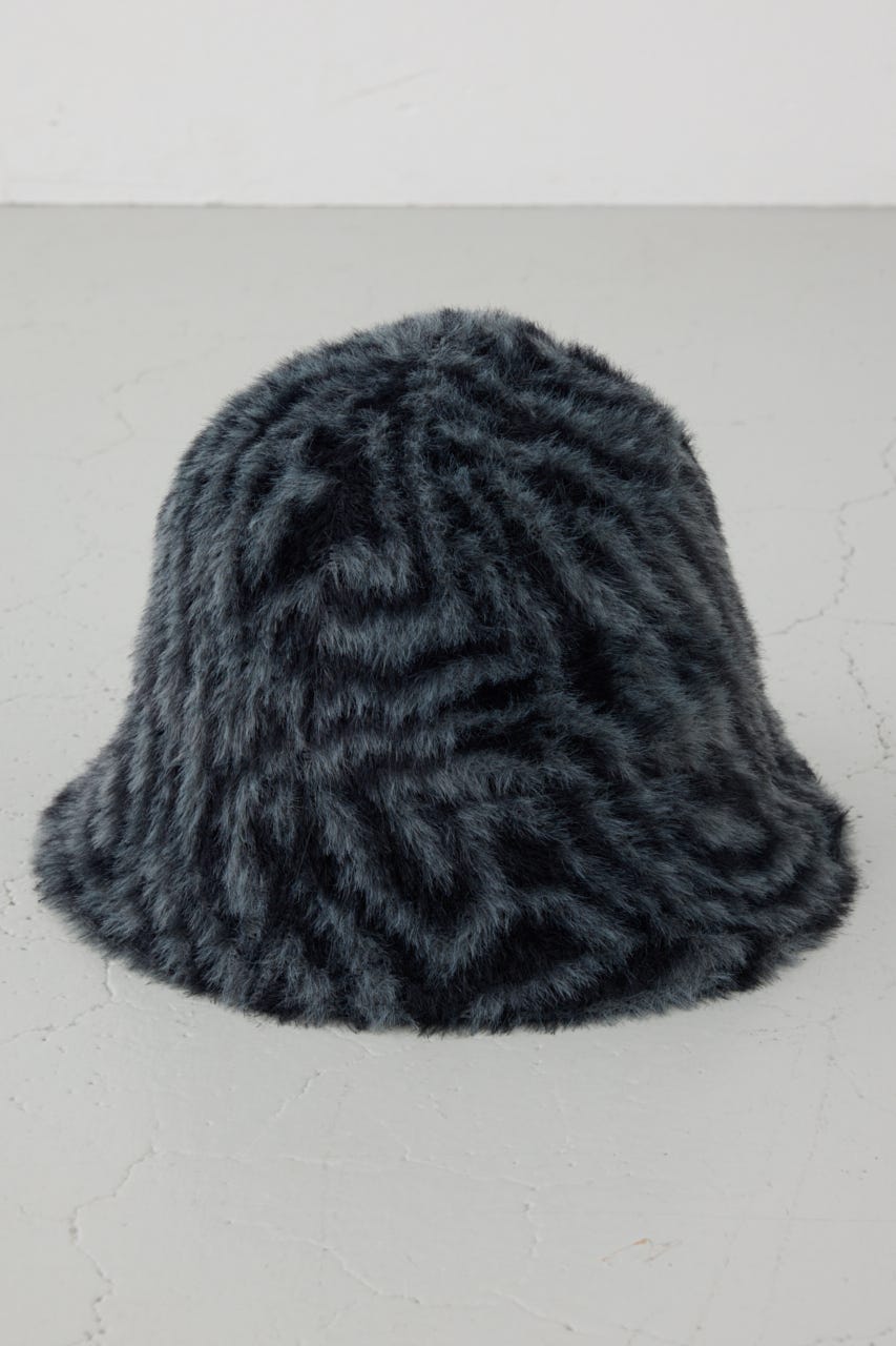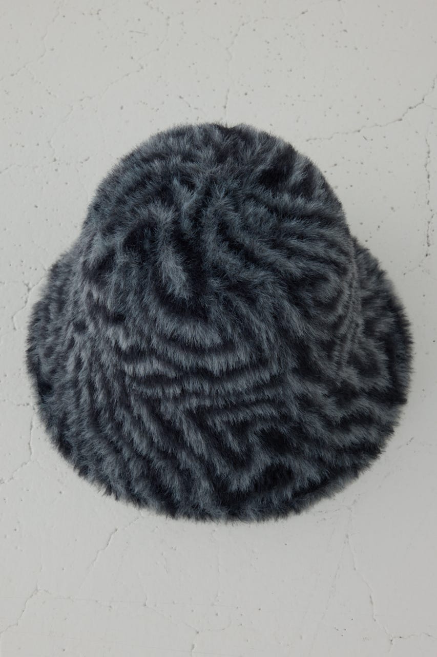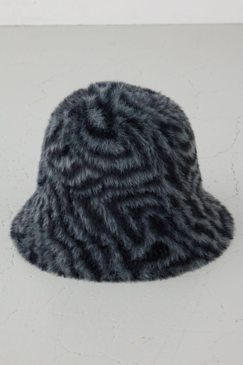 ゼブラの総柄が目をひくシャギー素材のバケットハットです。
