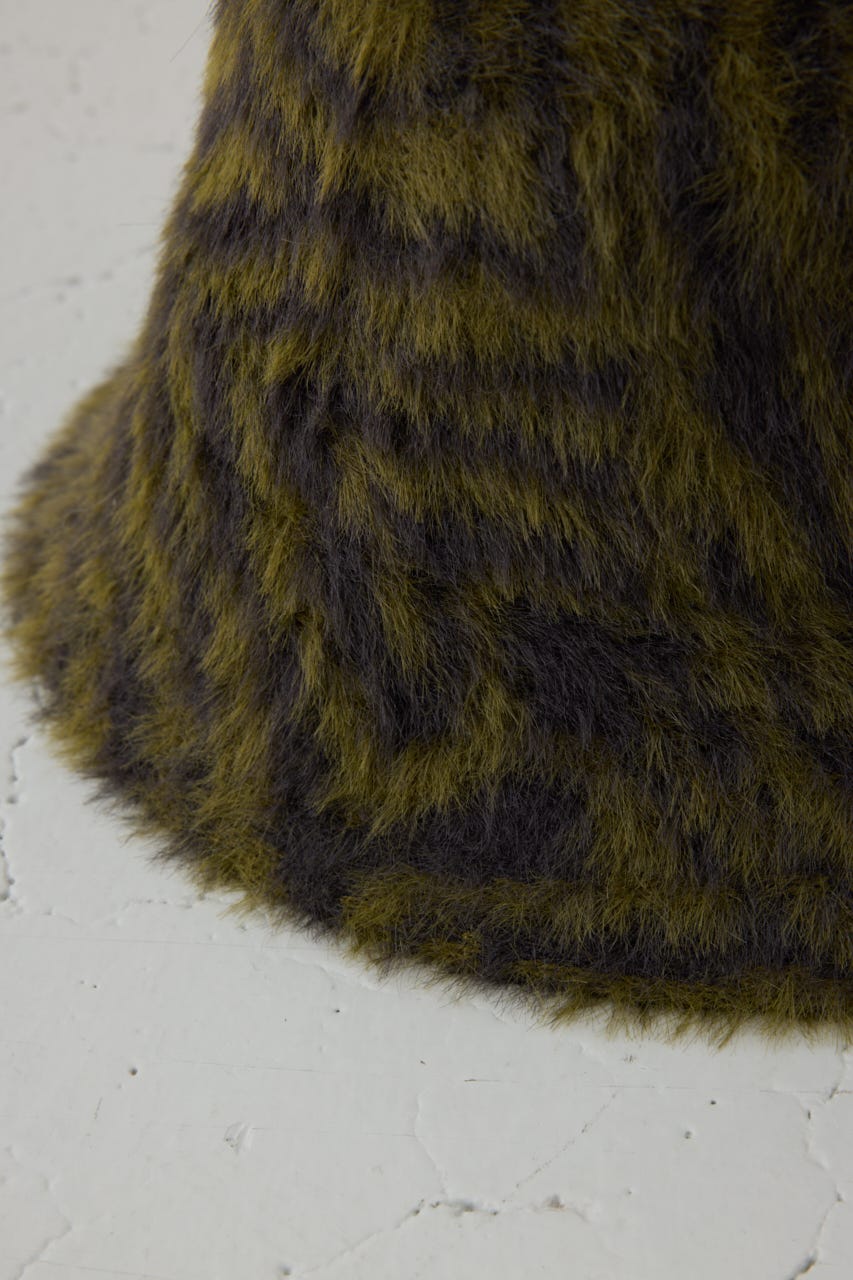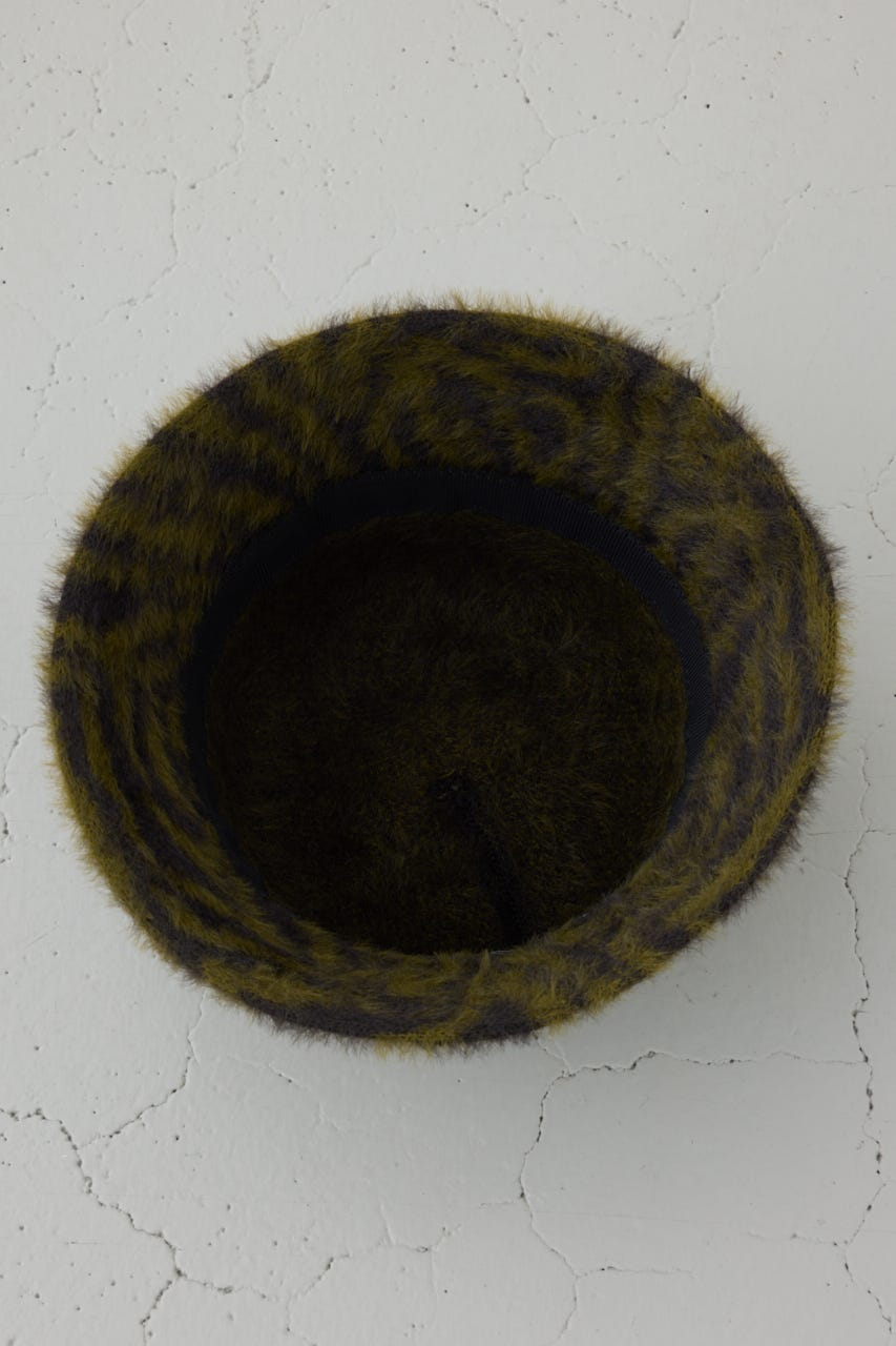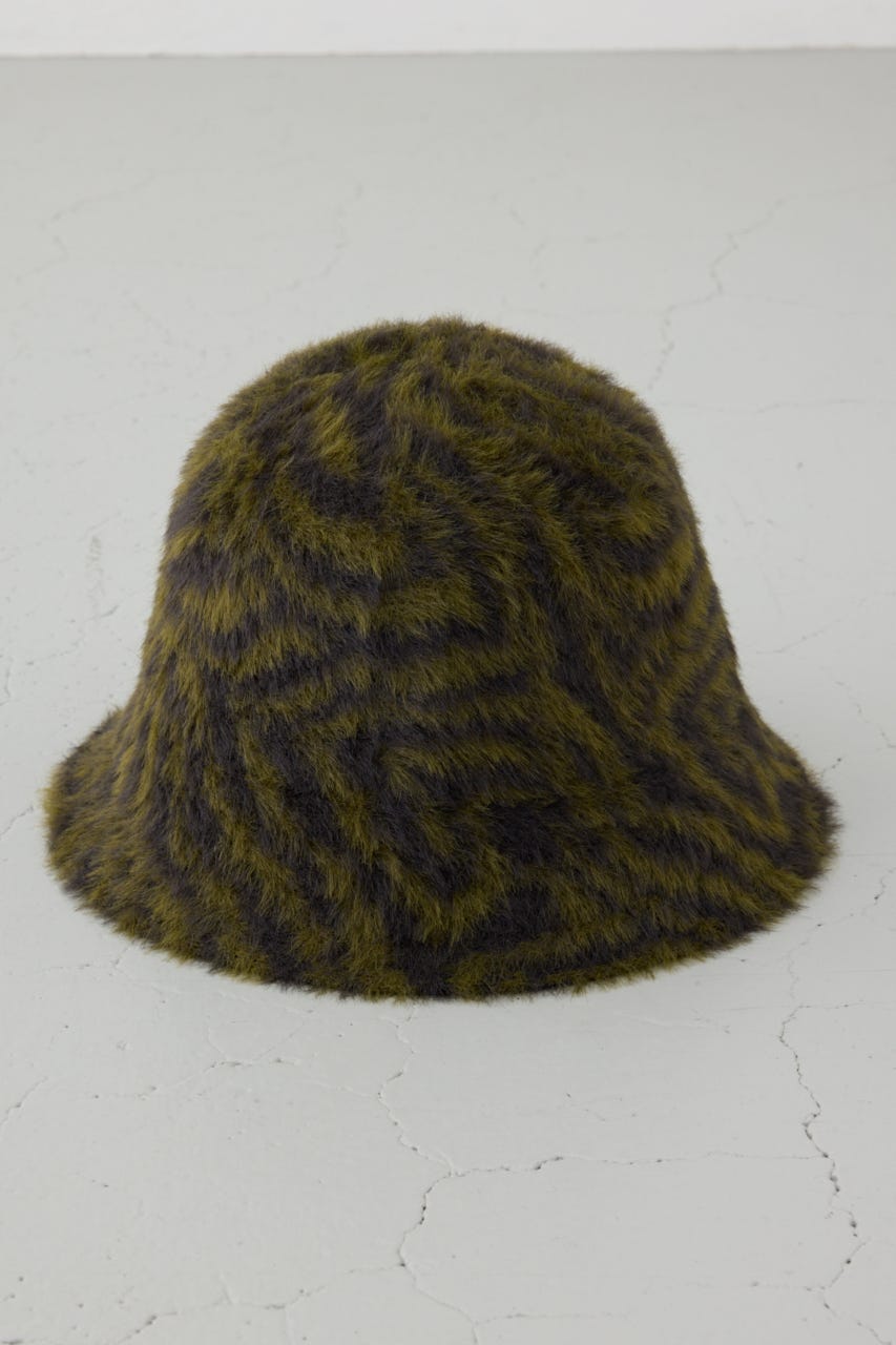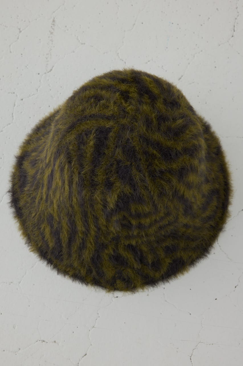 ゼブラの総柄が目をひくシャギー素材のバケットハットです。