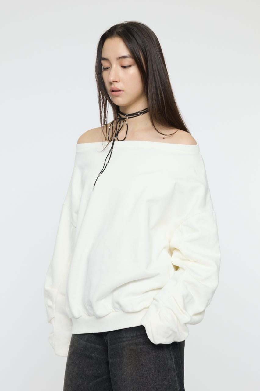 【WASHED OFF SHOULDER SWEAT/ ウォッシュド オフショルダー スウェット】