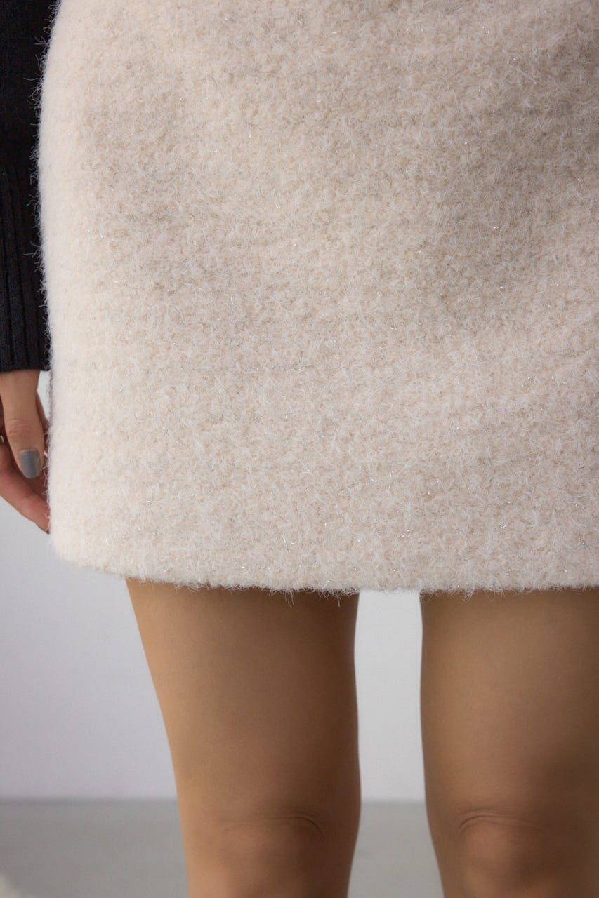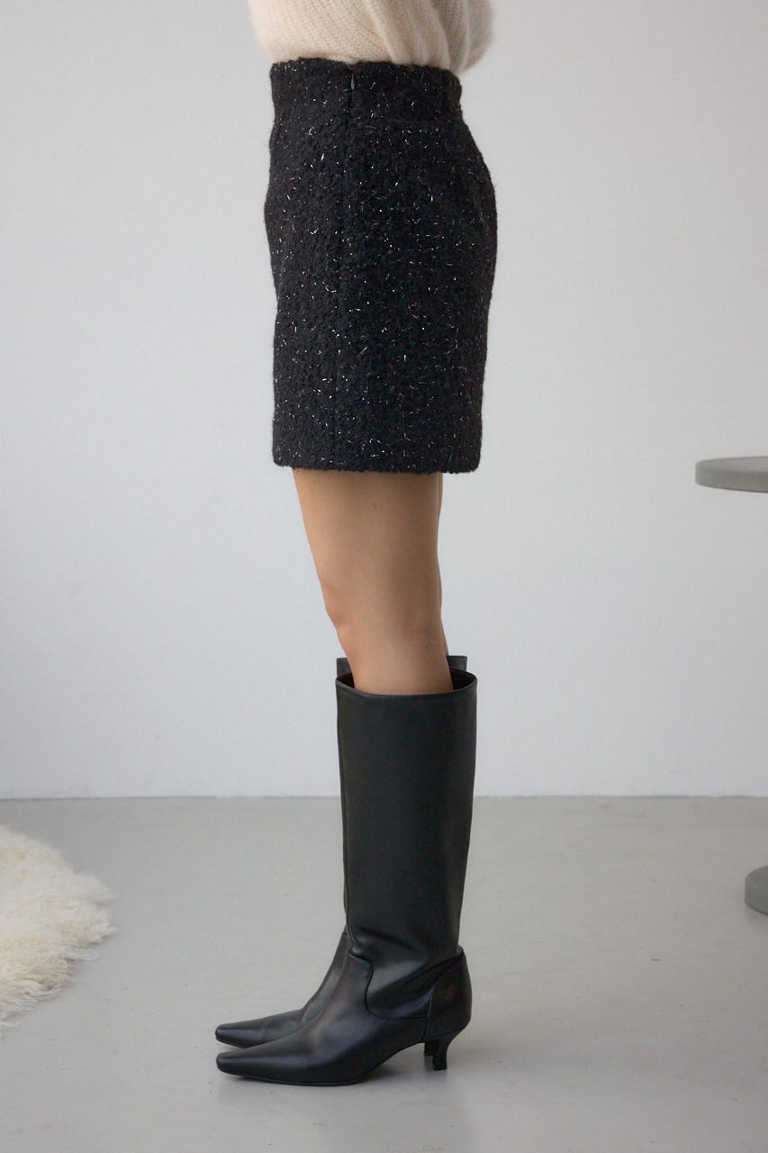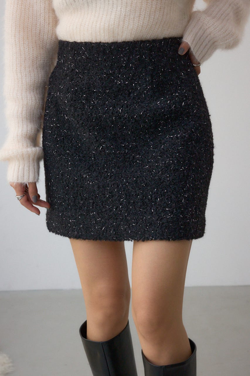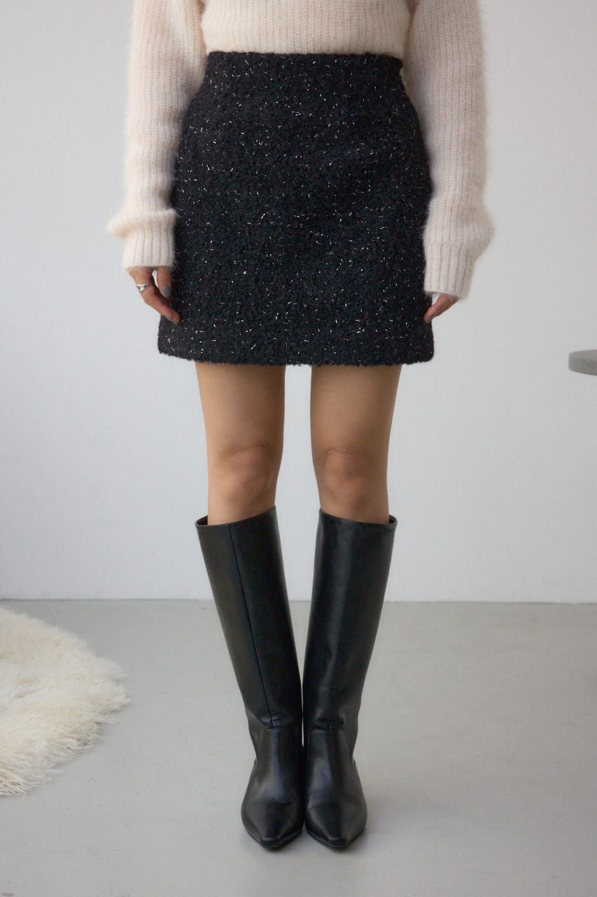 ふんわりしたブークレ素材にさりげないラメを散りばめた、冬にぴったりのミニタイトスコート。