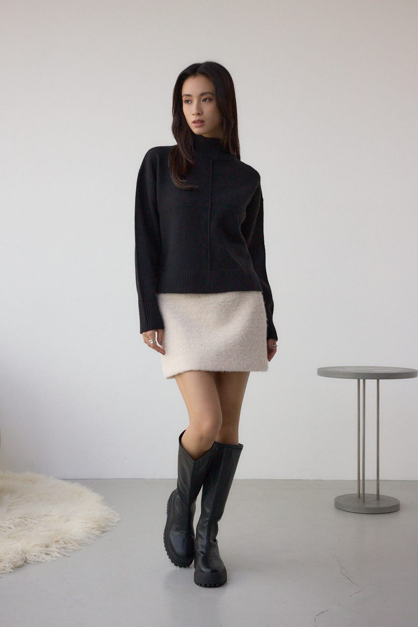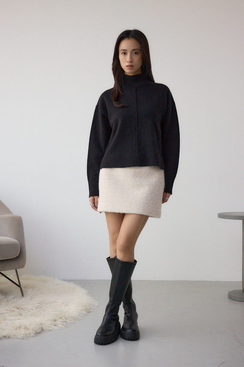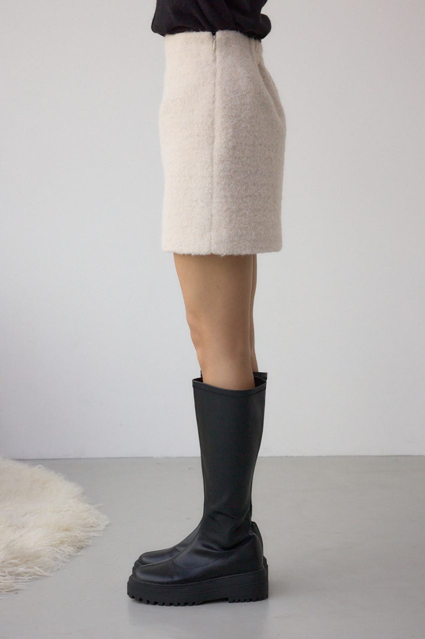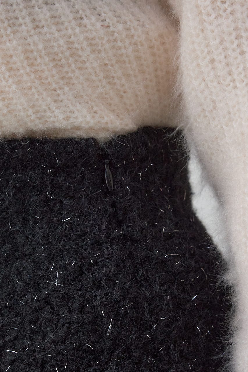 ふんわりしたブークレ素材にさりげないラメを散りばめた、冬にぴったりのミニタイトスコート。