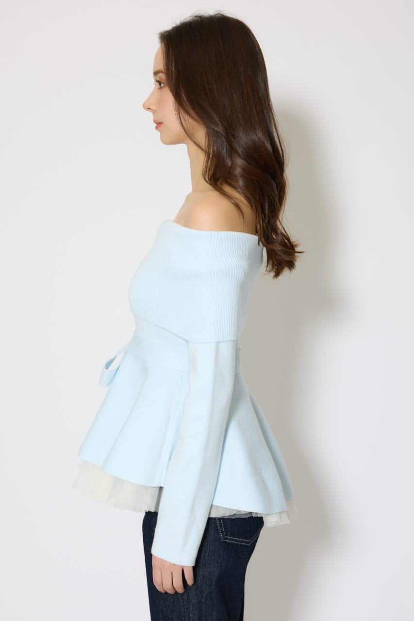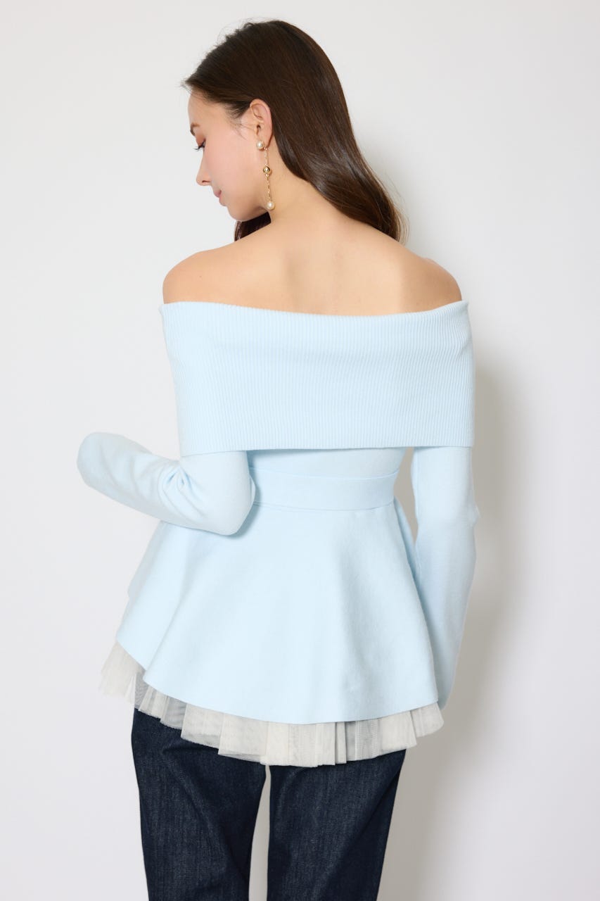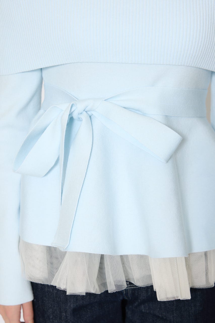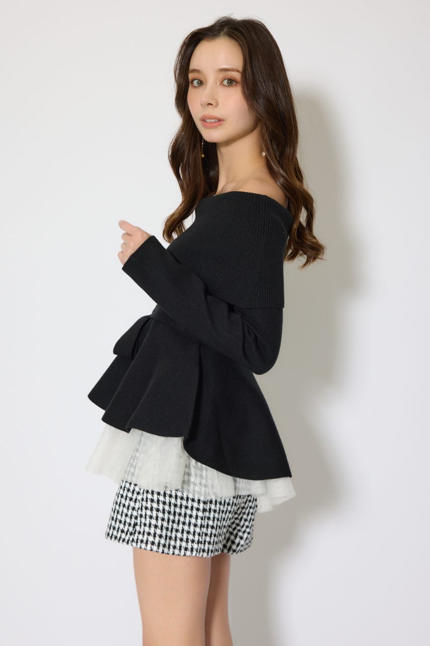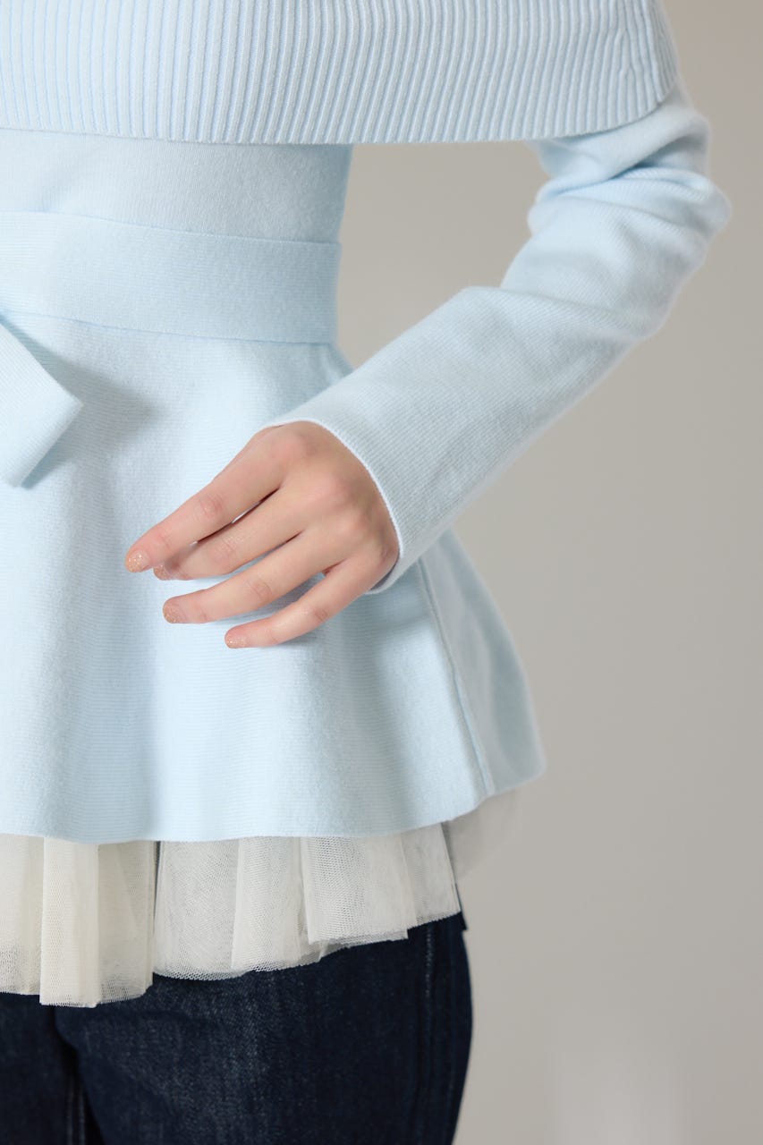 ※お届け時期:2026年1月上旬以降 【たっぷりチュールが裾から覗く華やかなペプラムニットTOPS】