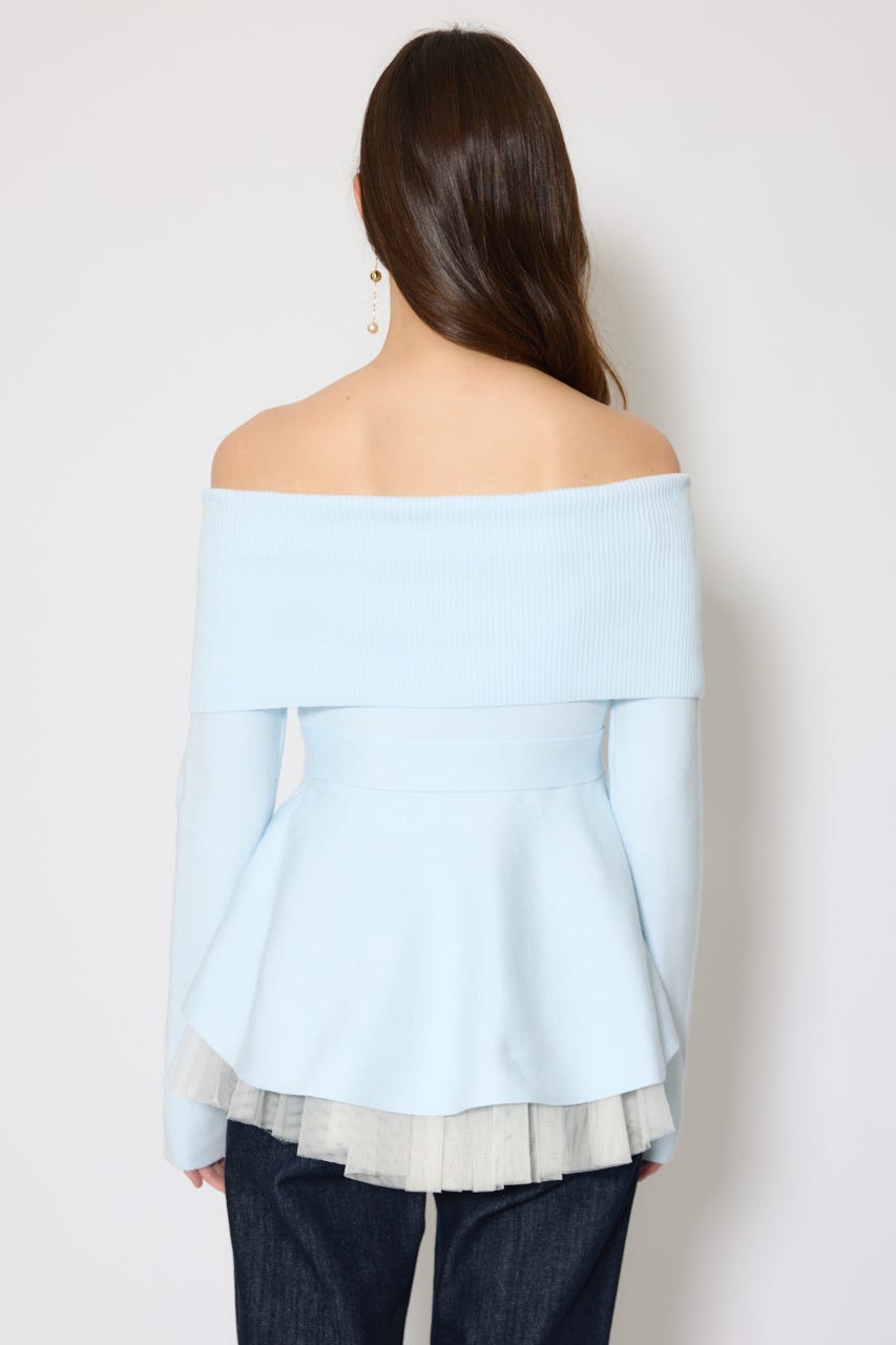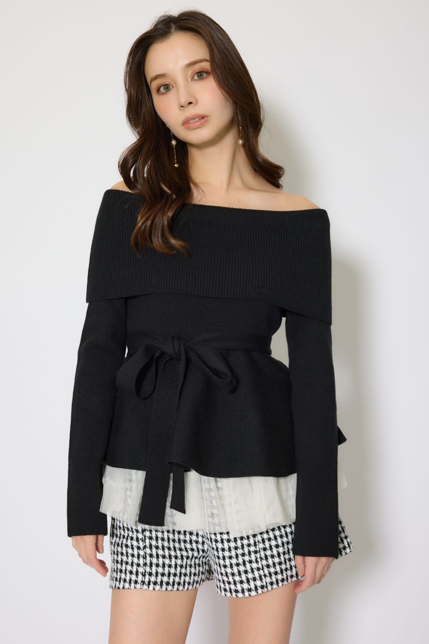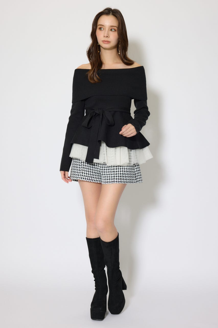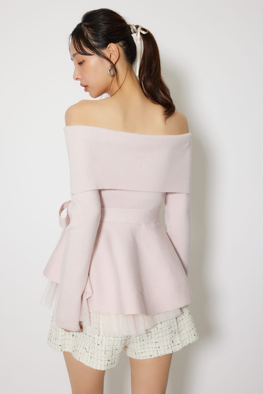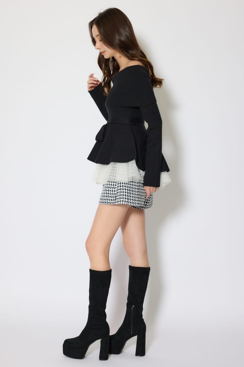 ※お届け時期:2026年1月上旬以降 【たっぷりチュールが裾から覗く華やかなペプラムニットTOPS】