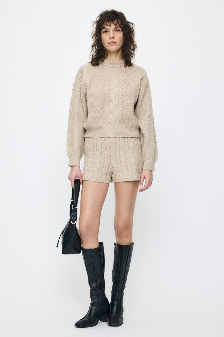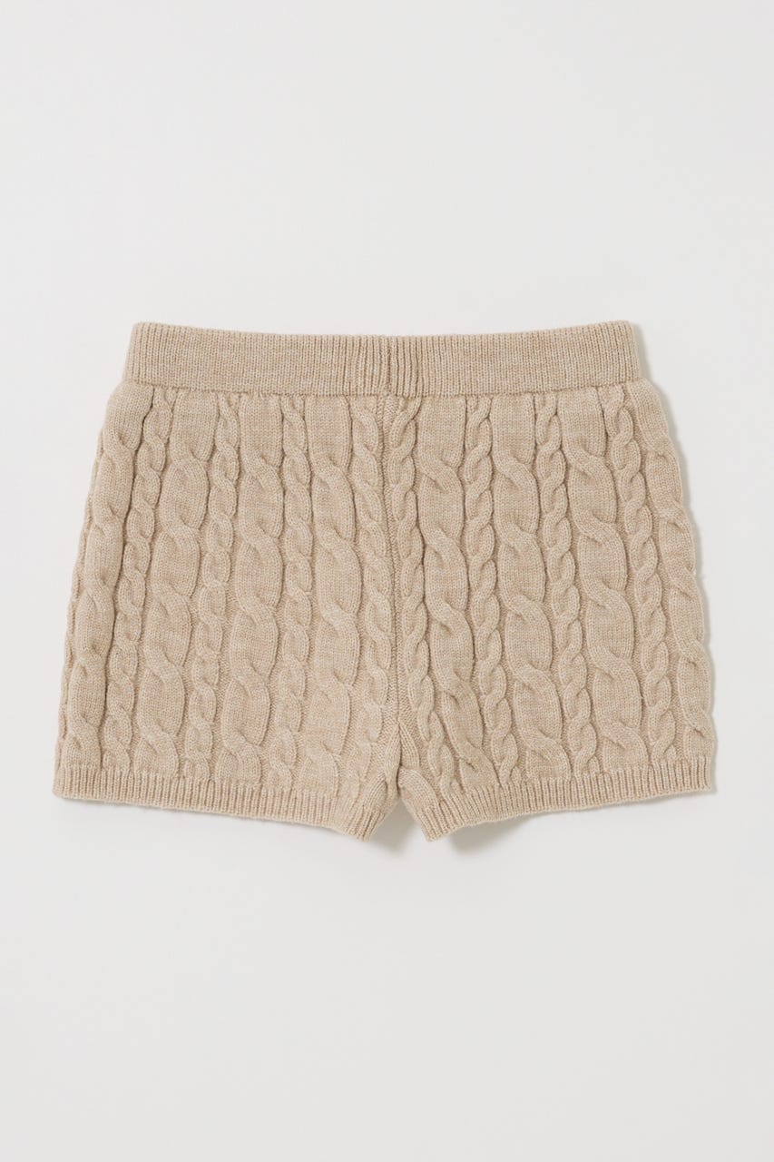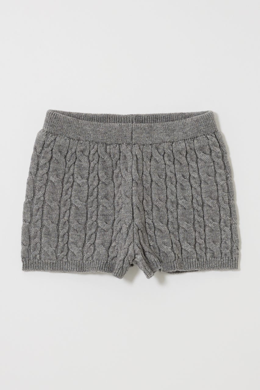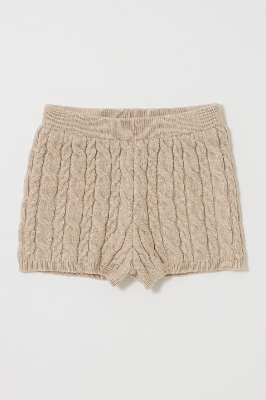 程よく柔らかい糸で編み上げた、ケーブル編みのニットショーツ。