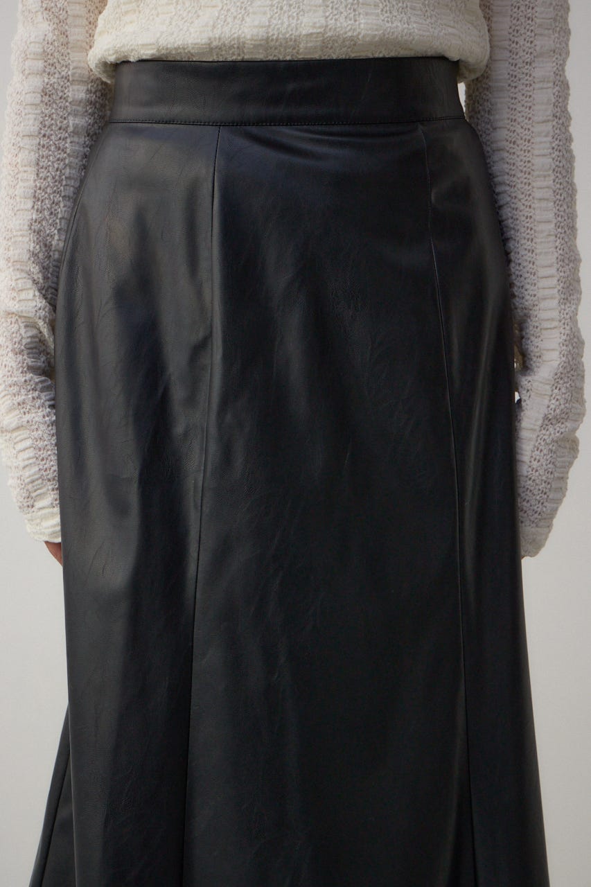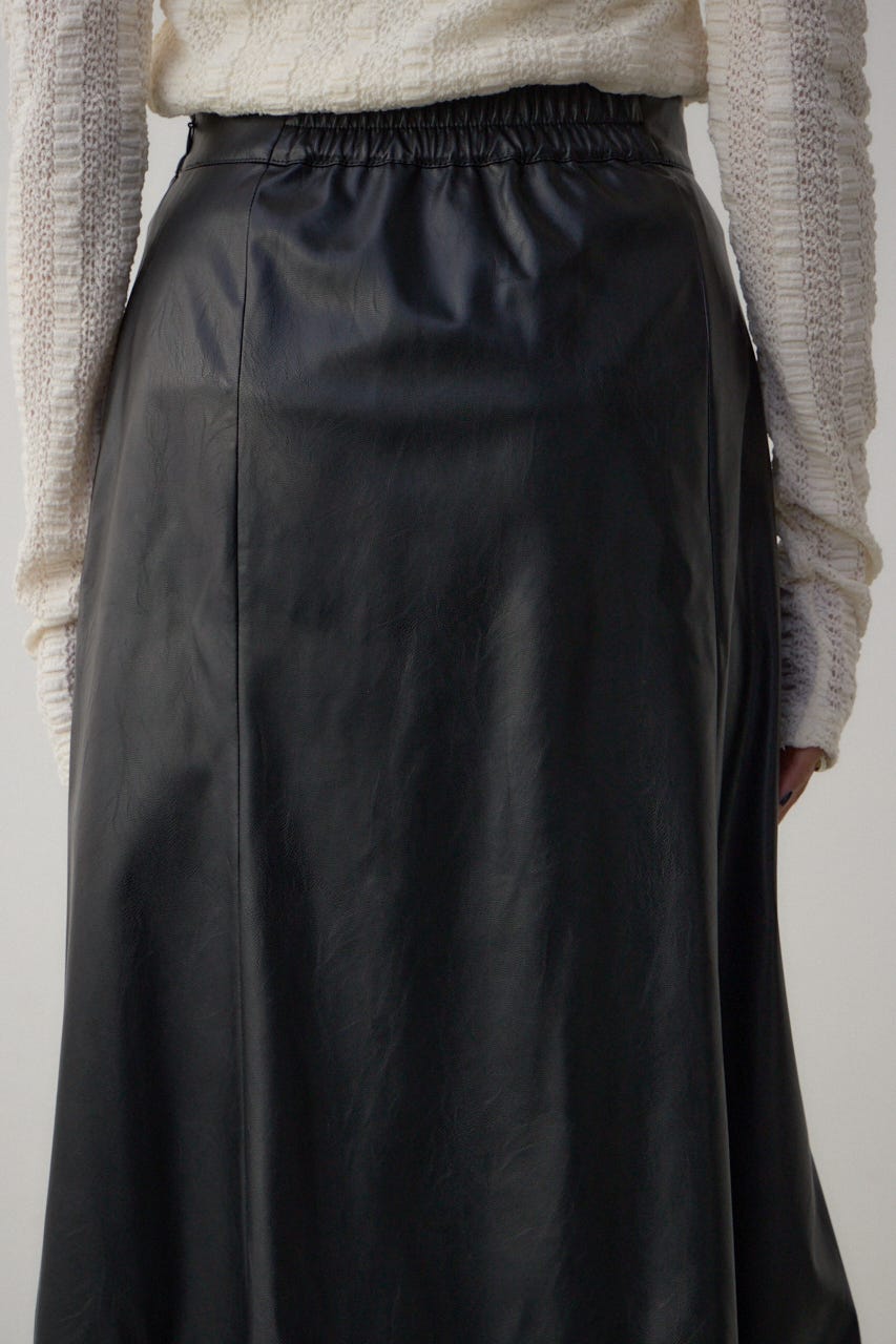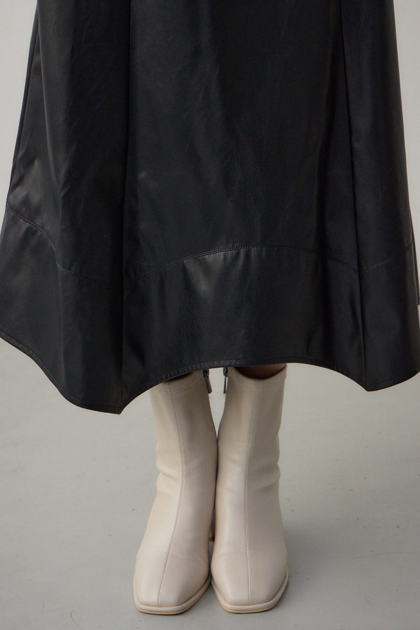 しなやかなフェイクレザーが自然な落ち感を生み、歩くたびに裾がふわりと波打つドラマティックな印象に。