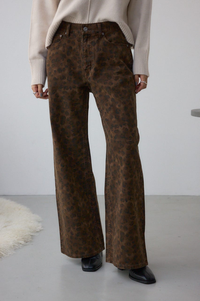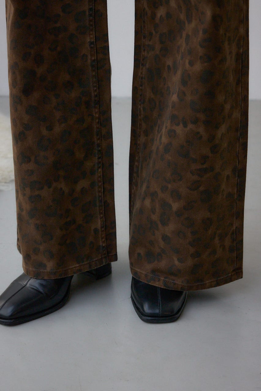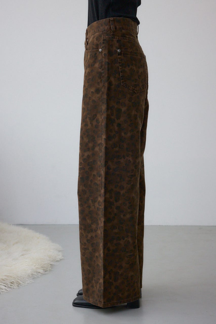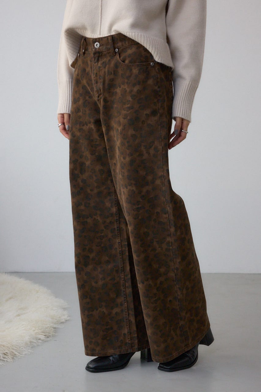 オリジナルのレオパード柄を施したジャストウエストで着用して頂くワイドデニムです。