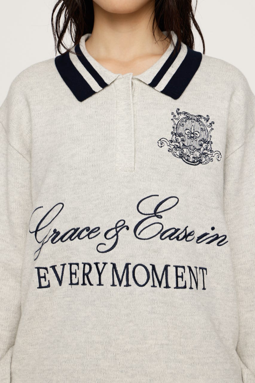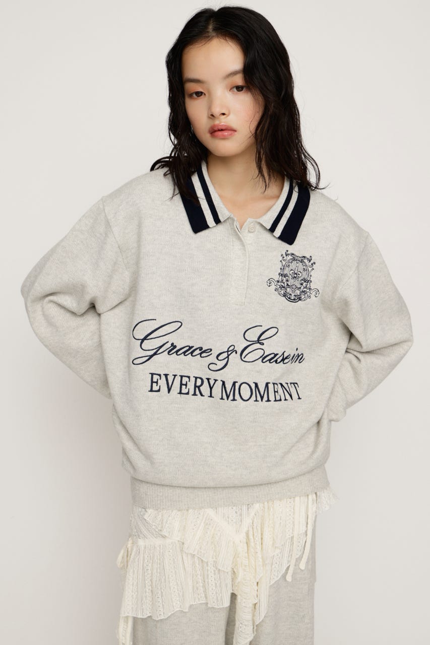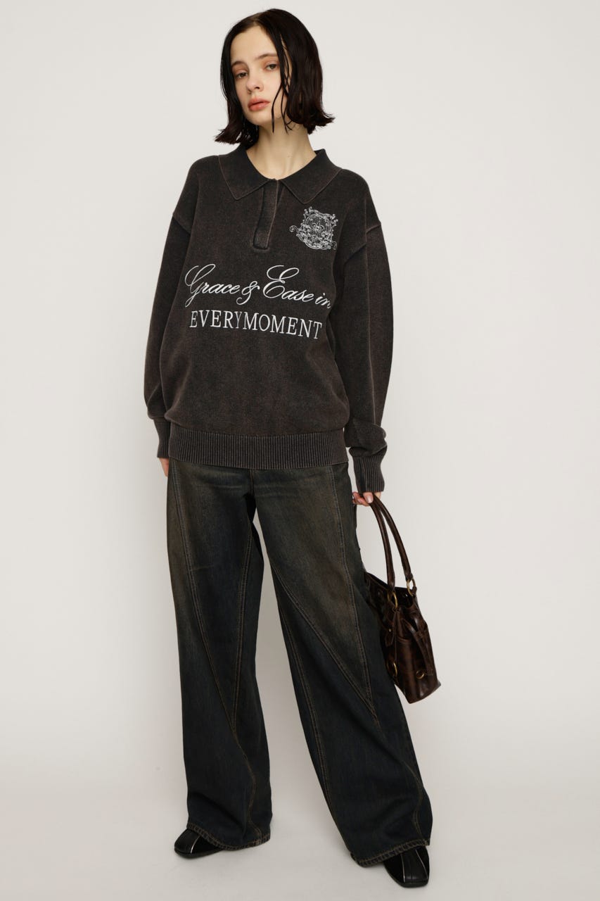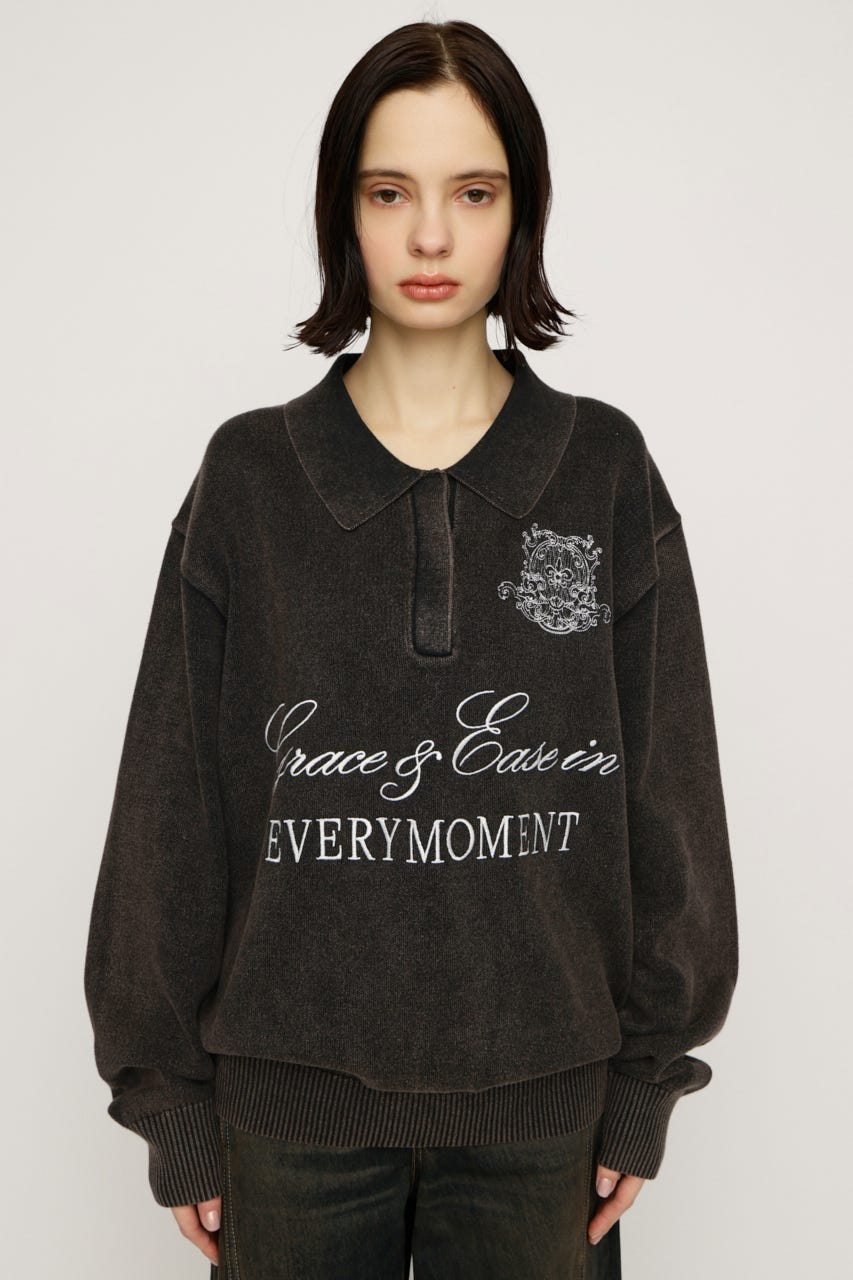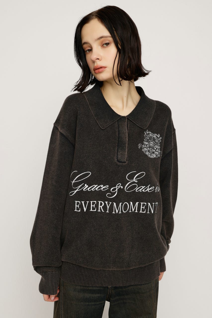 存在感のある刺繍デザインがカジュアルながらも上品見えするニットトップス。
