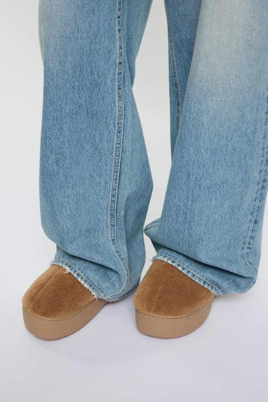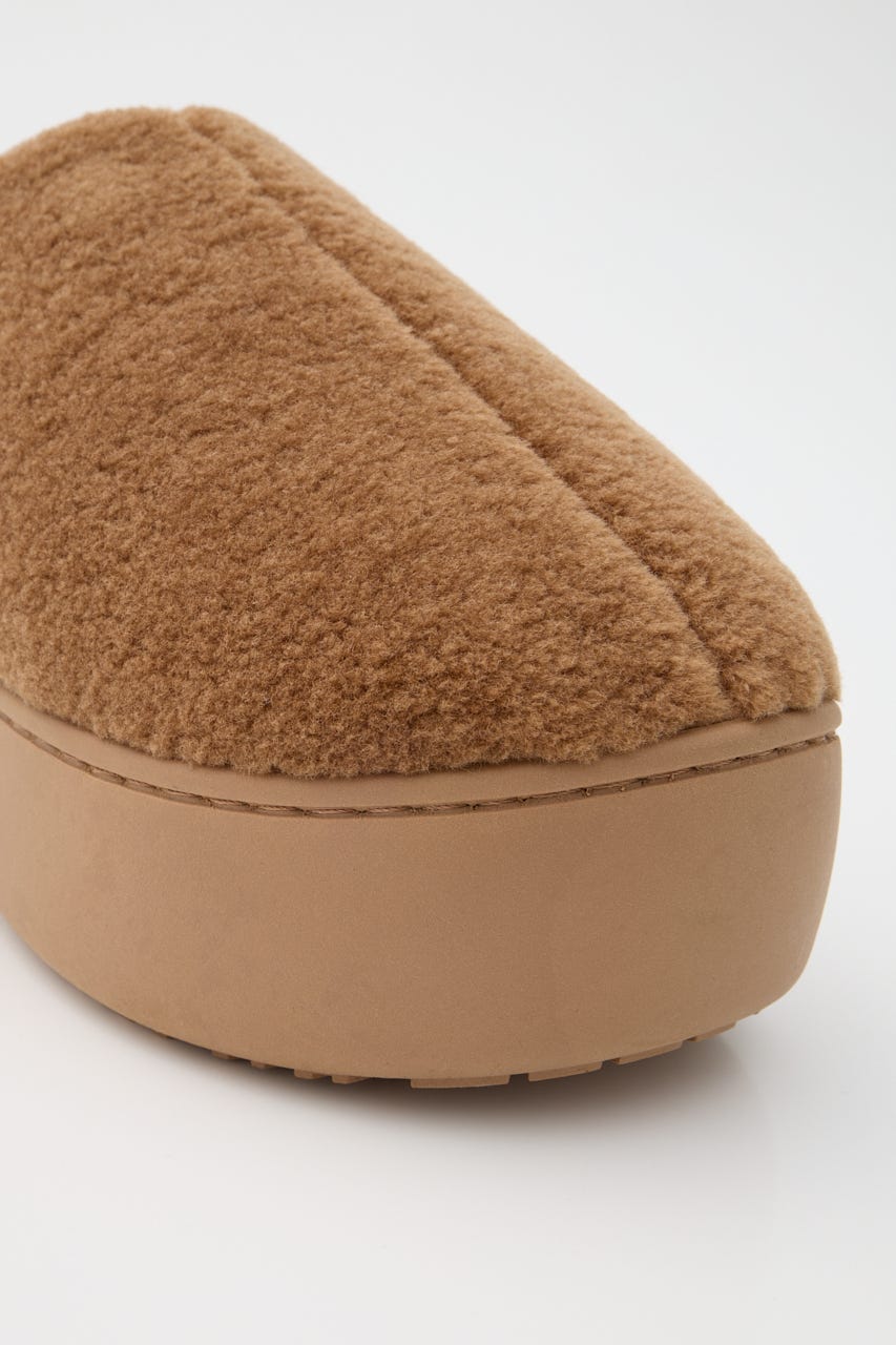 毛足のあるボア素材を使用し、温かみのあるカラーとボリューム感のあるソールで、履くだけでスタイリングのポイントに。