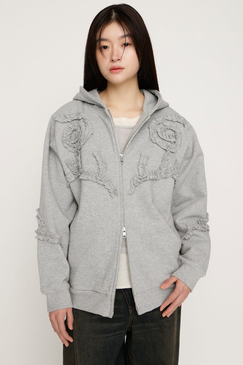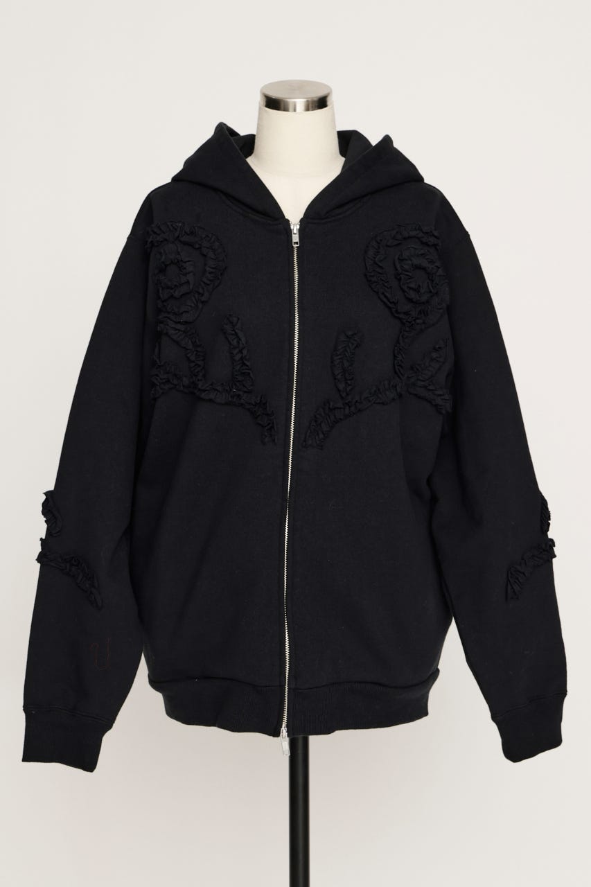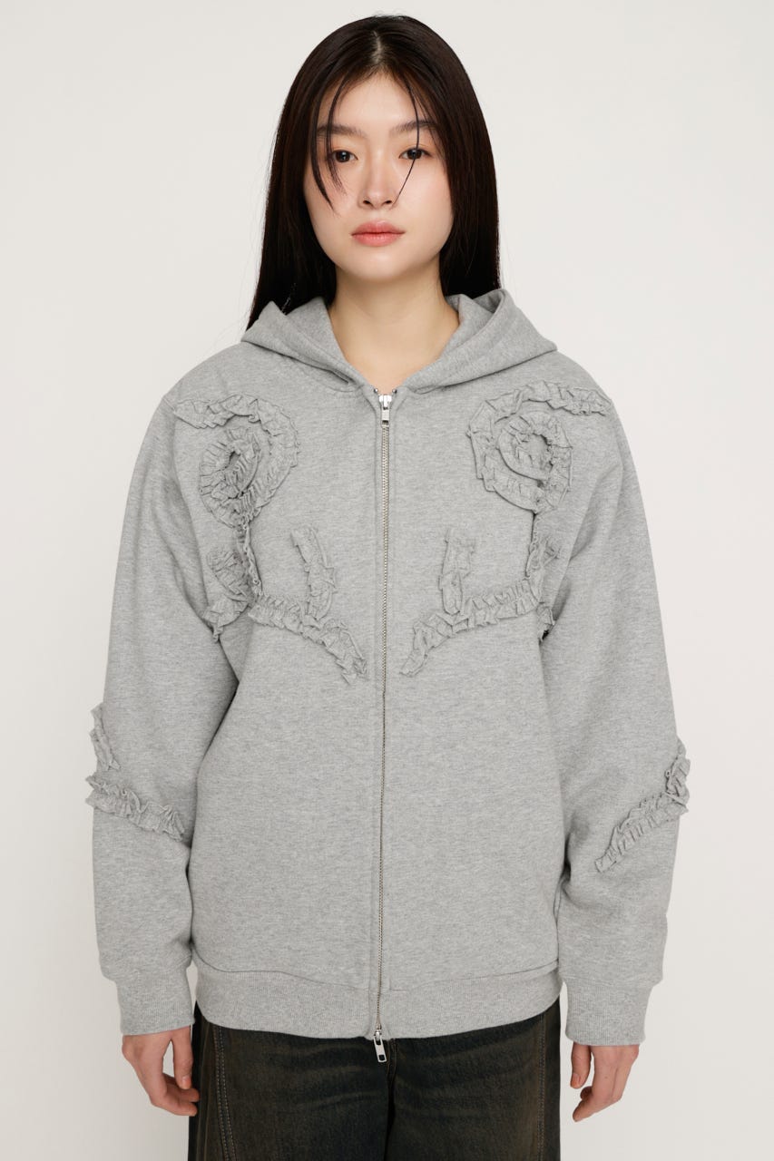 立体的なフリルモチーフを贅沢に散りばめたジップフーディー。
