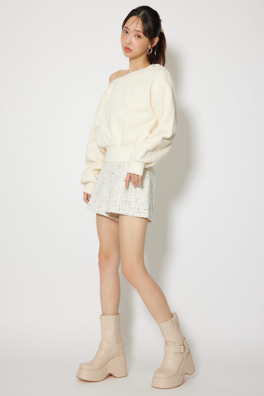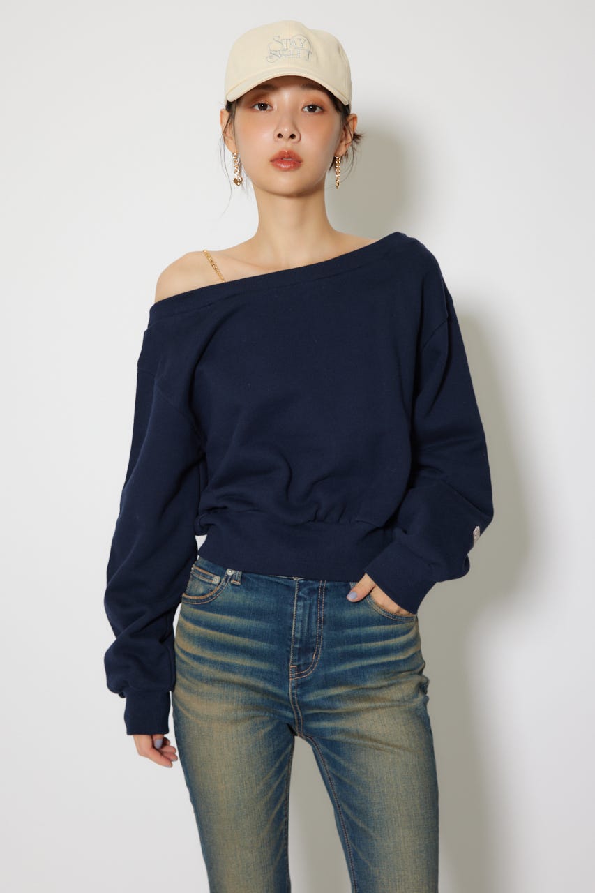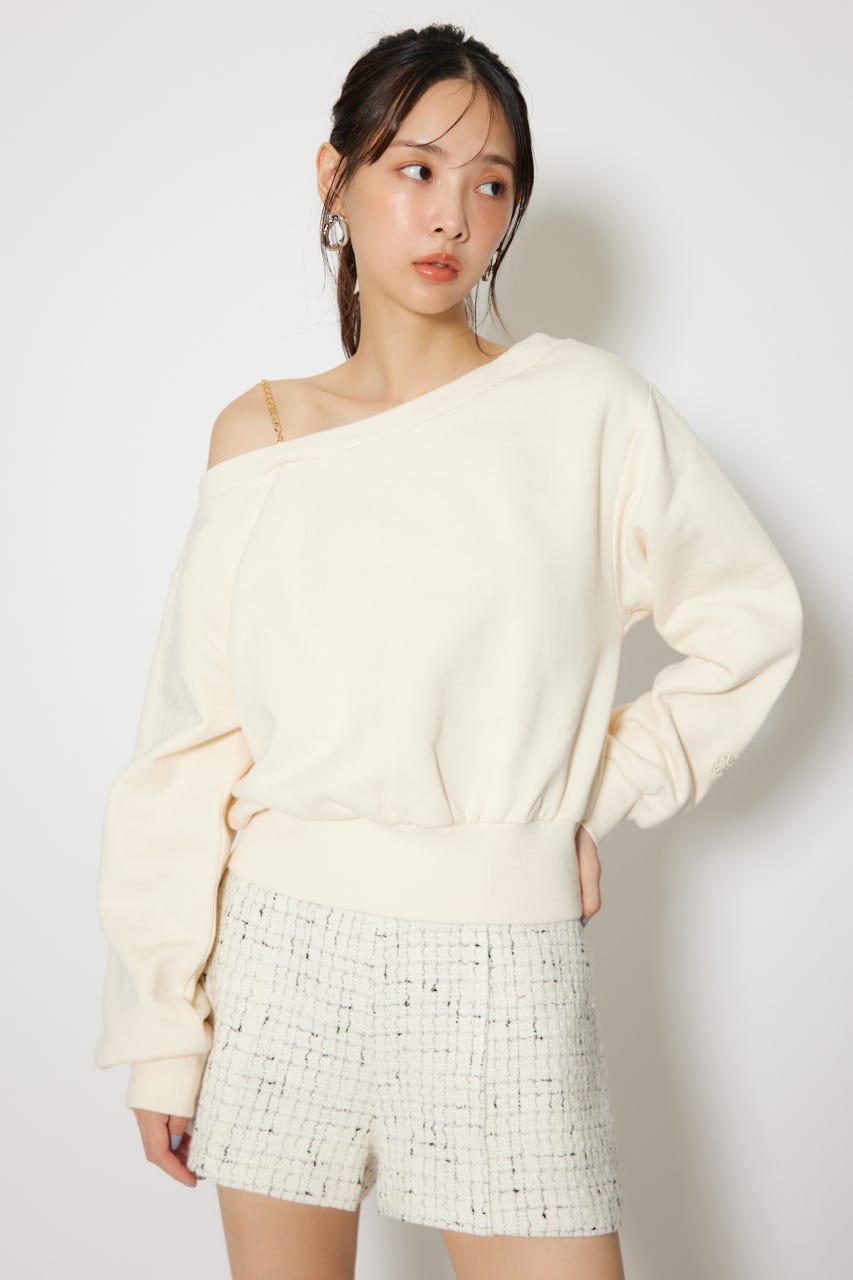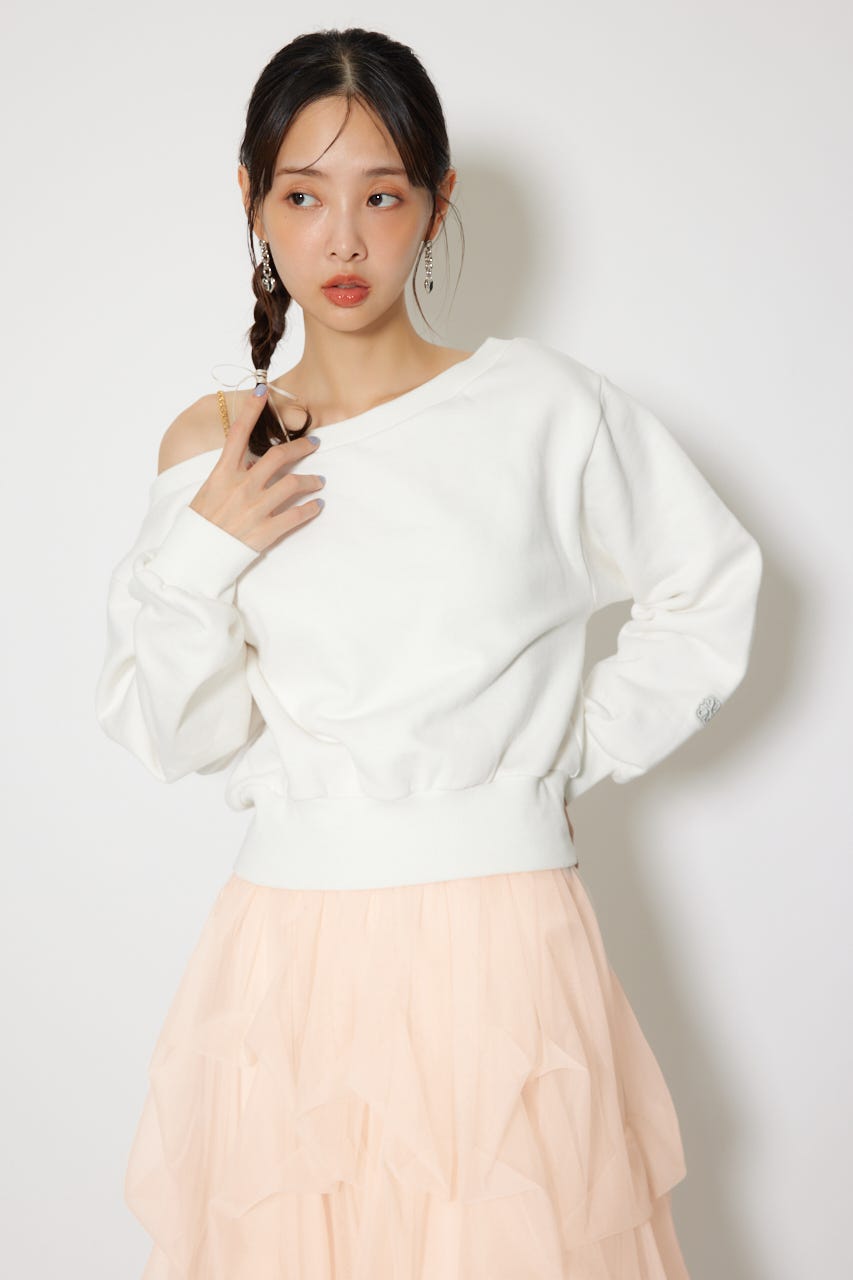 ワンショルダーボリュームスウェットトップス
