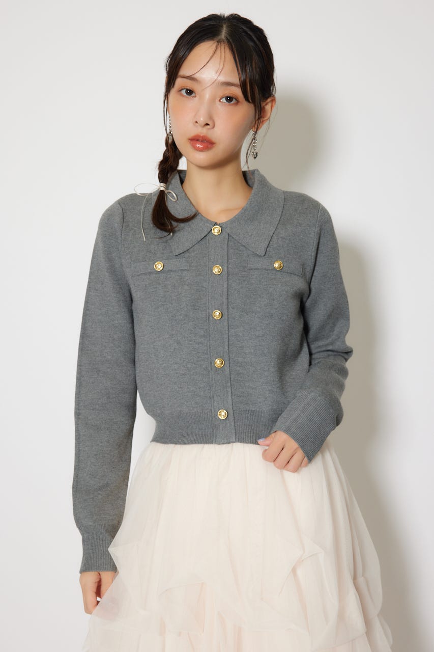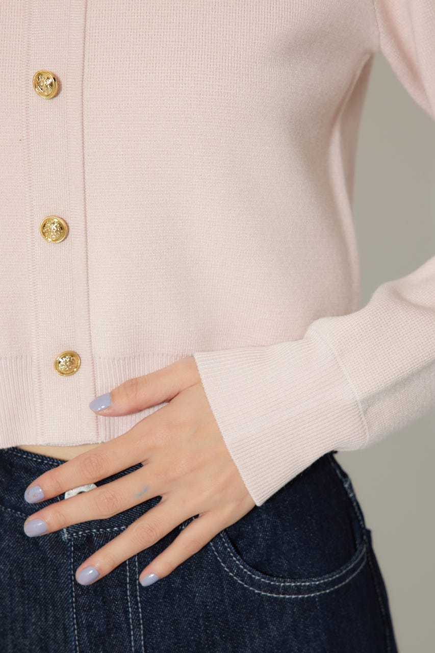 ※お届け時期:2026年1月上旬以降 【夏に大人気だったアイテムが長袖になって登場!ゴールド釦がアクセントになる綺麗めニットトップス】