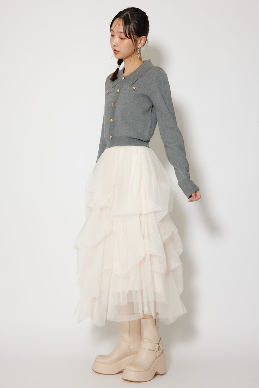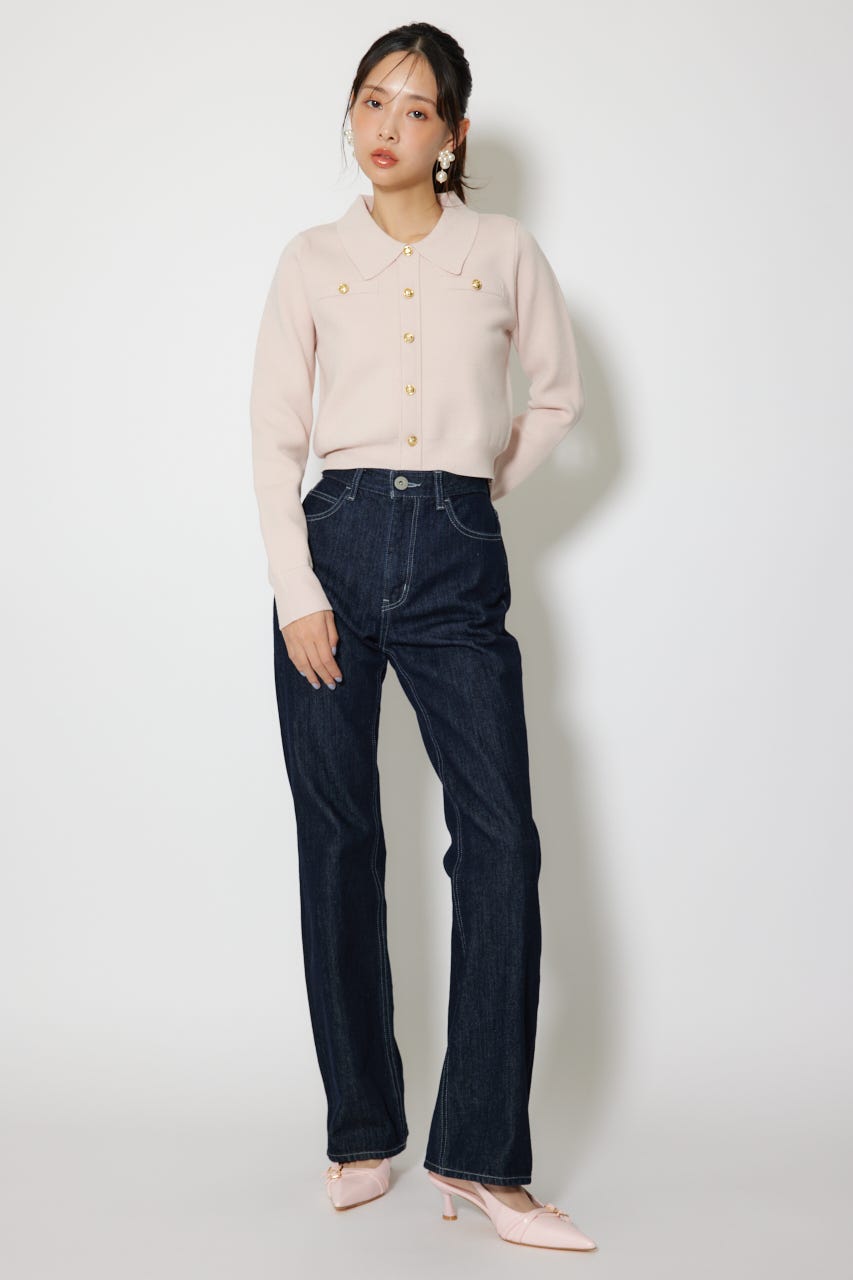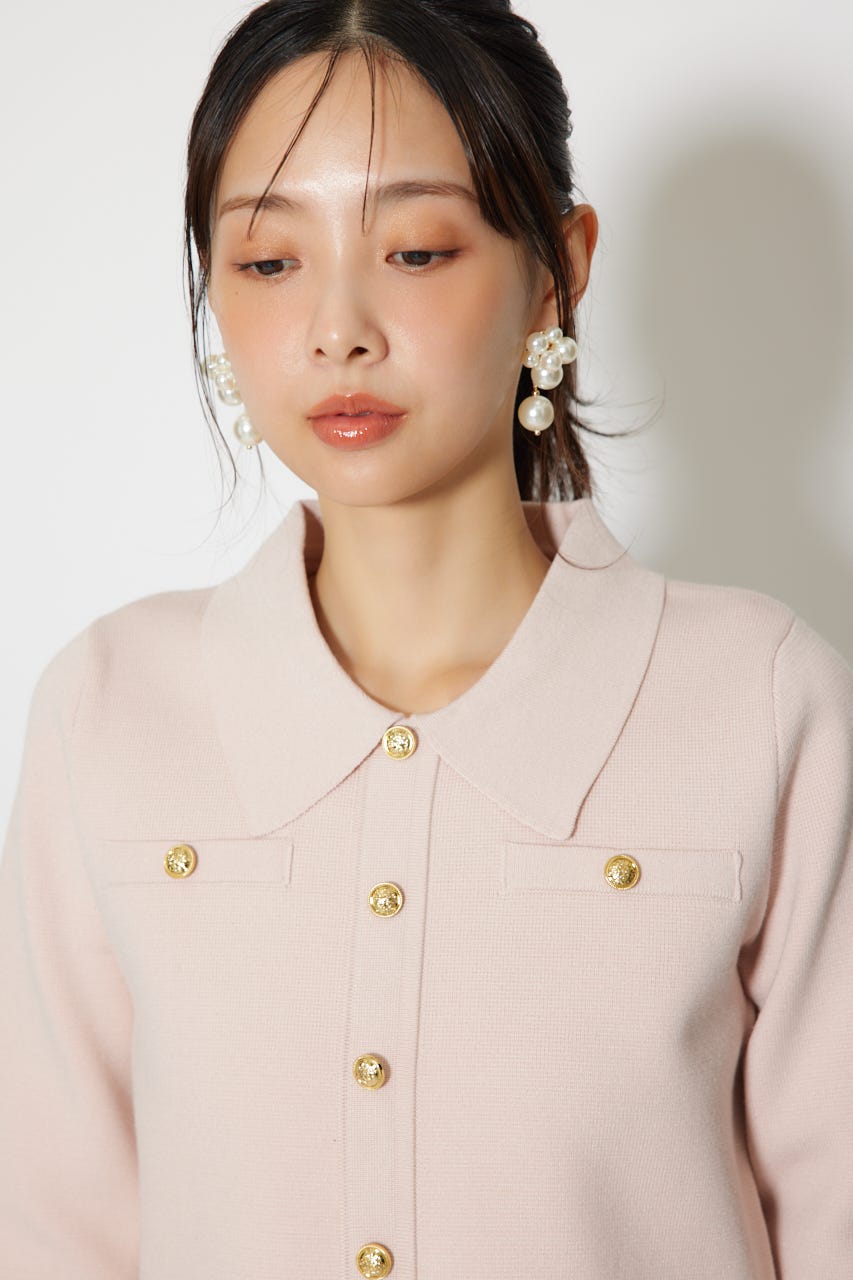 立体感ある胸元のポケットディテールと華やかなゴールド釦は一枚で着映えするデザインです。