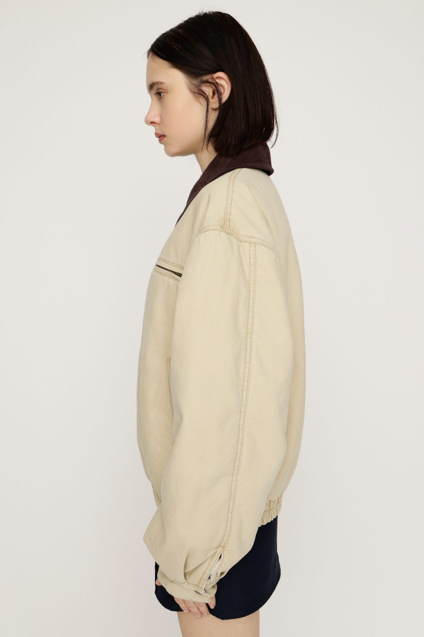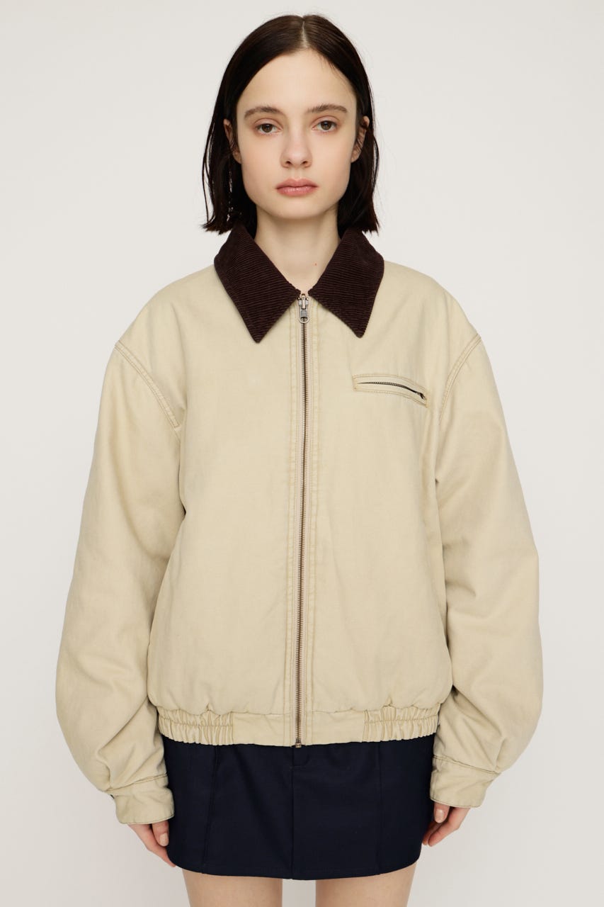 襟にはコーデュロイ素材を使用し、顔周りに抜け感をプラスしています。
