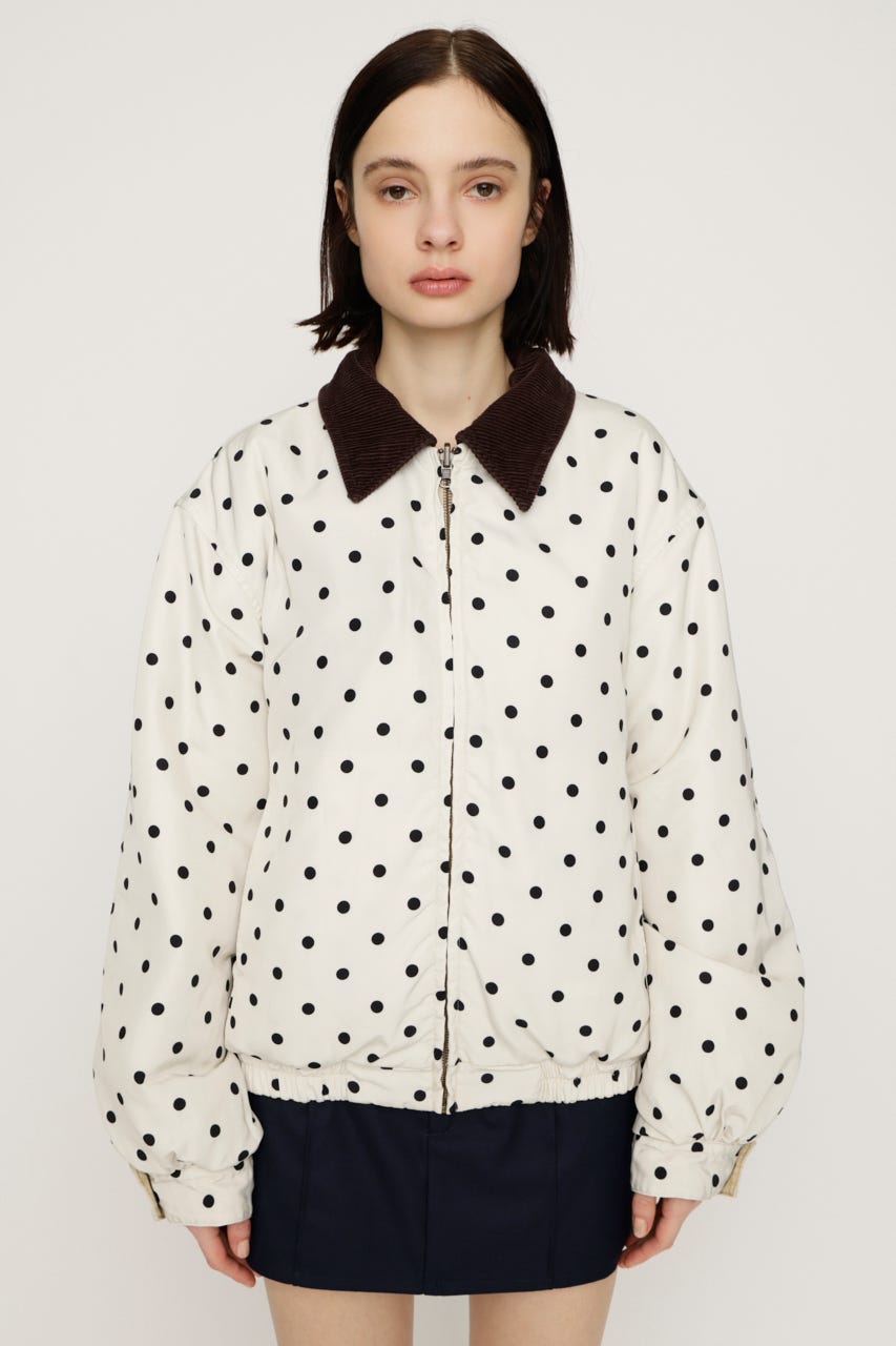 ツイル素材の時は、フロントを閉じてドット柄を主役にしたスタイリングがおすすめです。