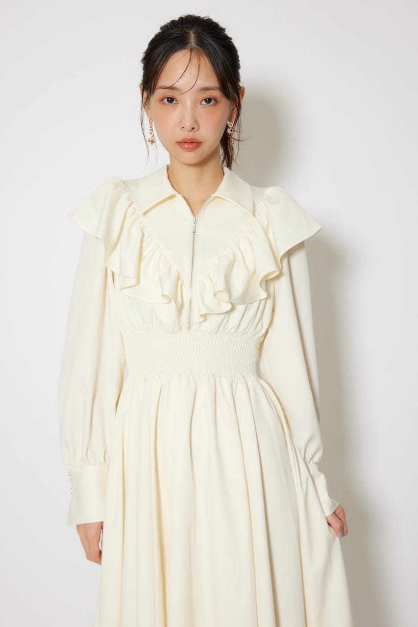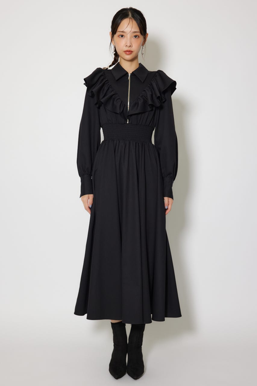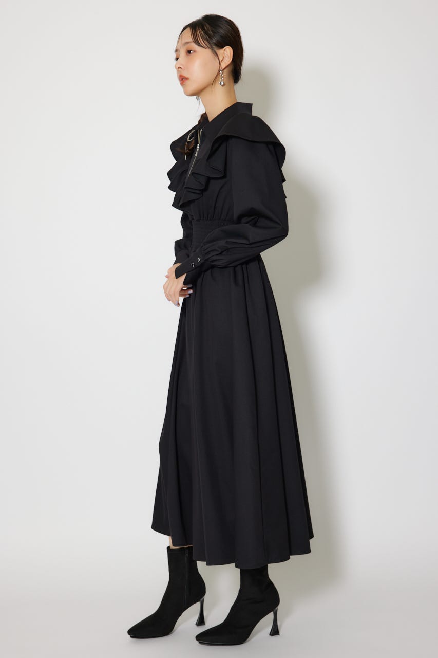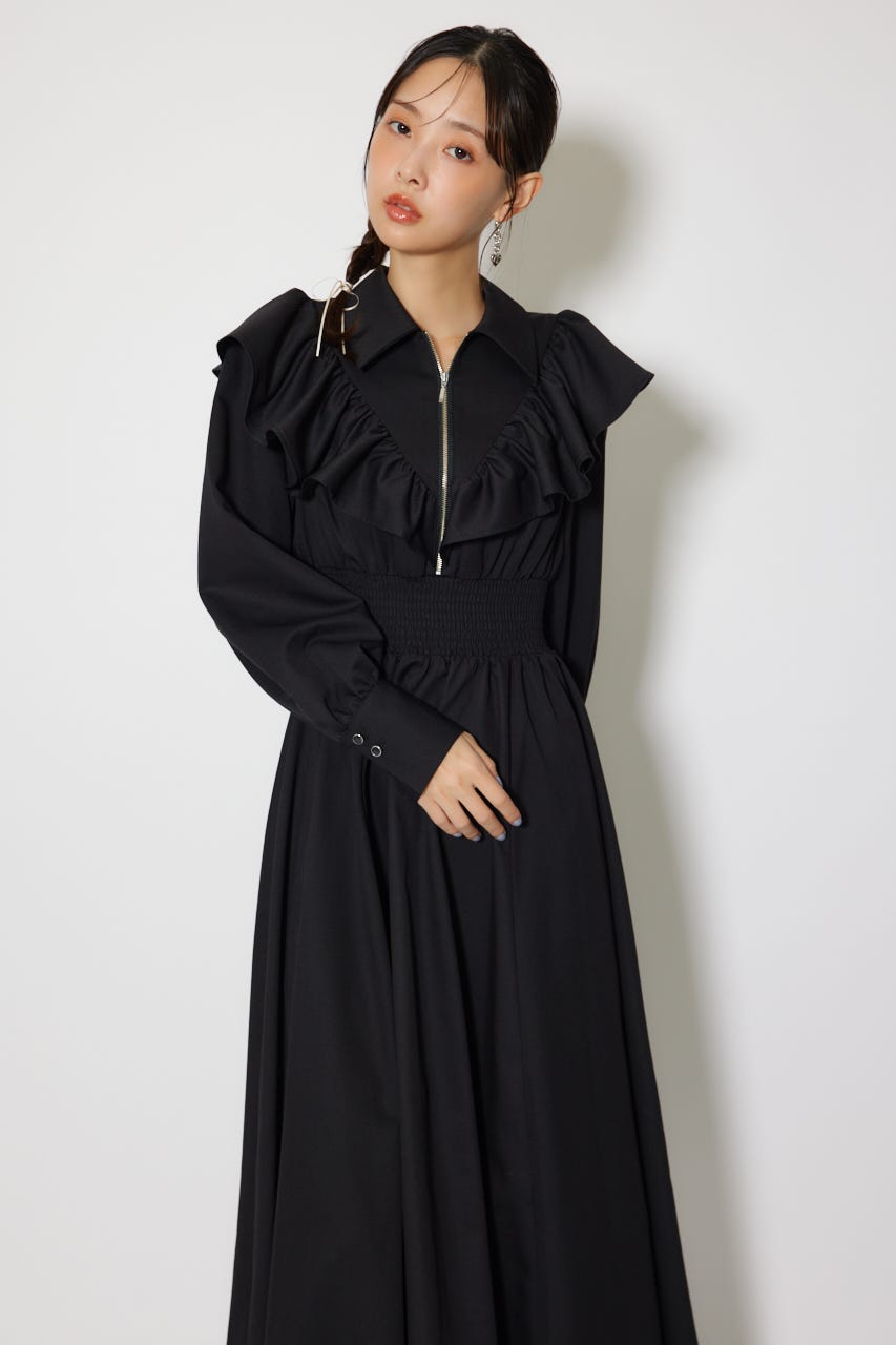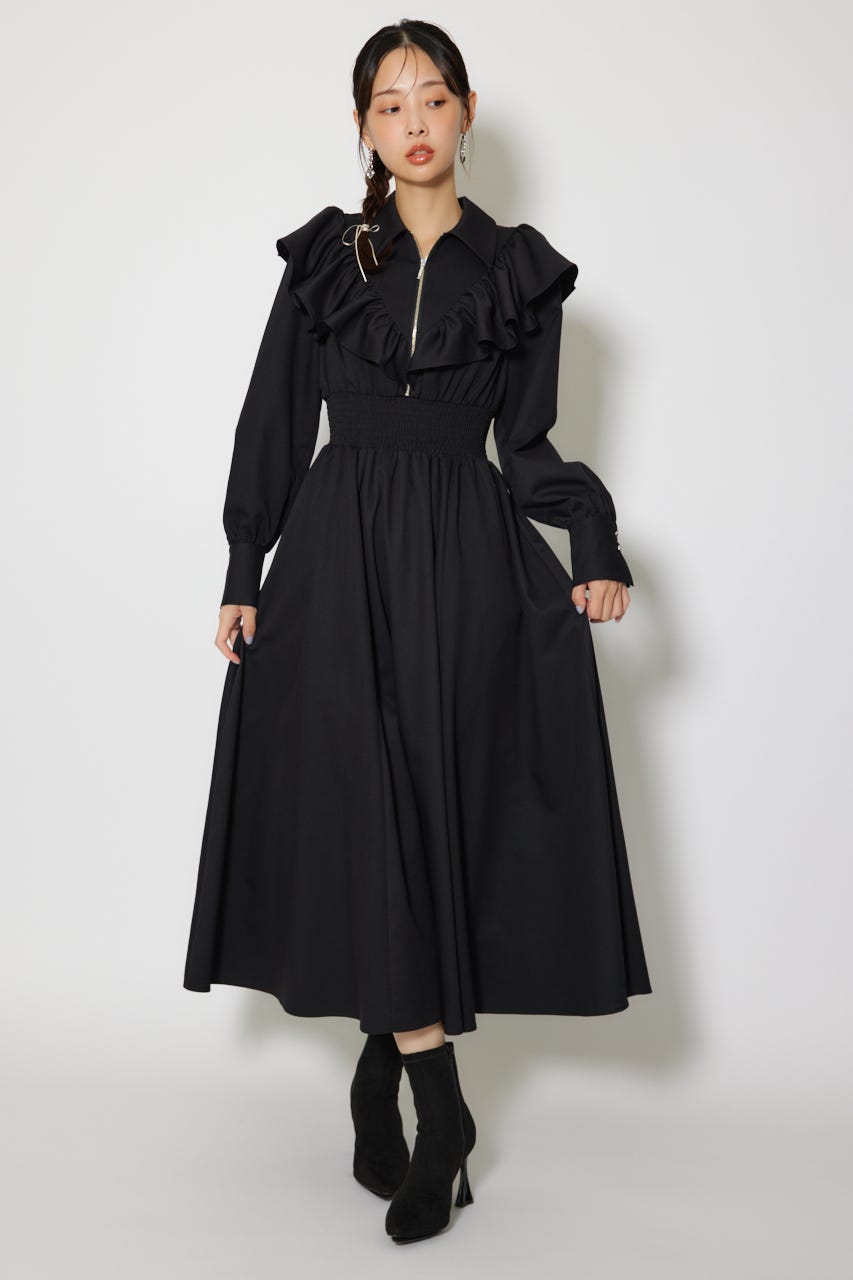【フロントZIPとフリルデザインでクールさとフェミニンが融合されたシャツワンピース】