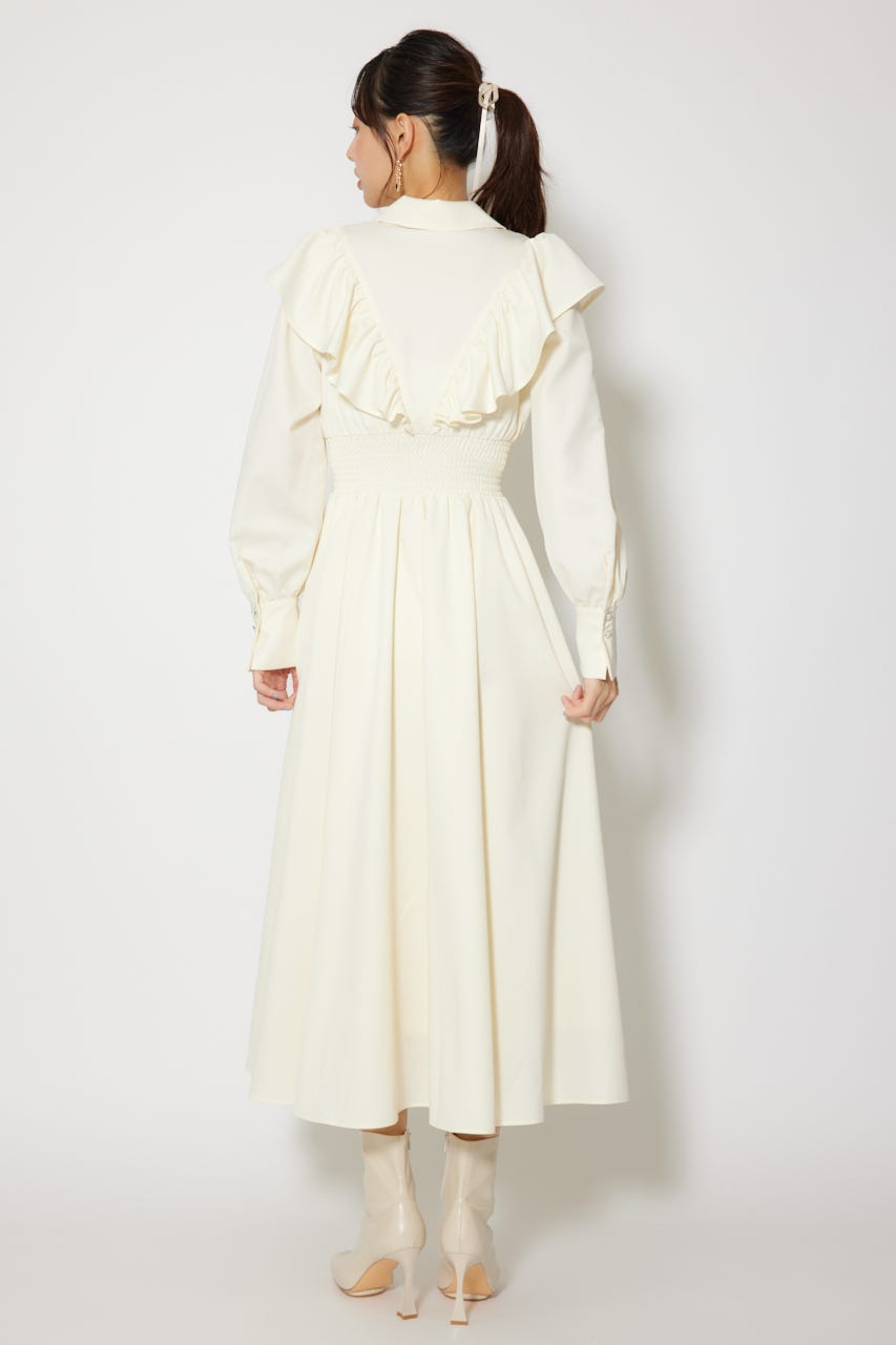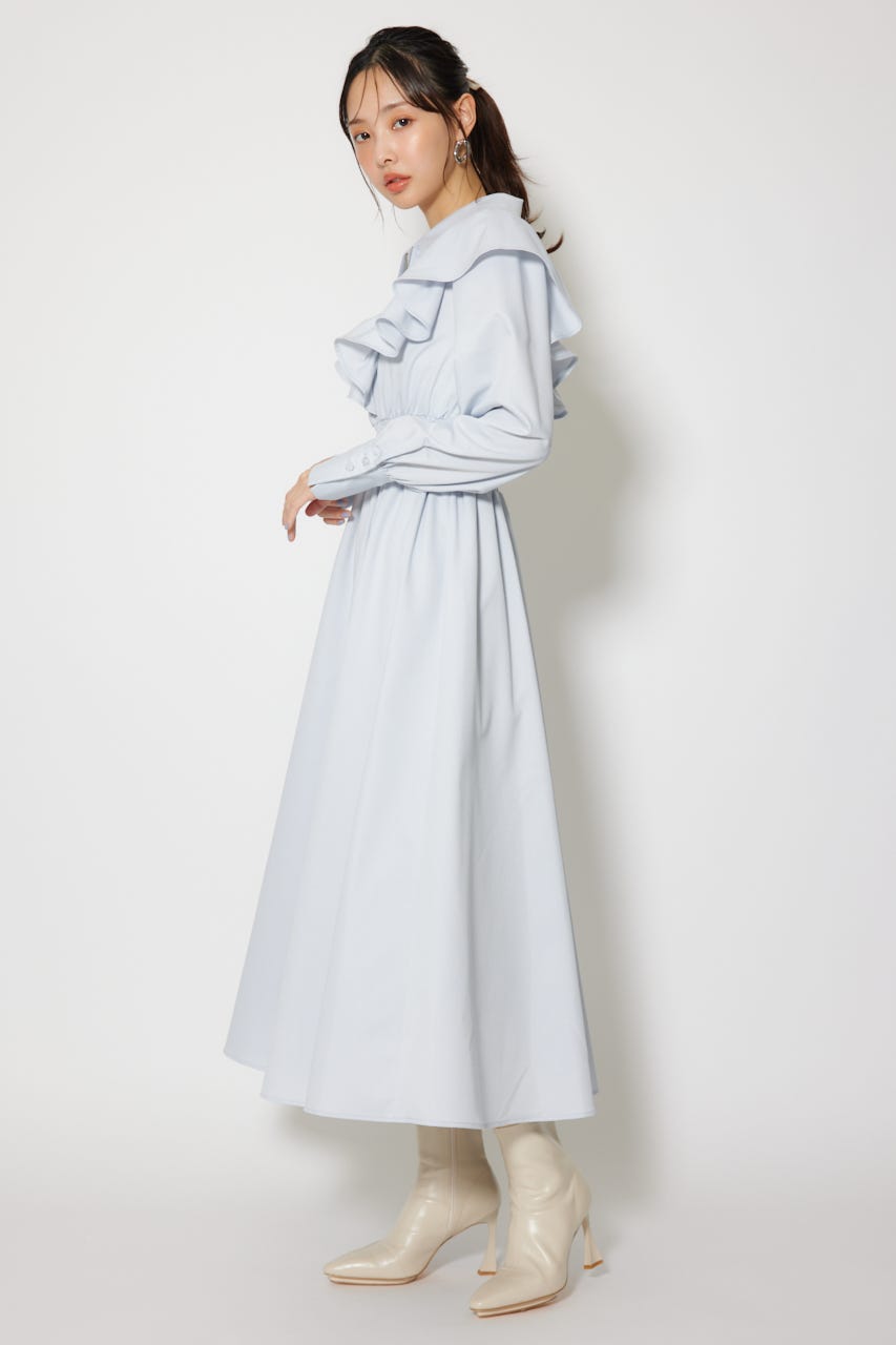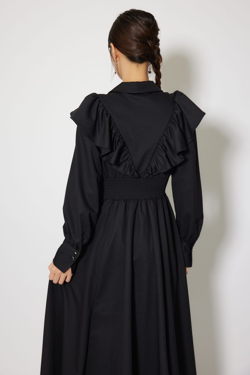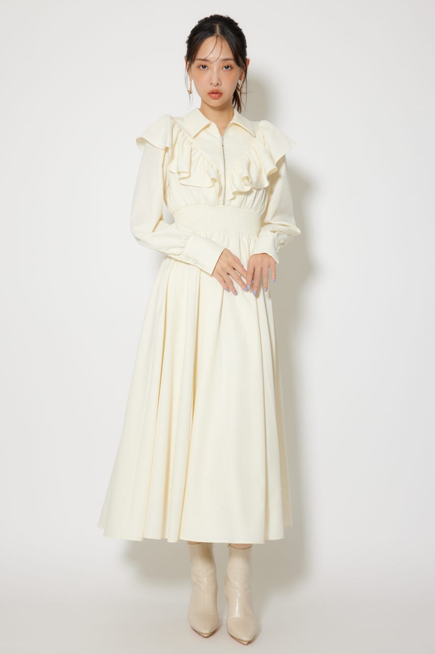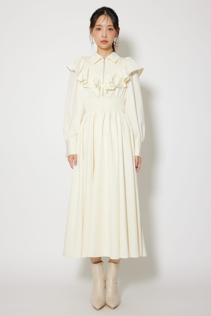 【フロントZIPとフリルデザインでクールさとフェミニンが融合されたシャツワンピース】
