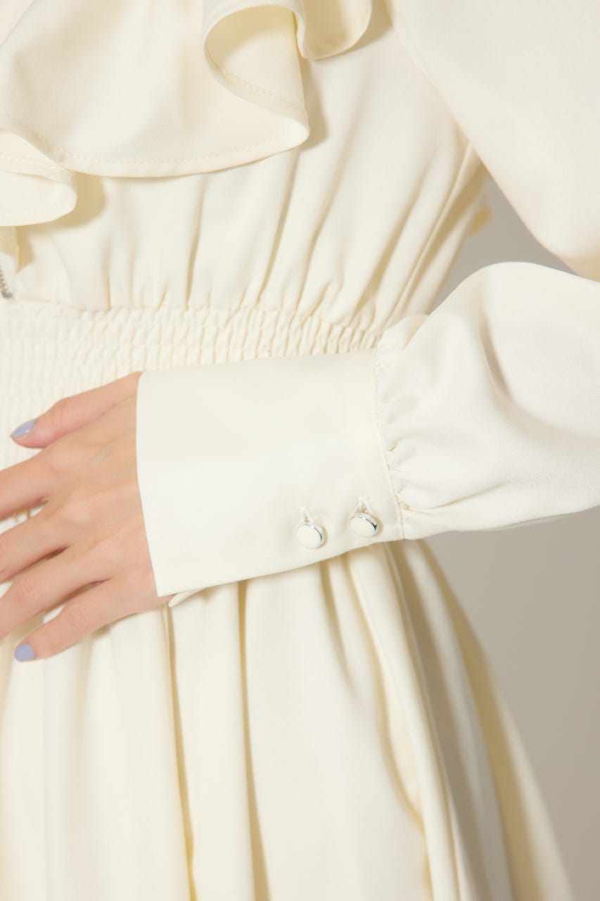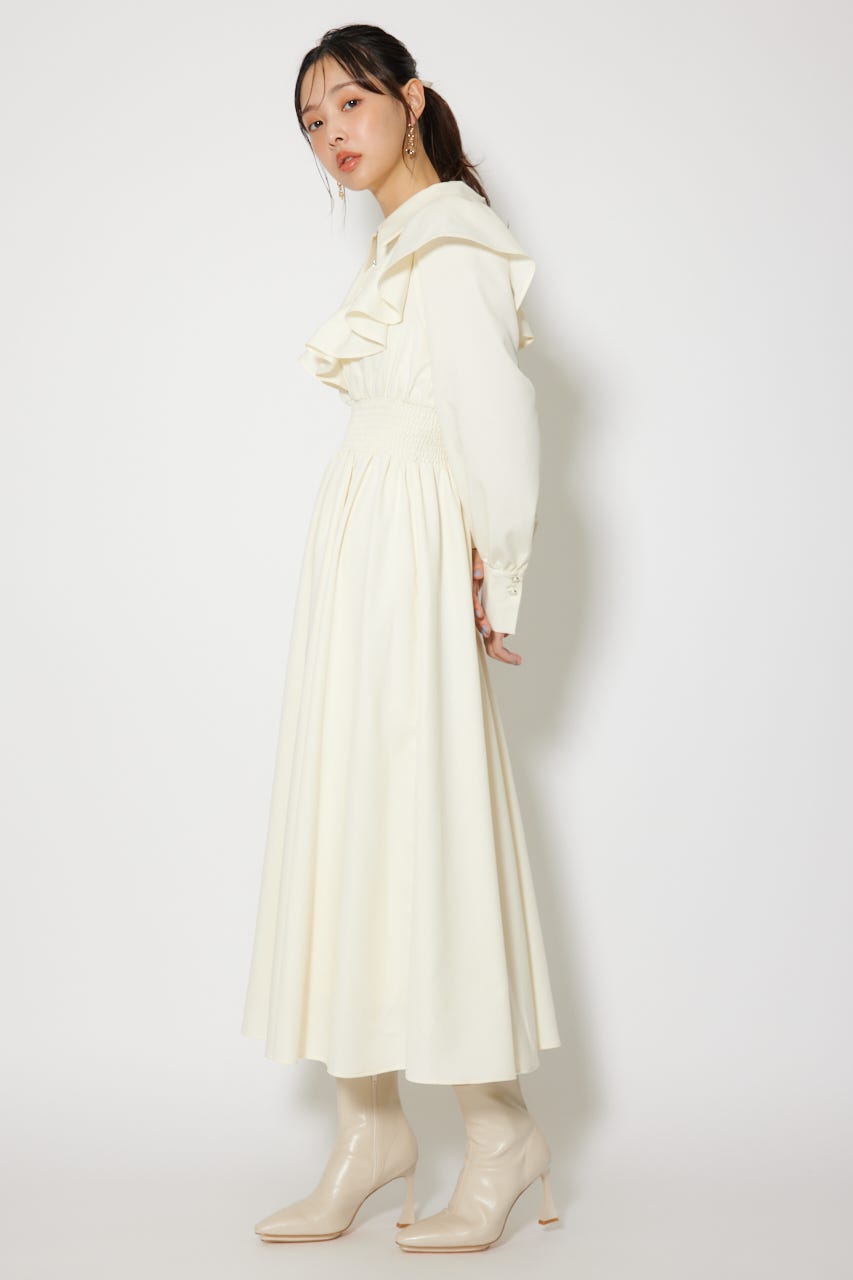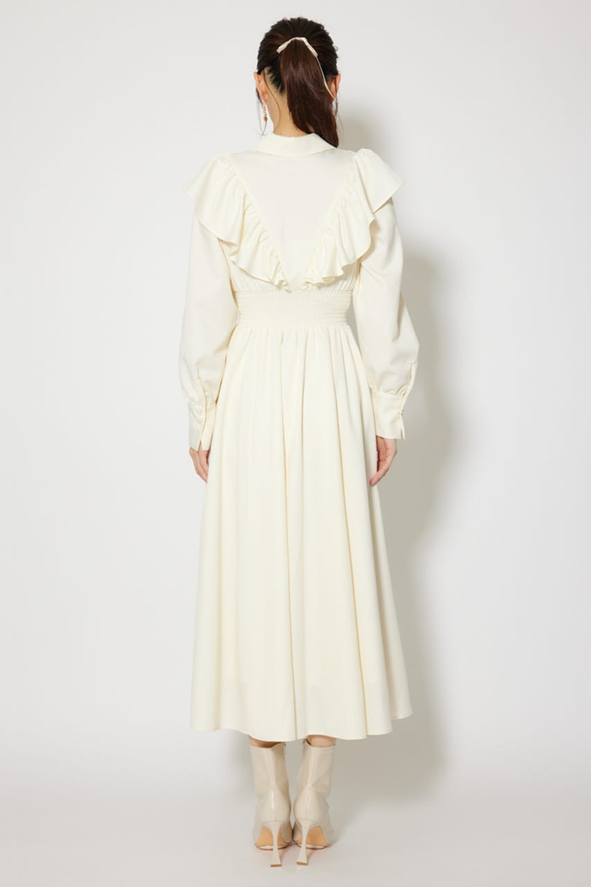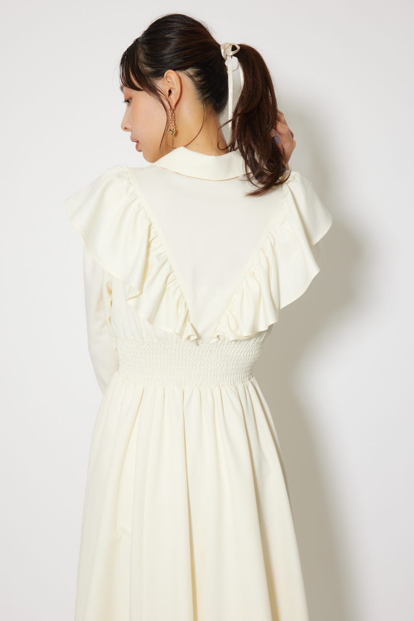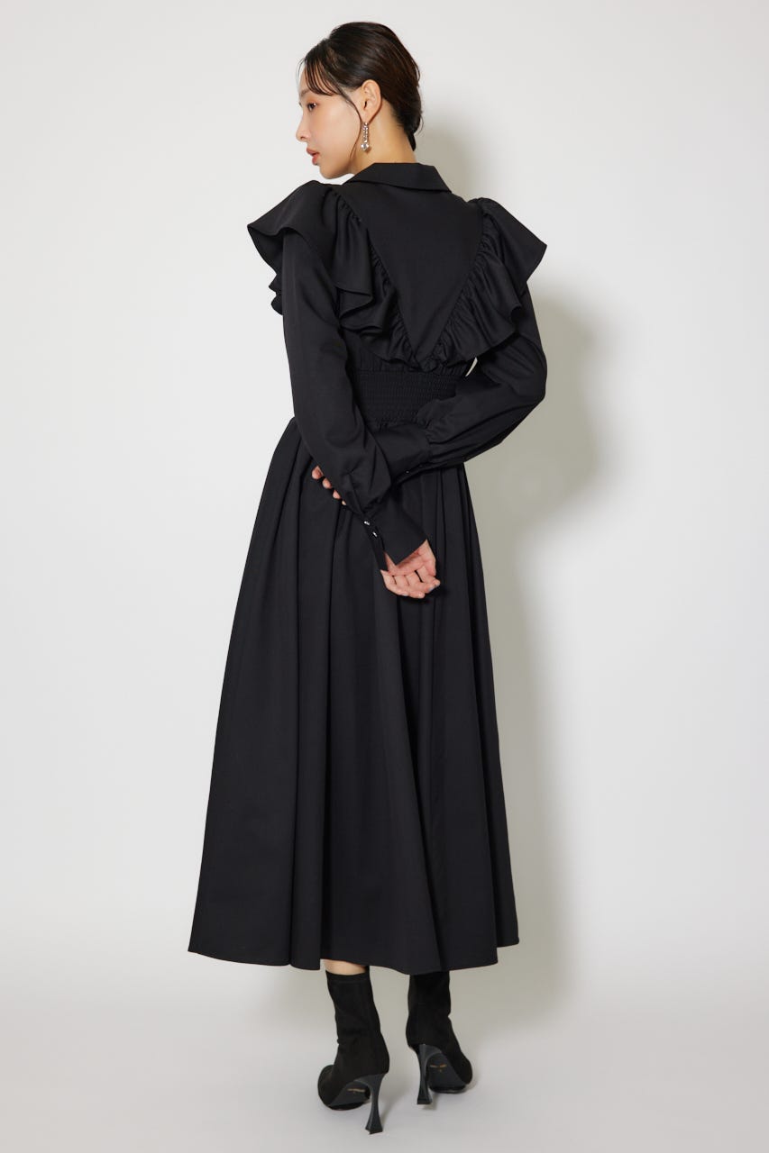 【フロントZIPとフリルデザインでクールさとフェミニンが融合されたシャツワンピース】