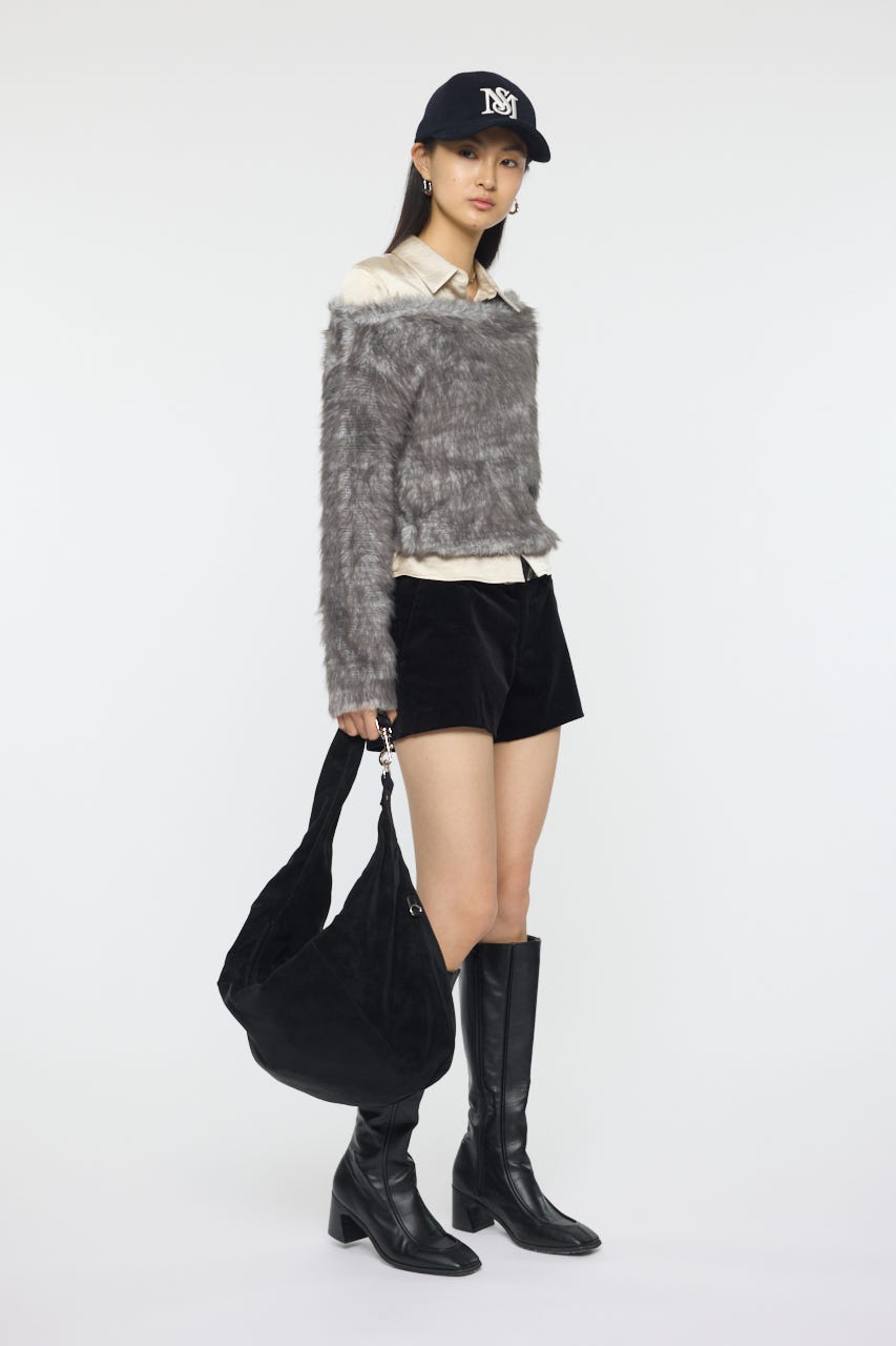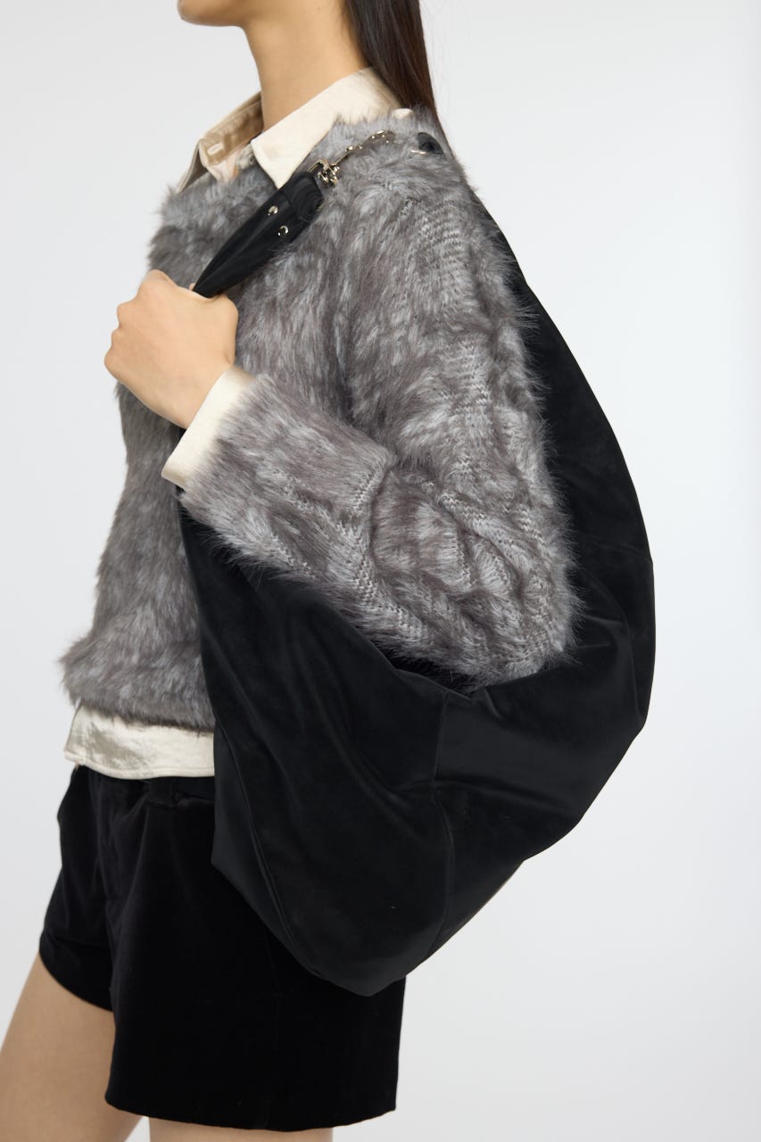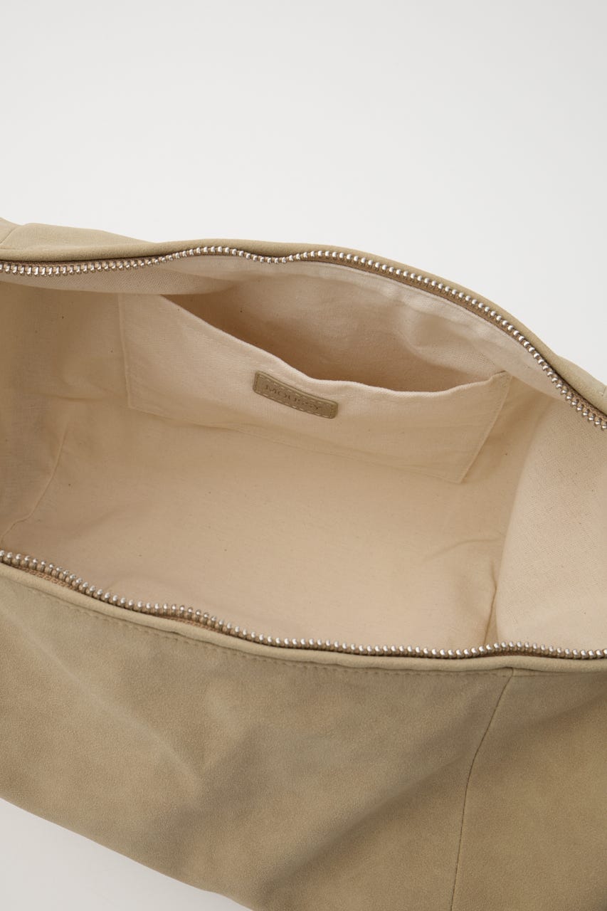 フェイクスエードを使用した、肌触りの良い大きめなバック