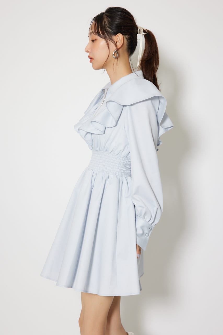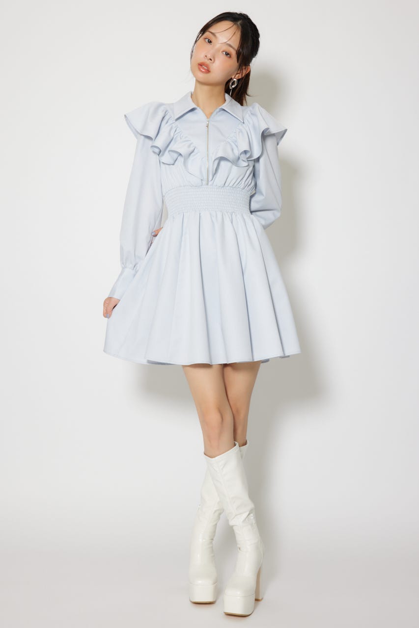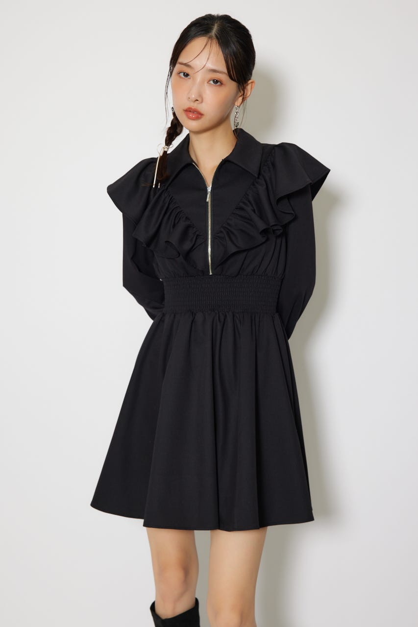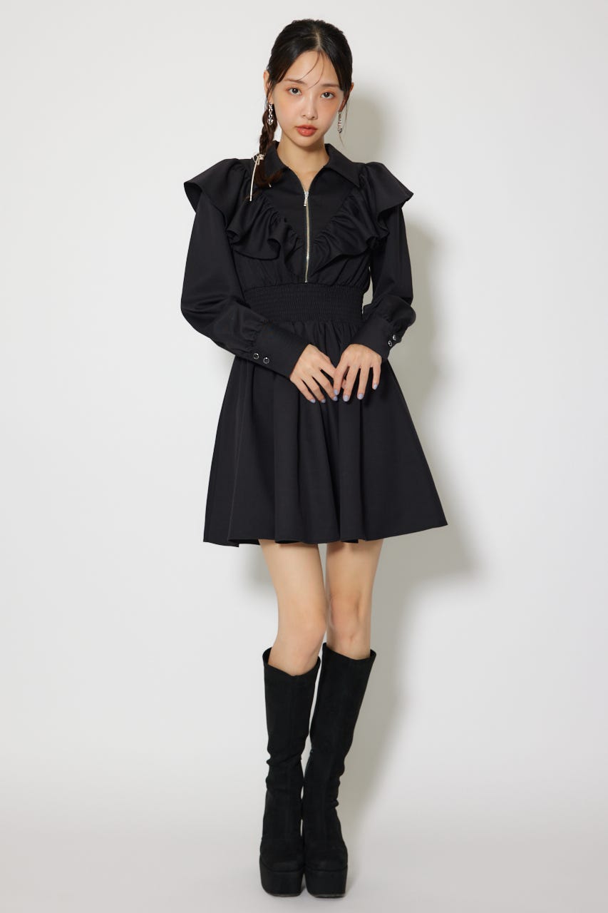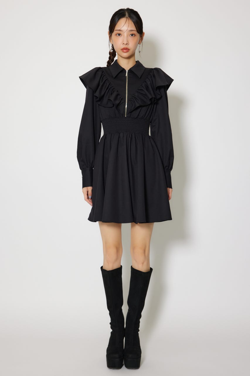 フロントZIPフリルミニシャツワンピース