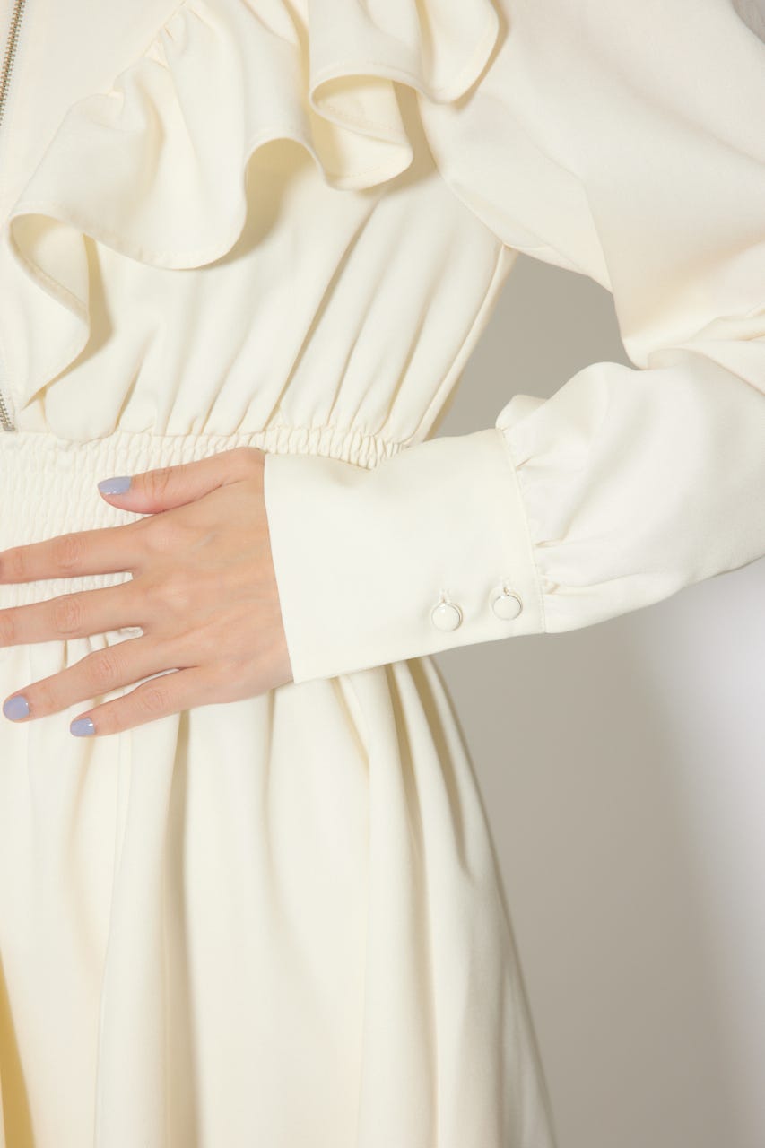 【フロントZIPとフリルデザインでクールさとフェミニンが融合されたシャツワンピース】