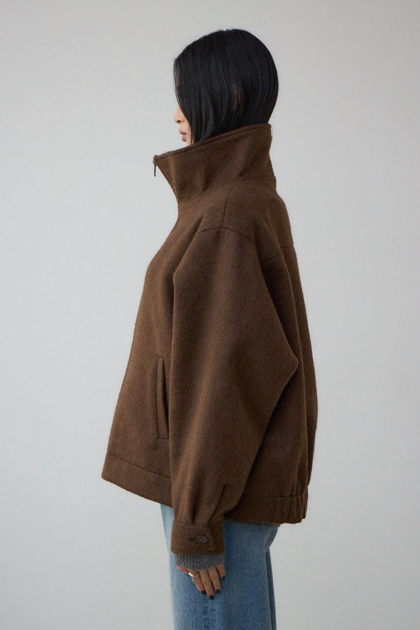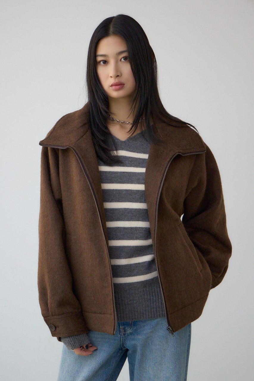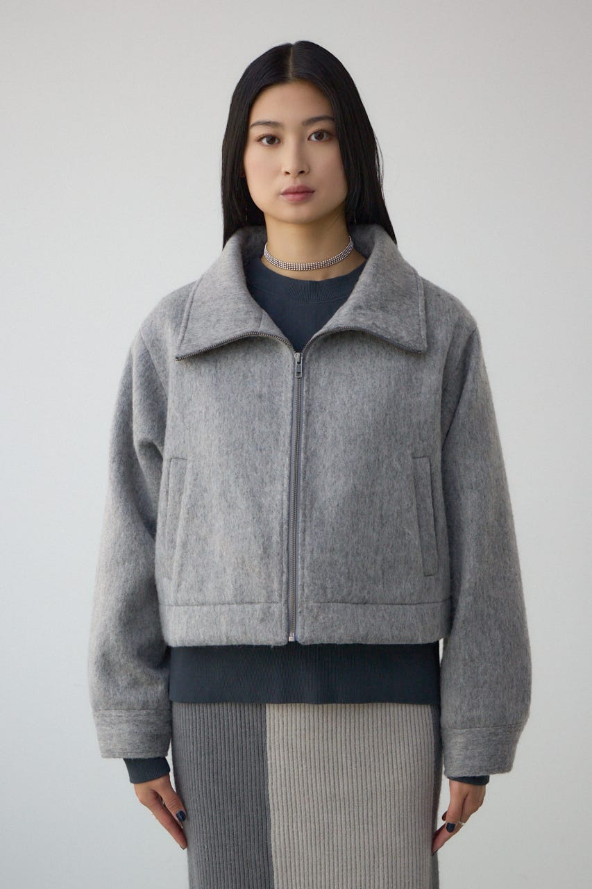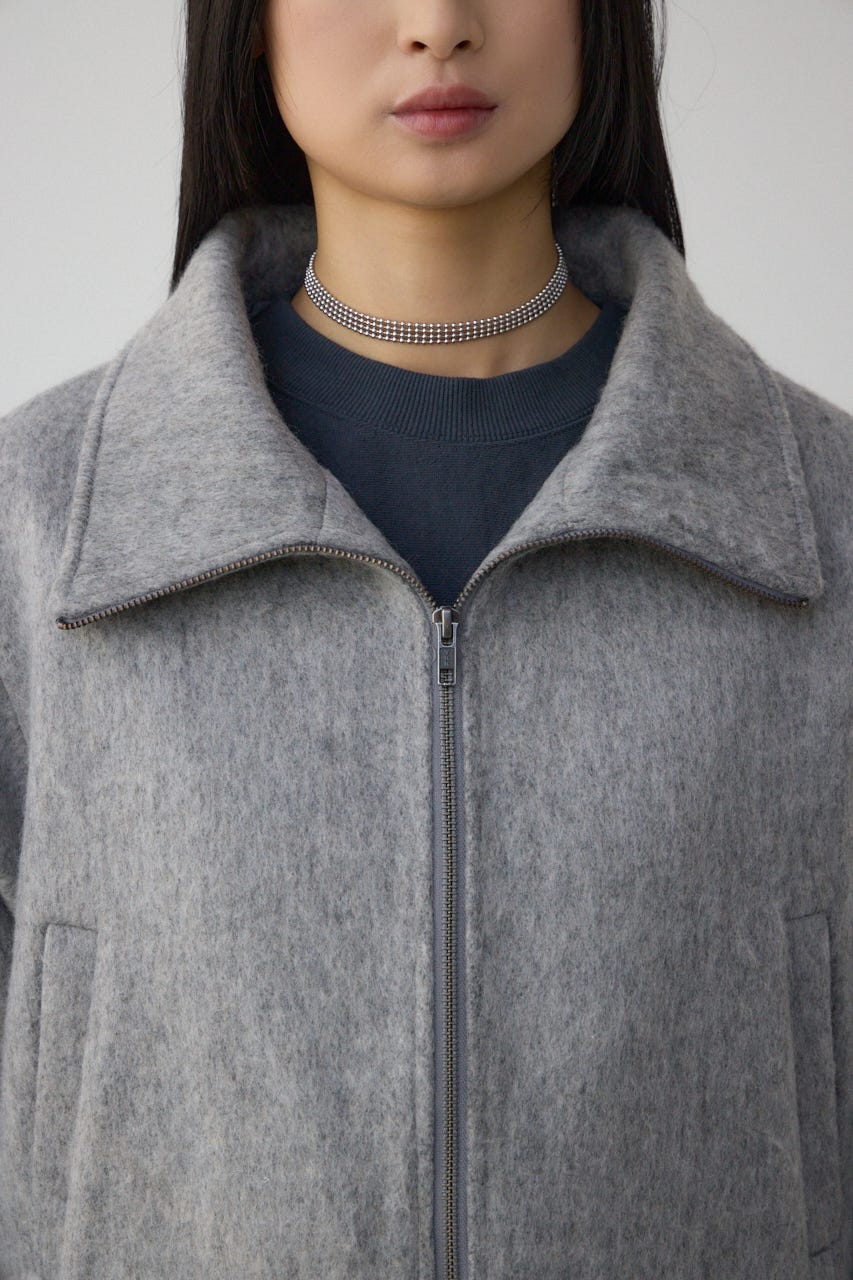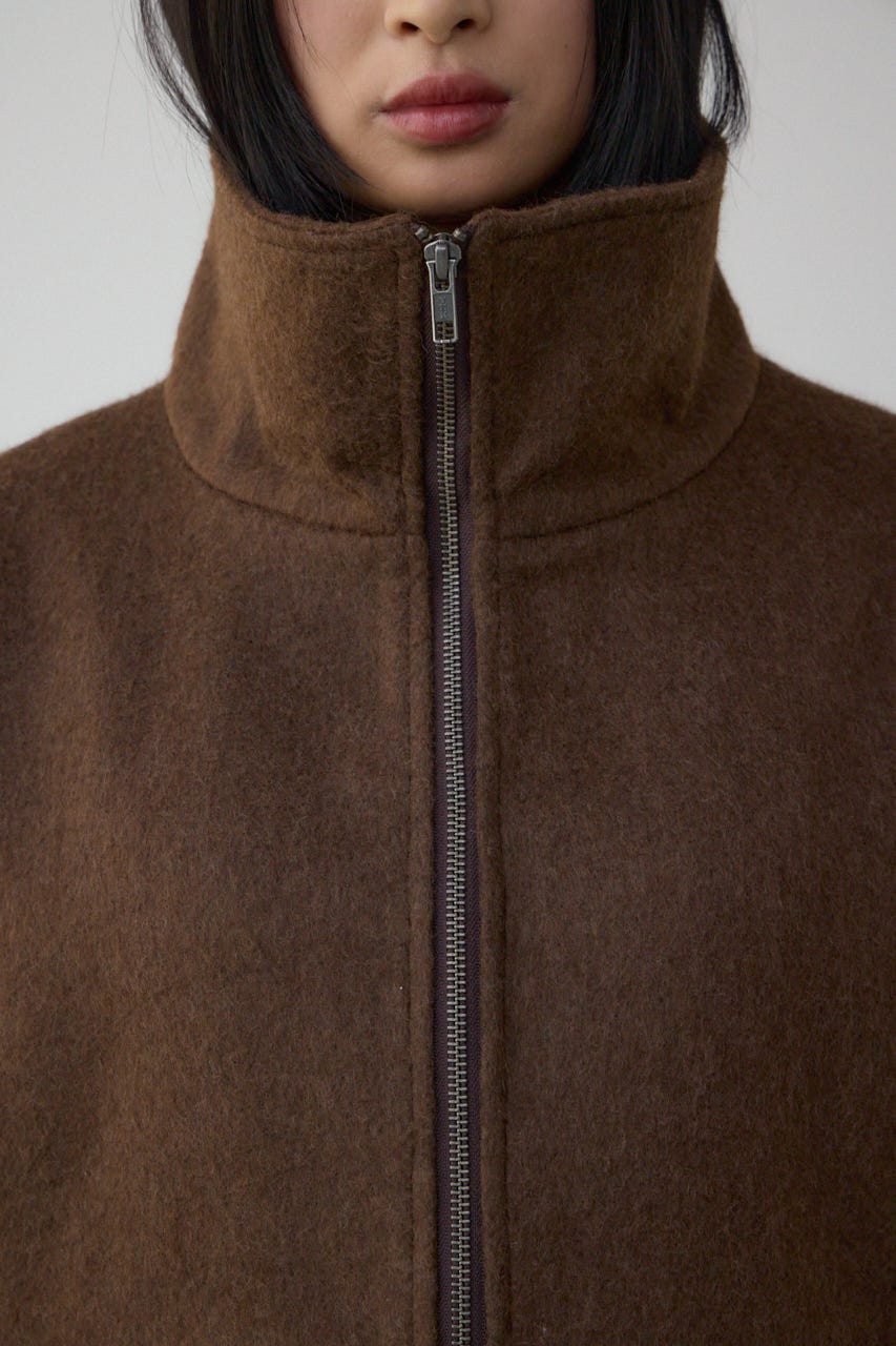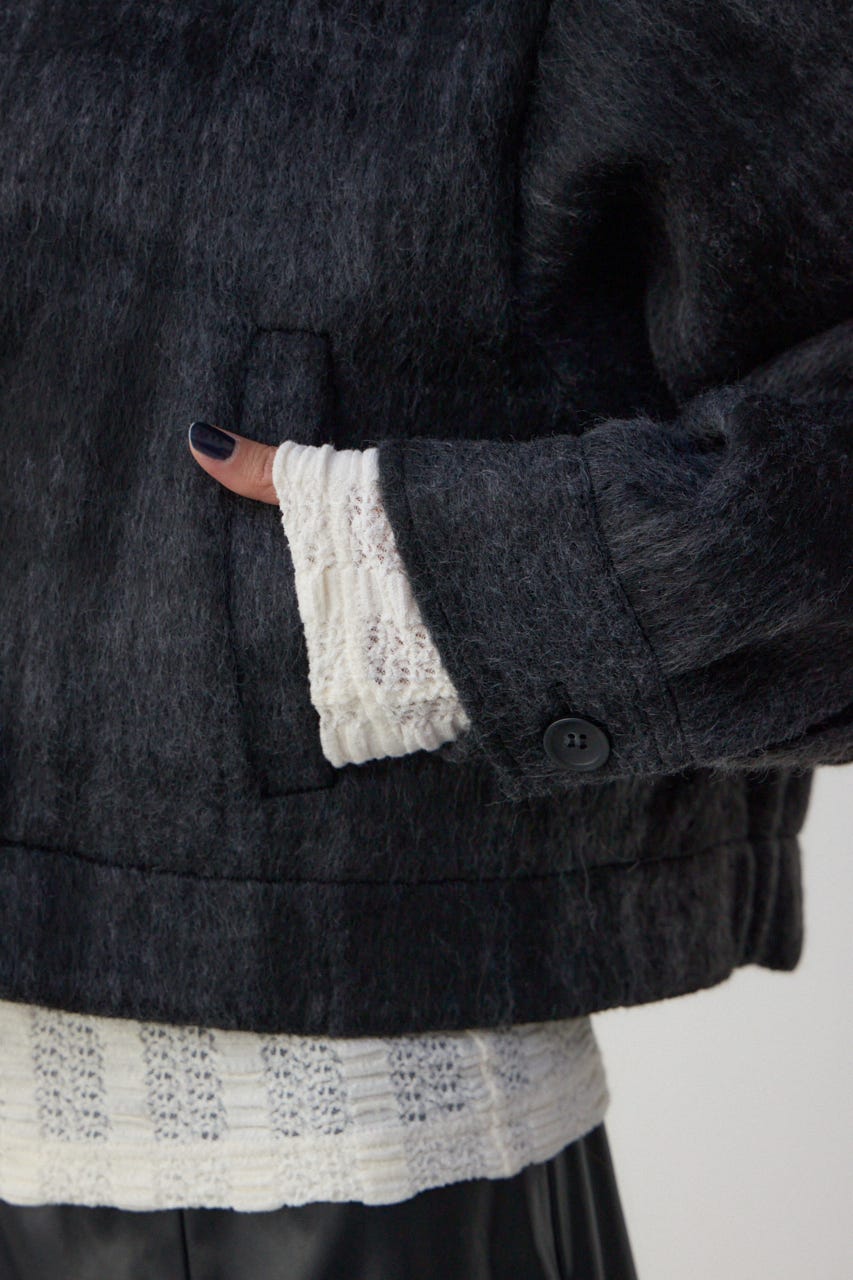 ふんわりとしたシャギー素材が、上品な温もりを添えるスタンドカラーコート。