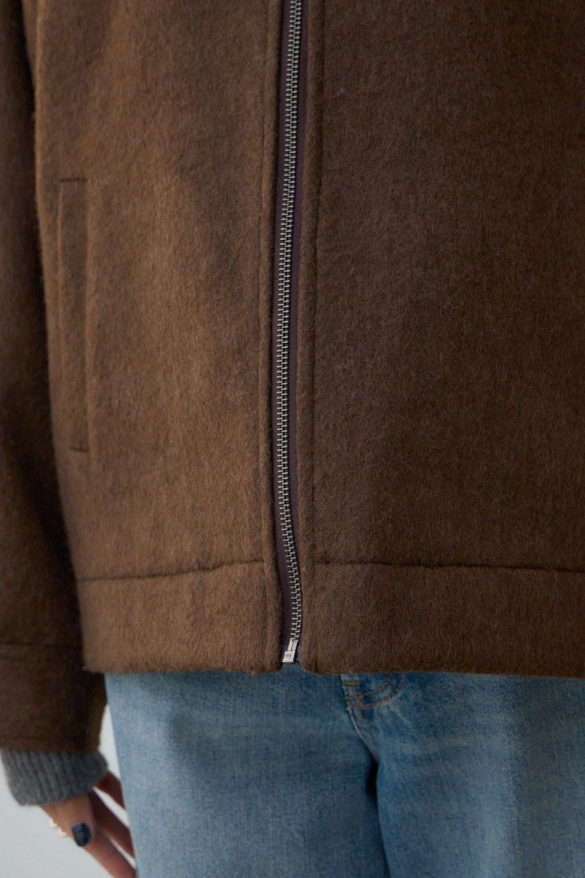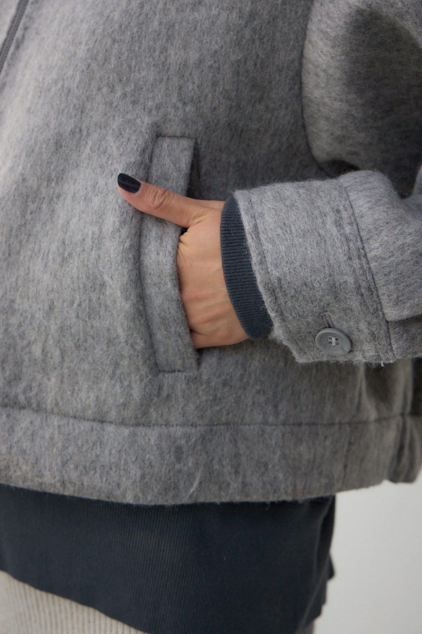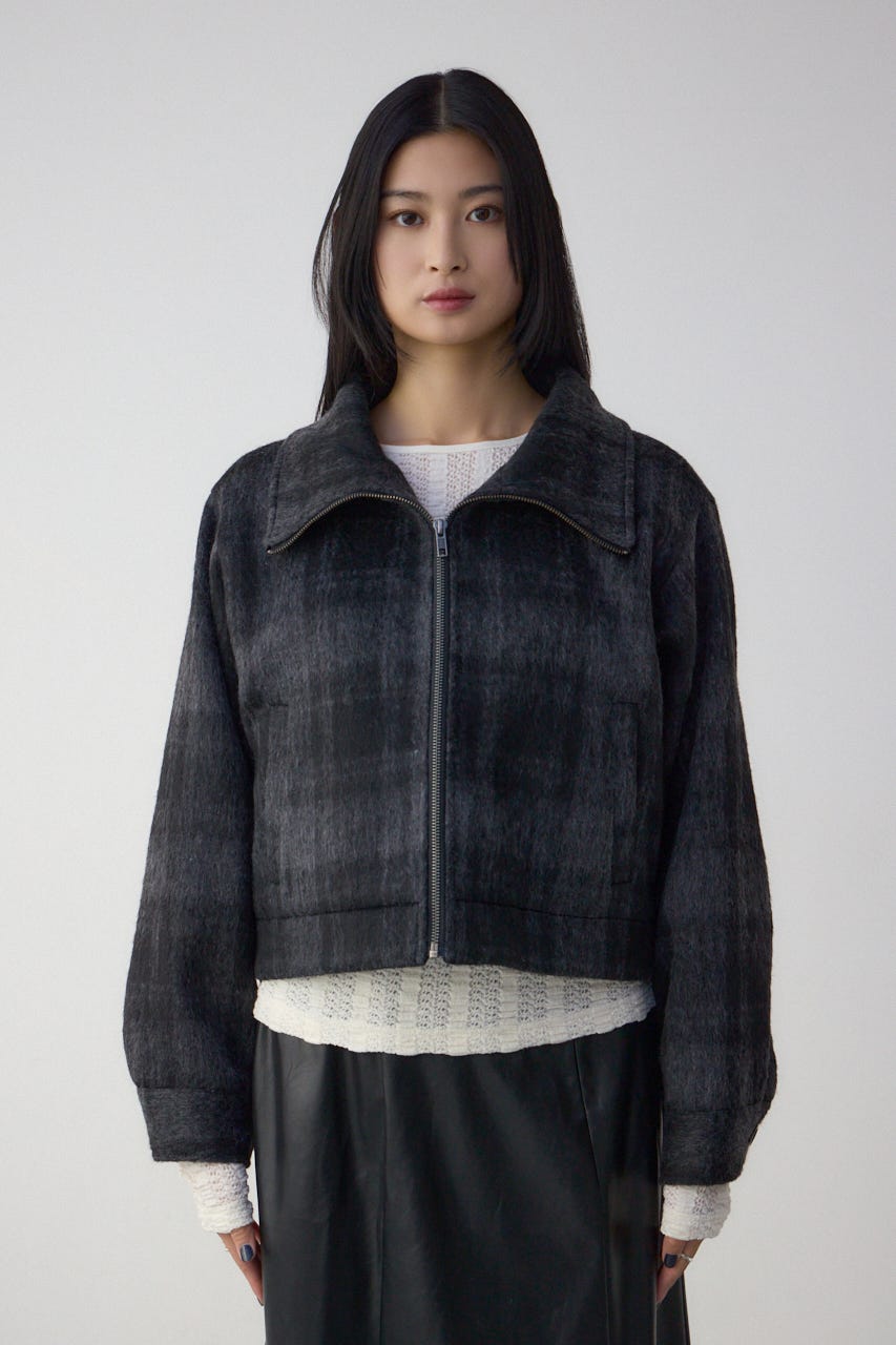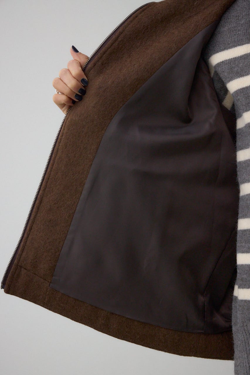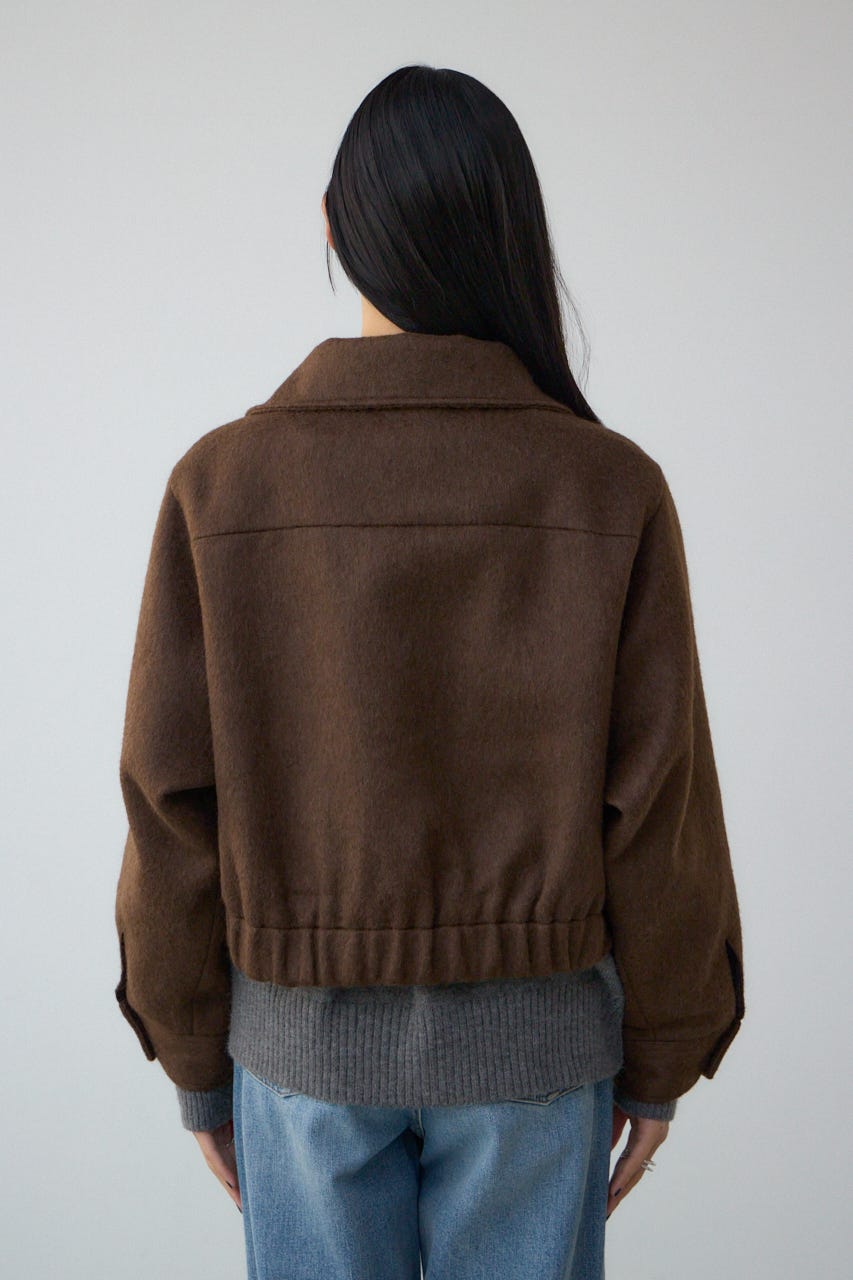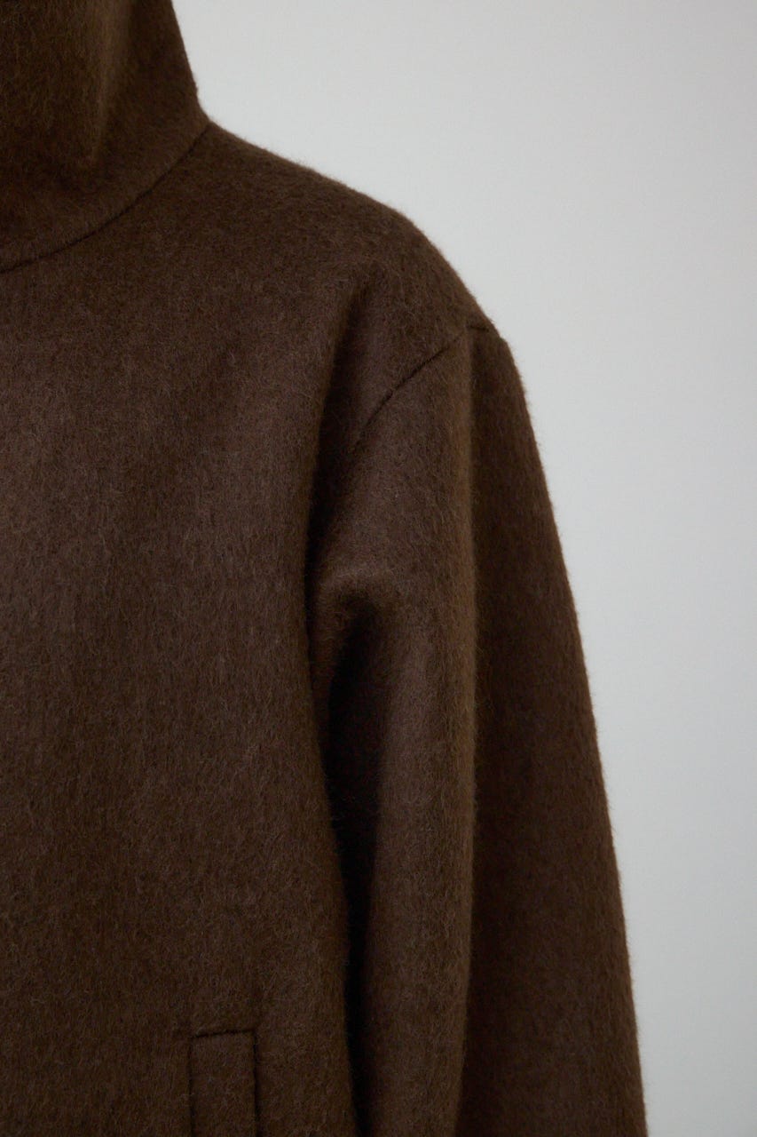 ふんわりとしたシャギー素材が、上品な温もりを添えるスタンドカラーコート。