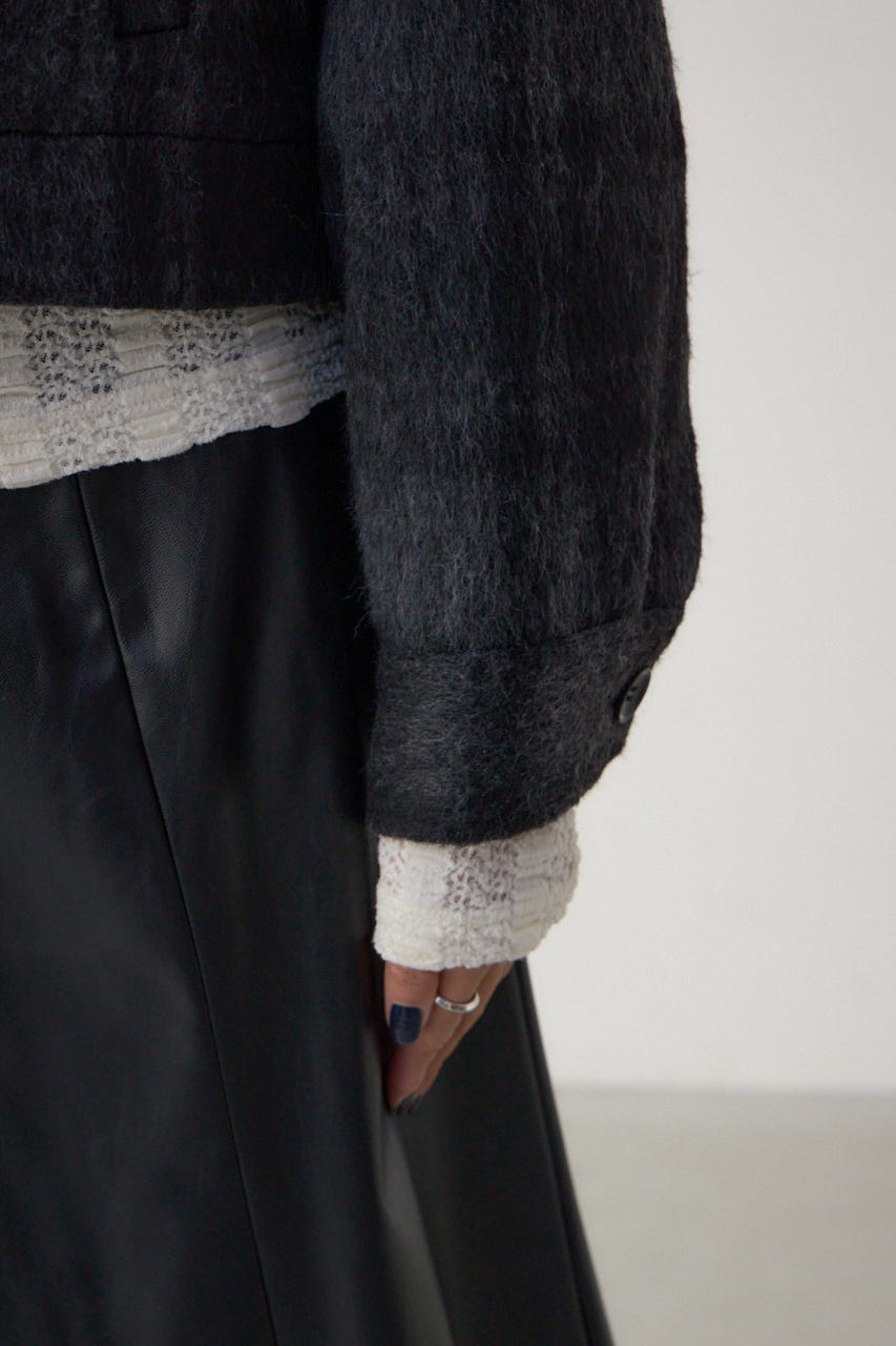 柔らかな毛足のシャギー生地を使用し、軽やかであたたかみのある着心地に。