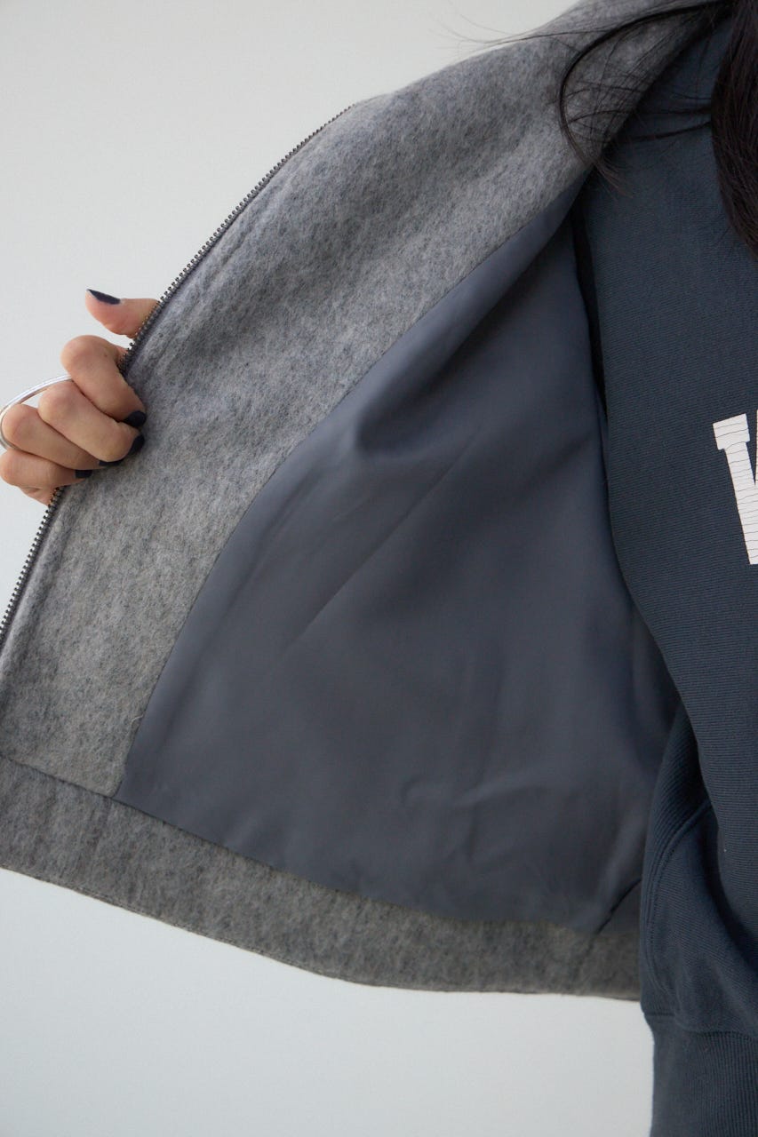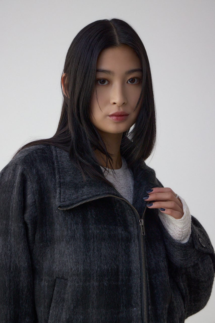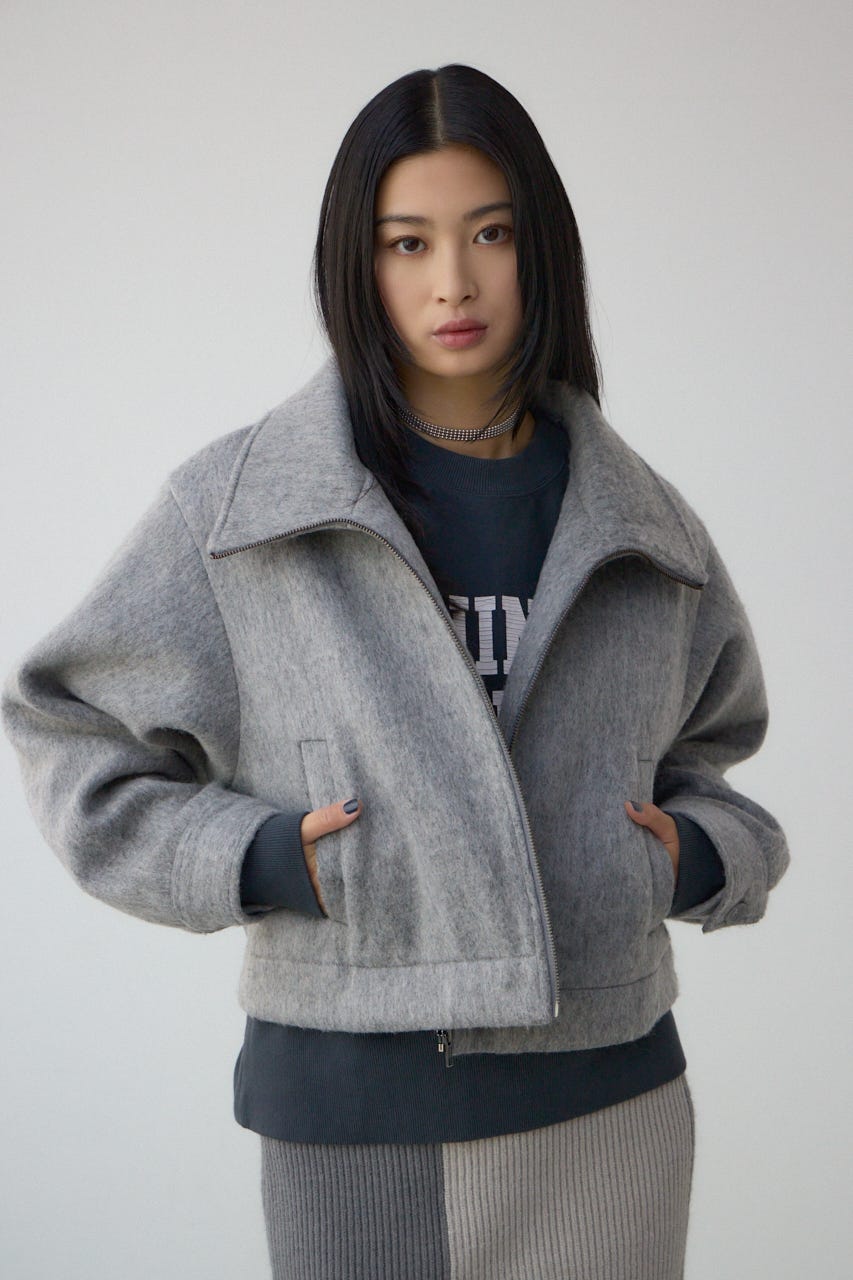 大きめのスタンドカラーが、風を防ぎながら小顔効果をプラス。
