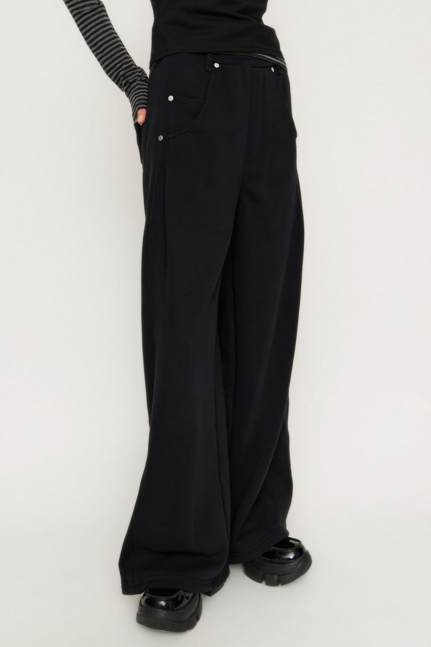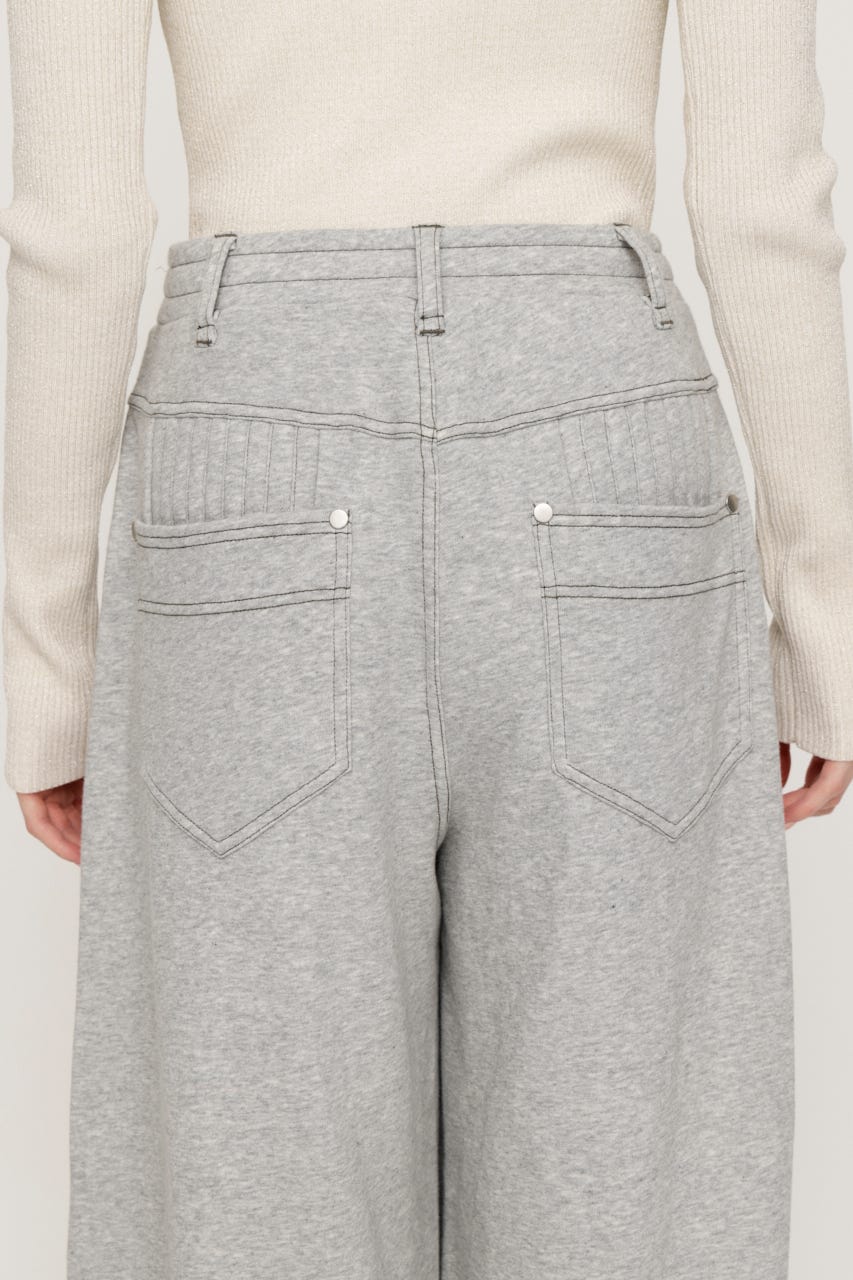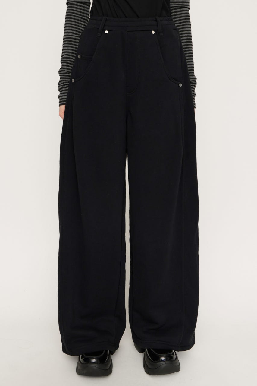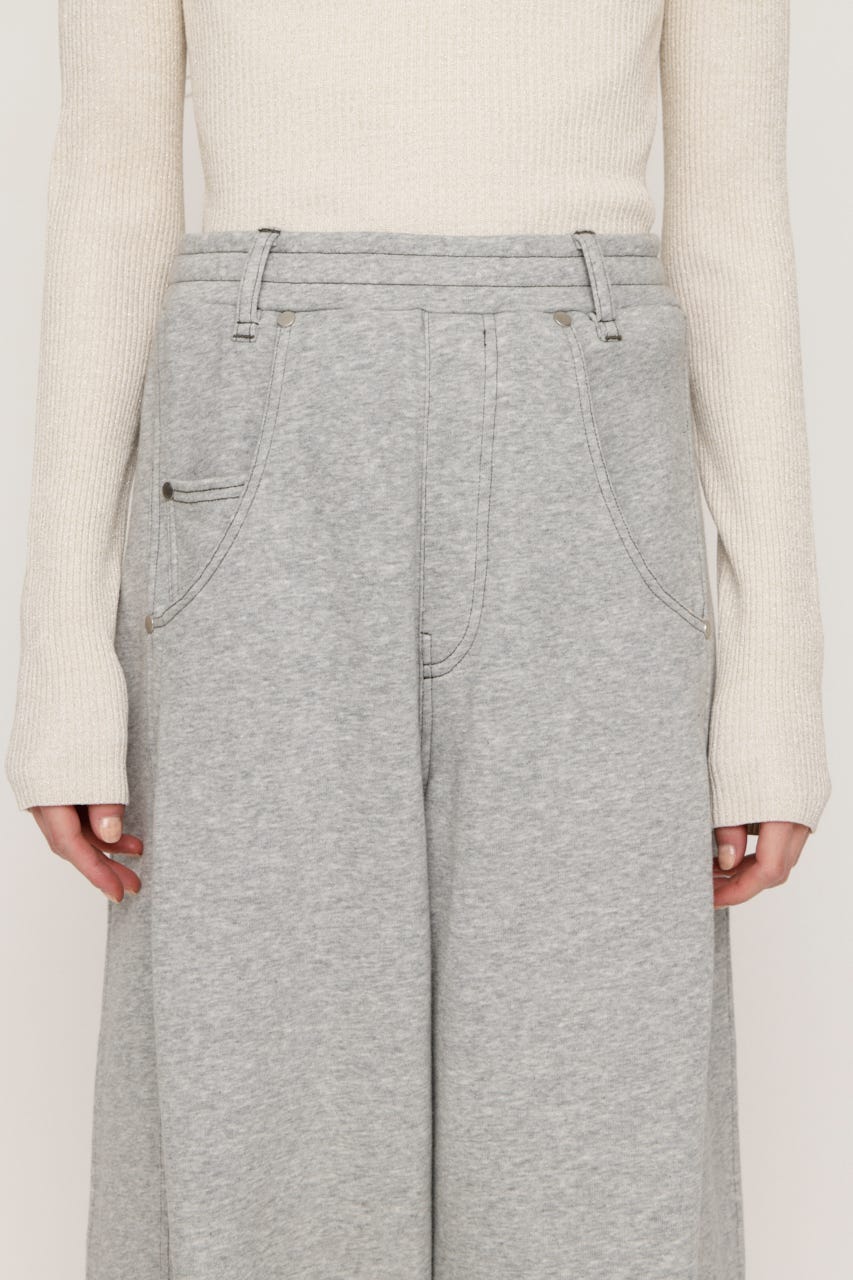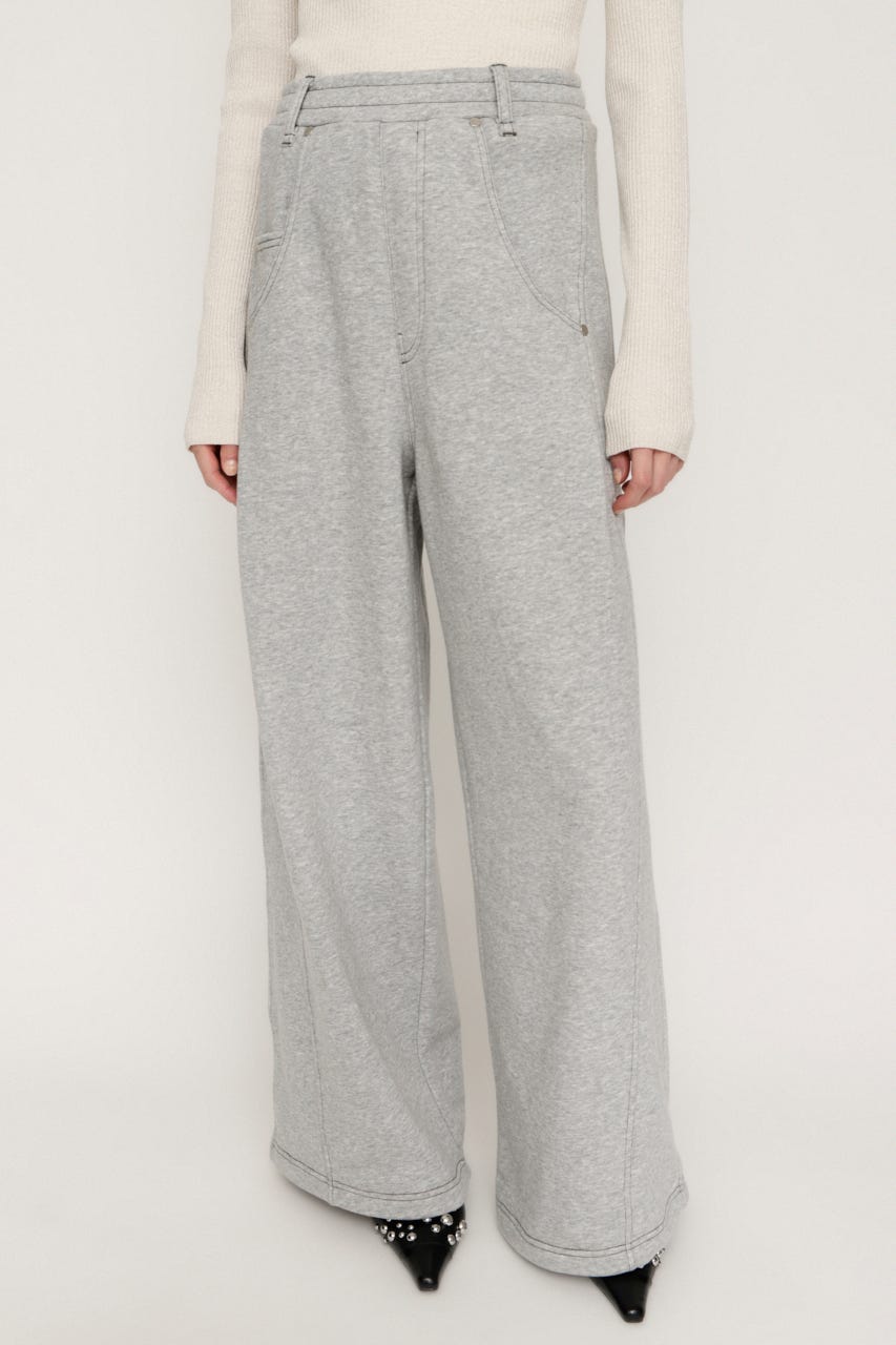 デニムのようなディテールをスウェットパンツに落とし込んだスタイリングの主役になるデザインパンツ。
