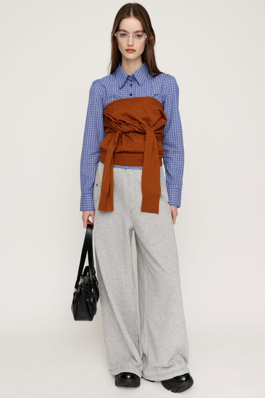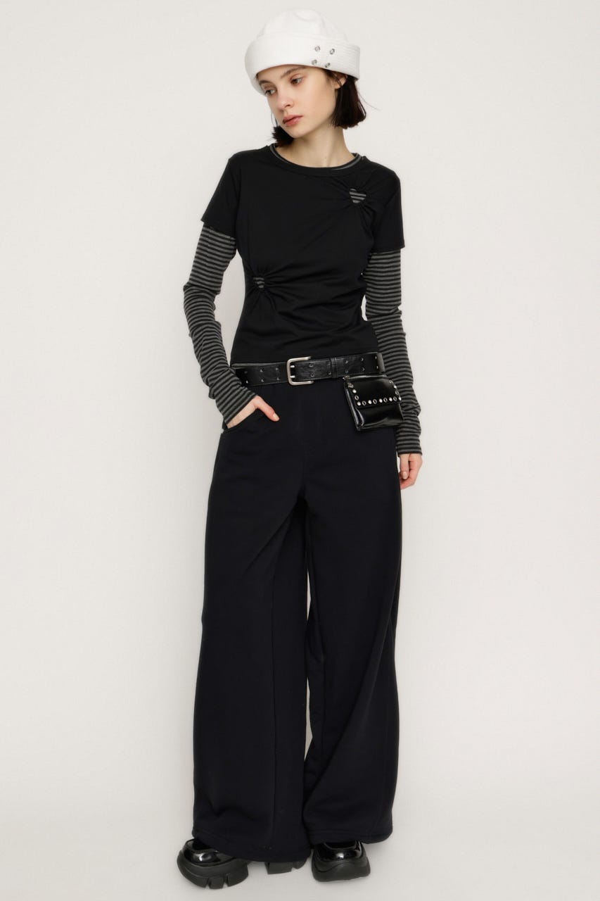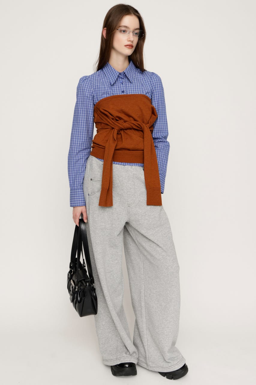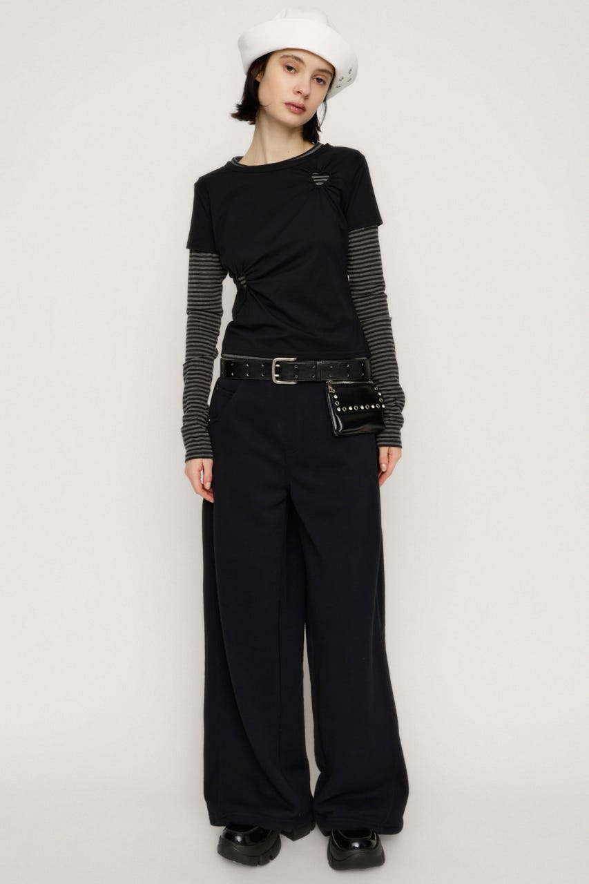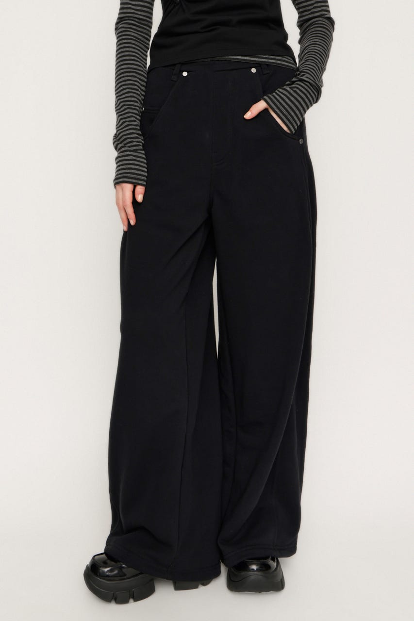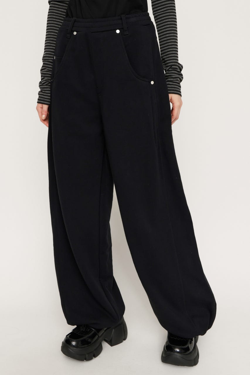 デニムのようなディテールをスウェットパンツに落とし込んだスタイリングの主役になるデザインパンツ。