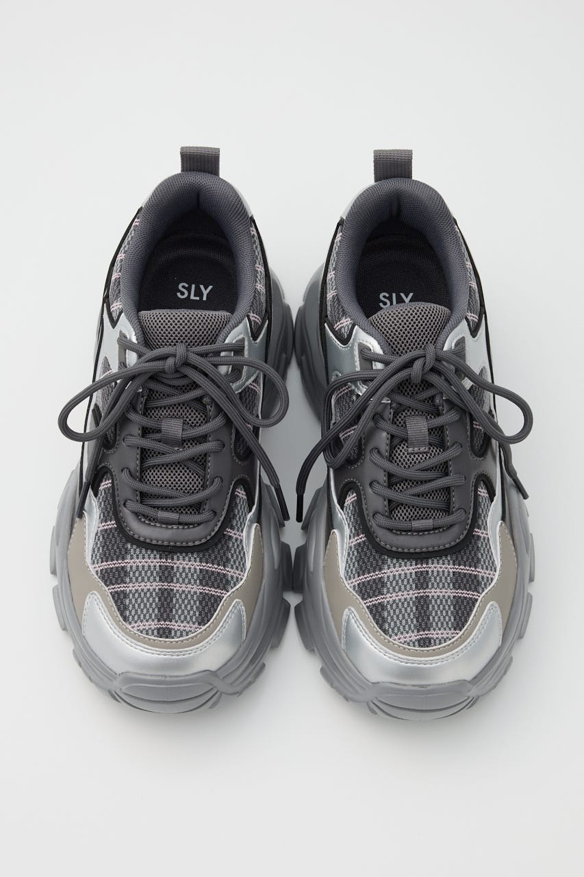 SLYオリジナルで作成したチェック柄がトレンドライクな厚底スニーカー。