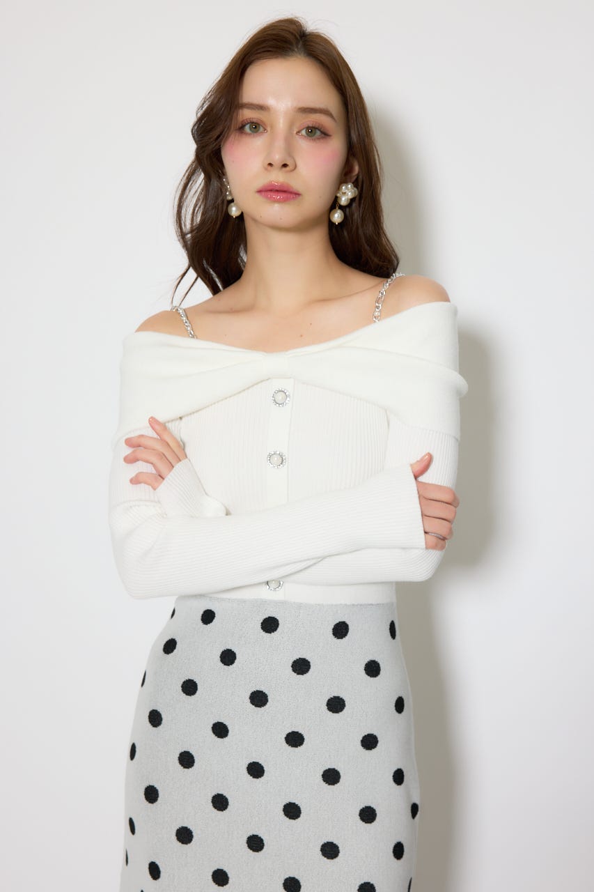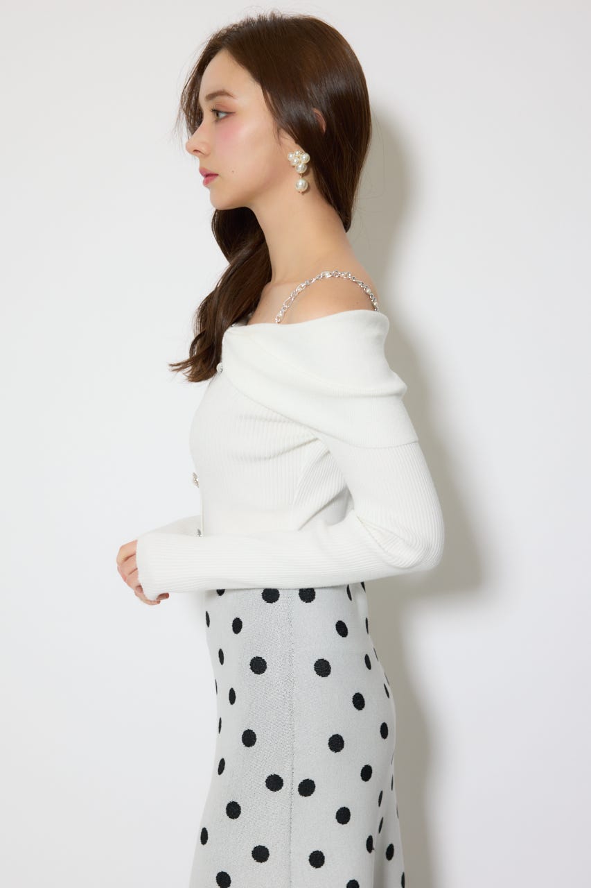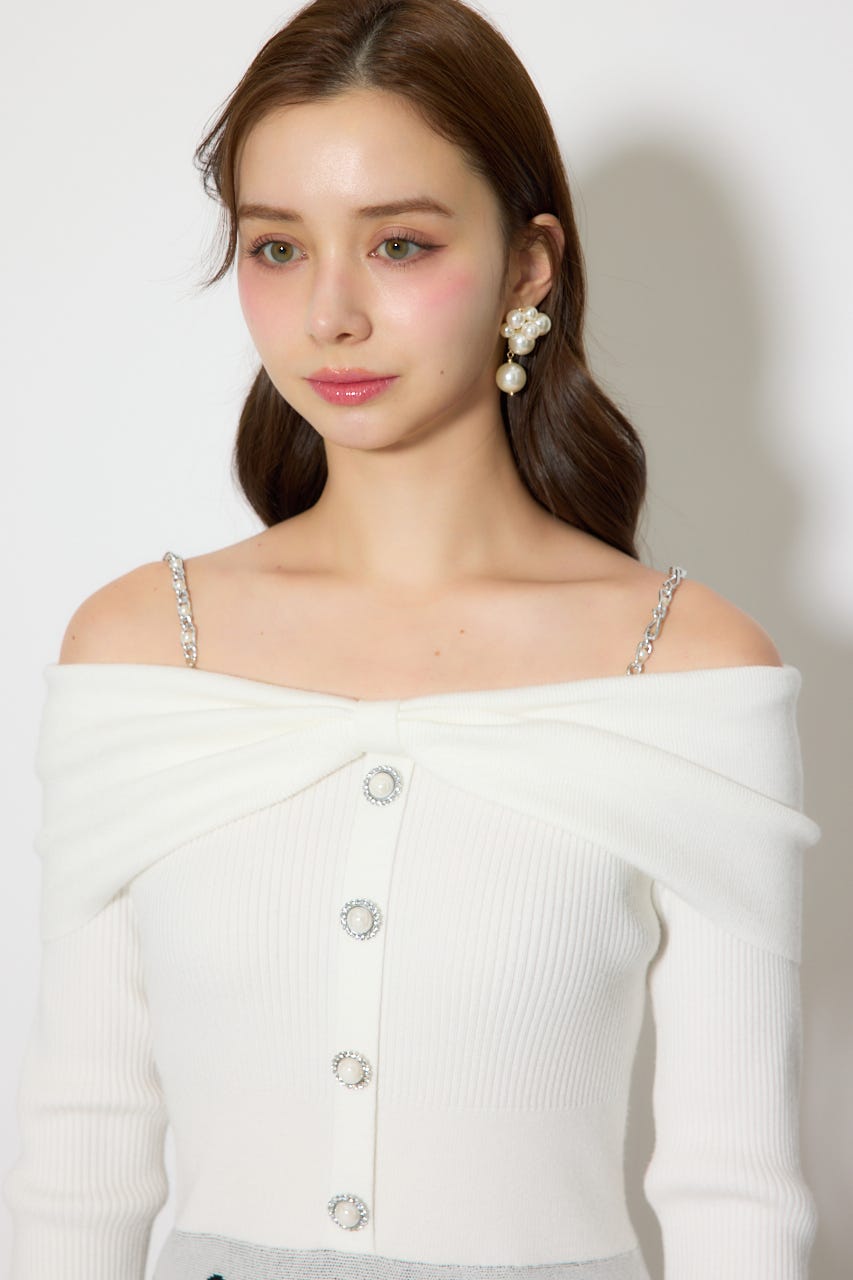 オフショルデザインで女性らしい肌見せときらっとしたショルダーチェーンが目に留まるデザインに仕上げました。