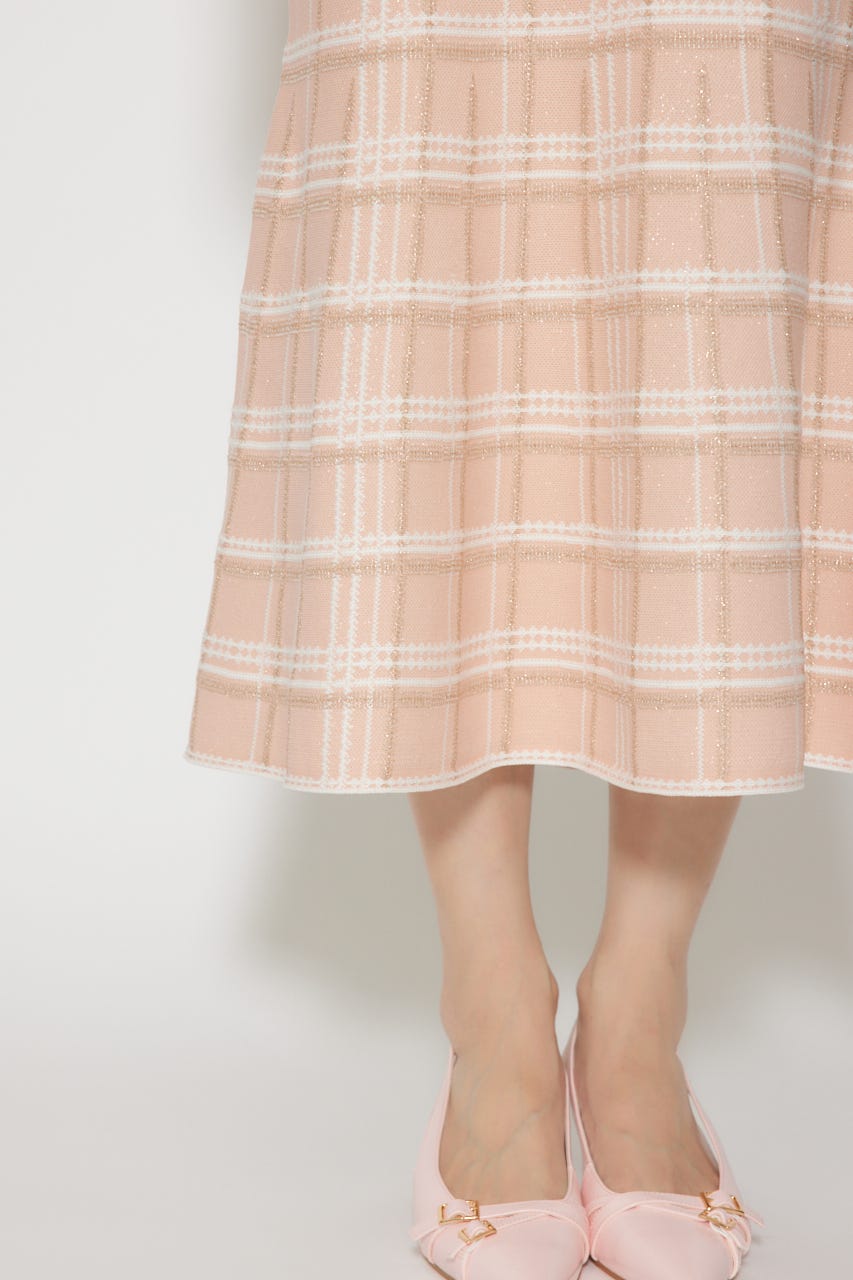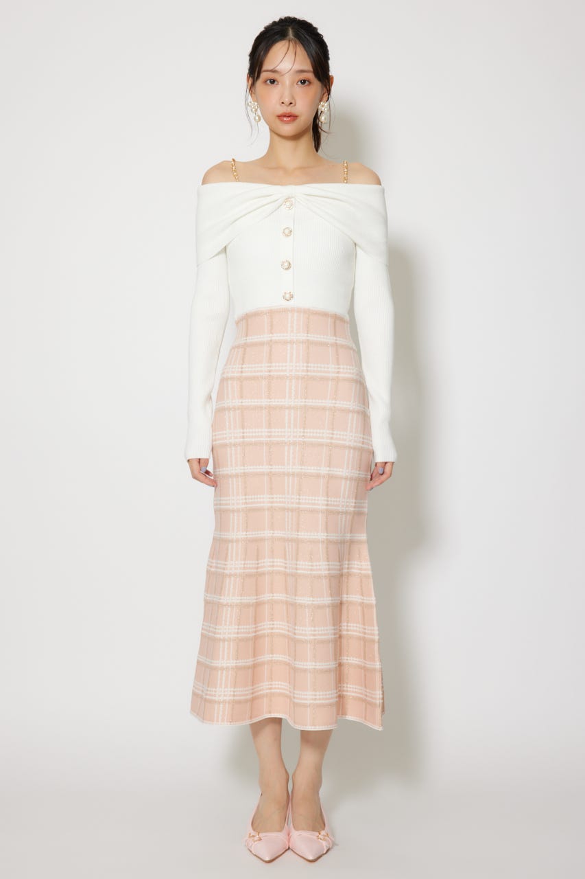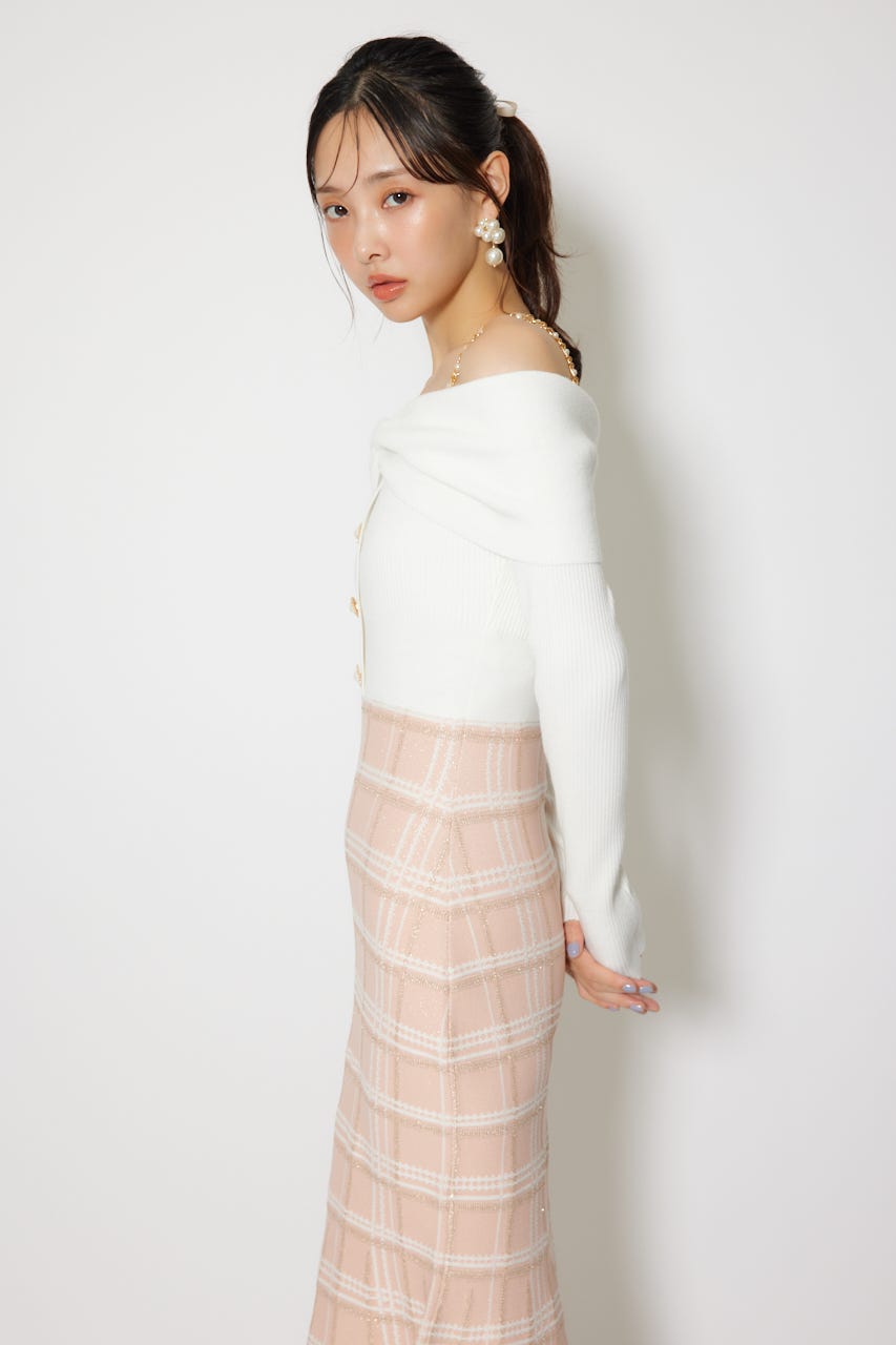リボンデザインツイードニットワンピース