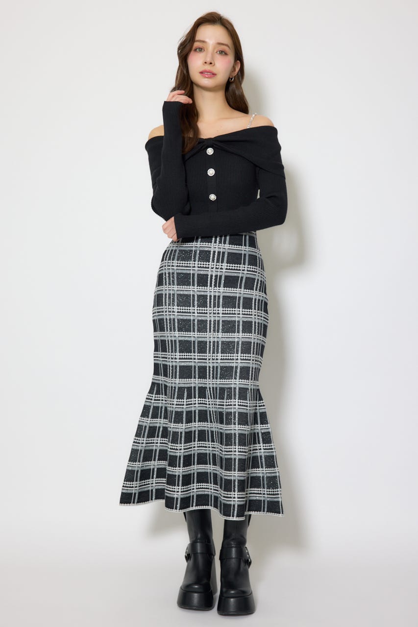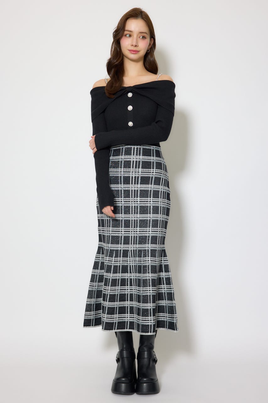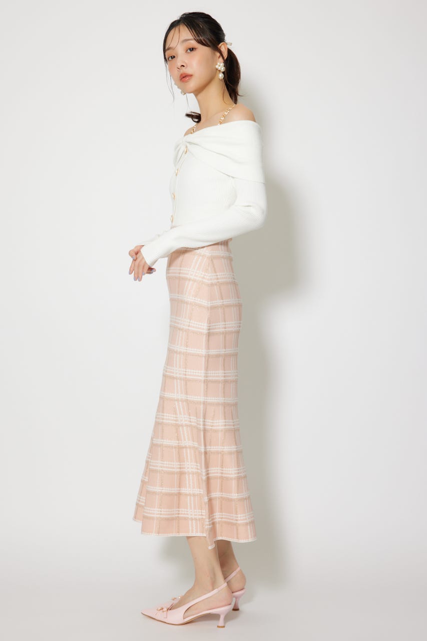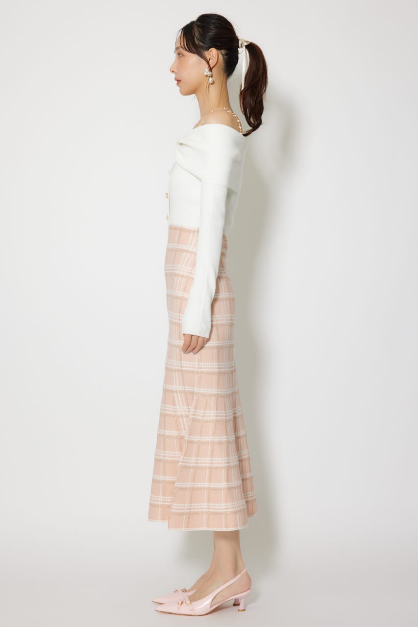 リボンデザインツイードニットワンピース